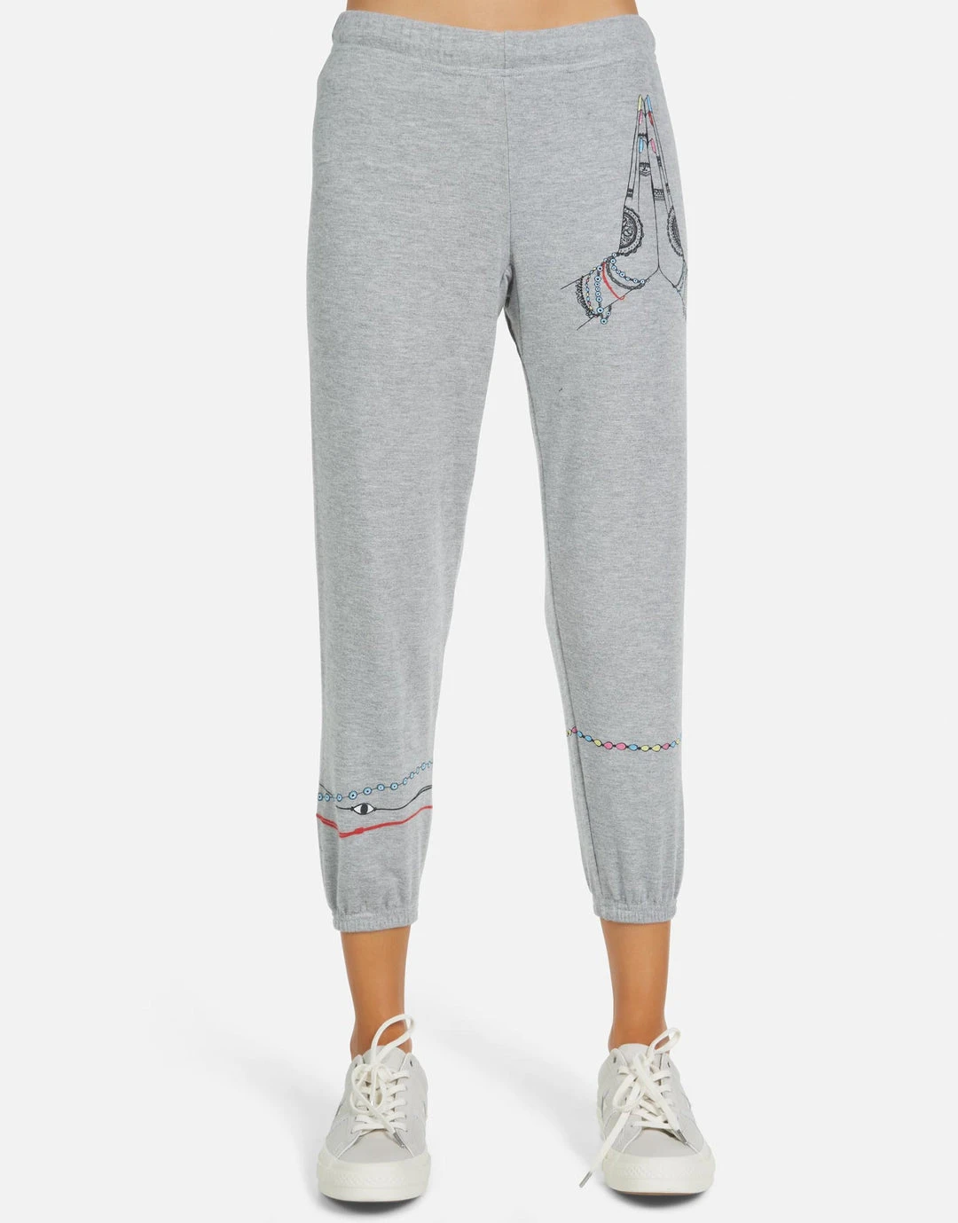 Prayer Hands Printed on Ultra Soft Lightweight Sweatpant in Heather Grey by Lauren Moshi.