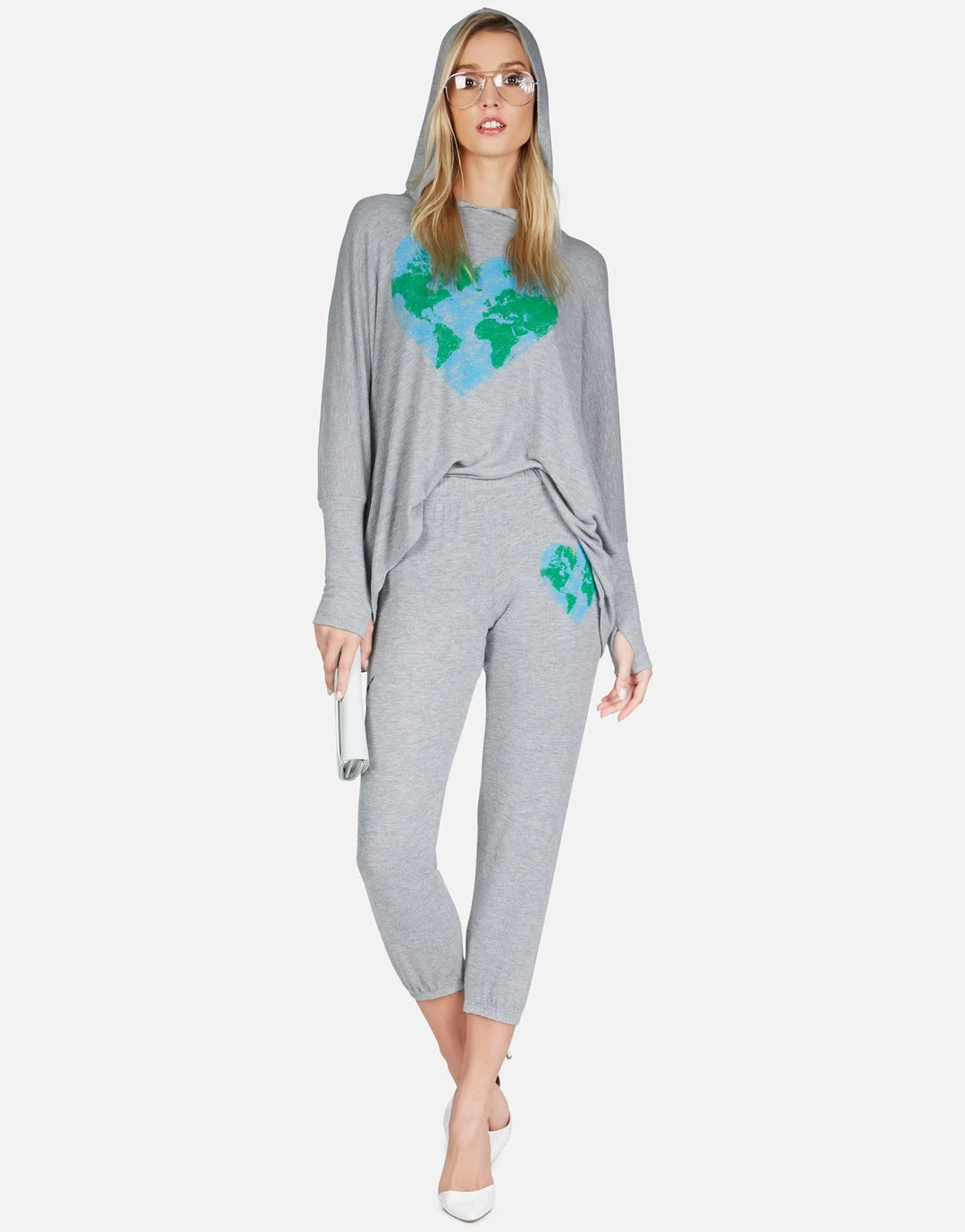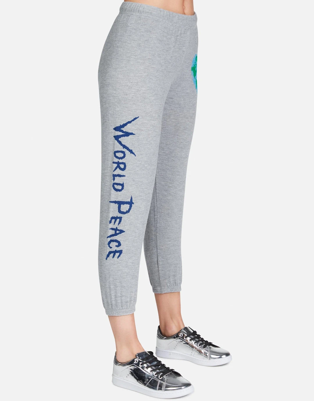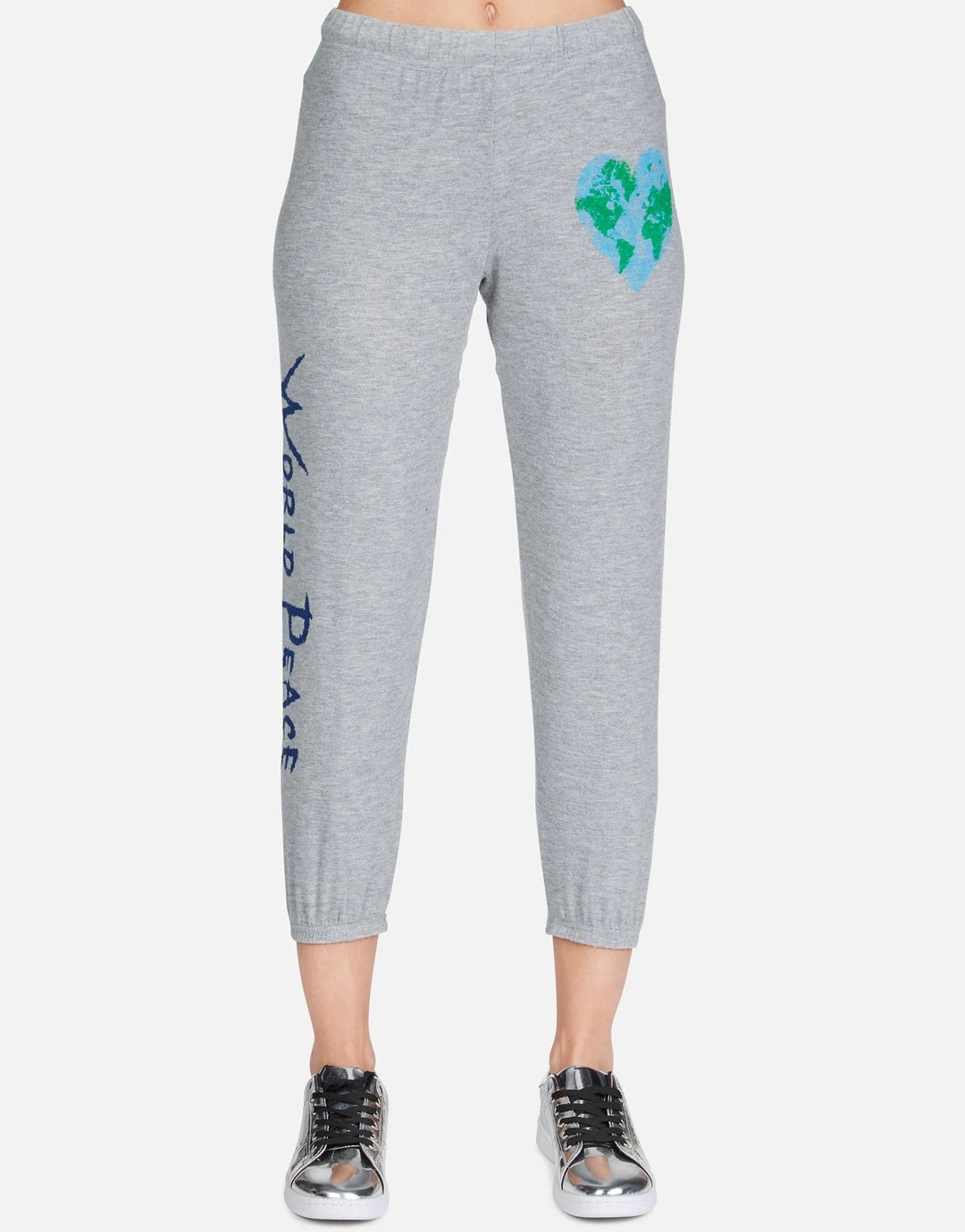 World Love / World Peace Printed on Ultra Soft Lightweight Sweatpant in Heather Grey by Lauren Moshi.