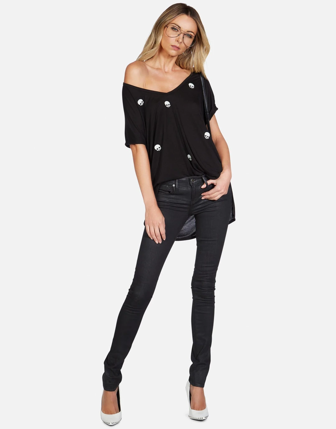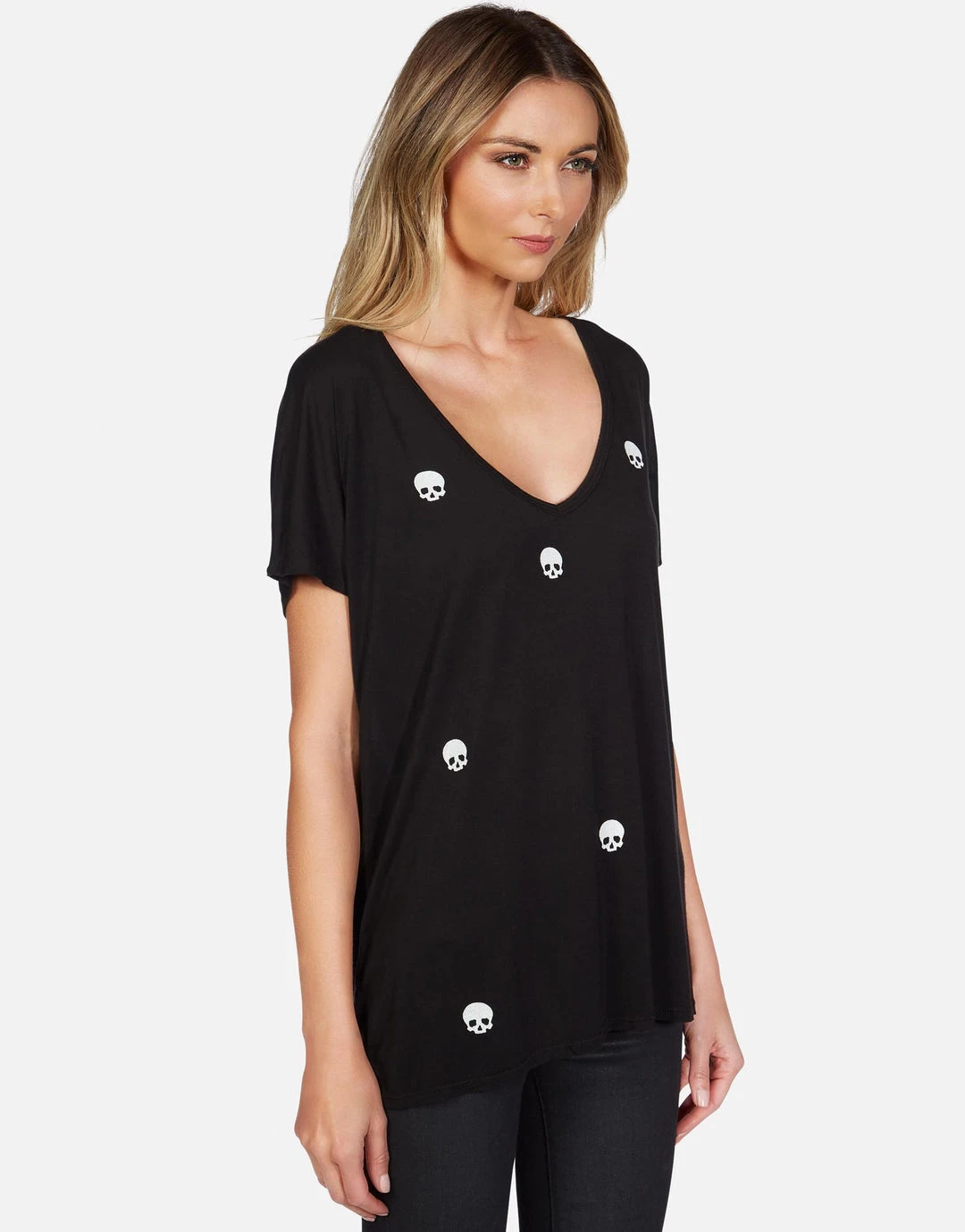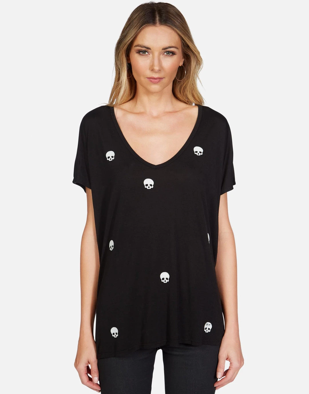 Mini Skulls Printed on Ultra Soft Lightweight Tee in Black by Lauren Moshi.