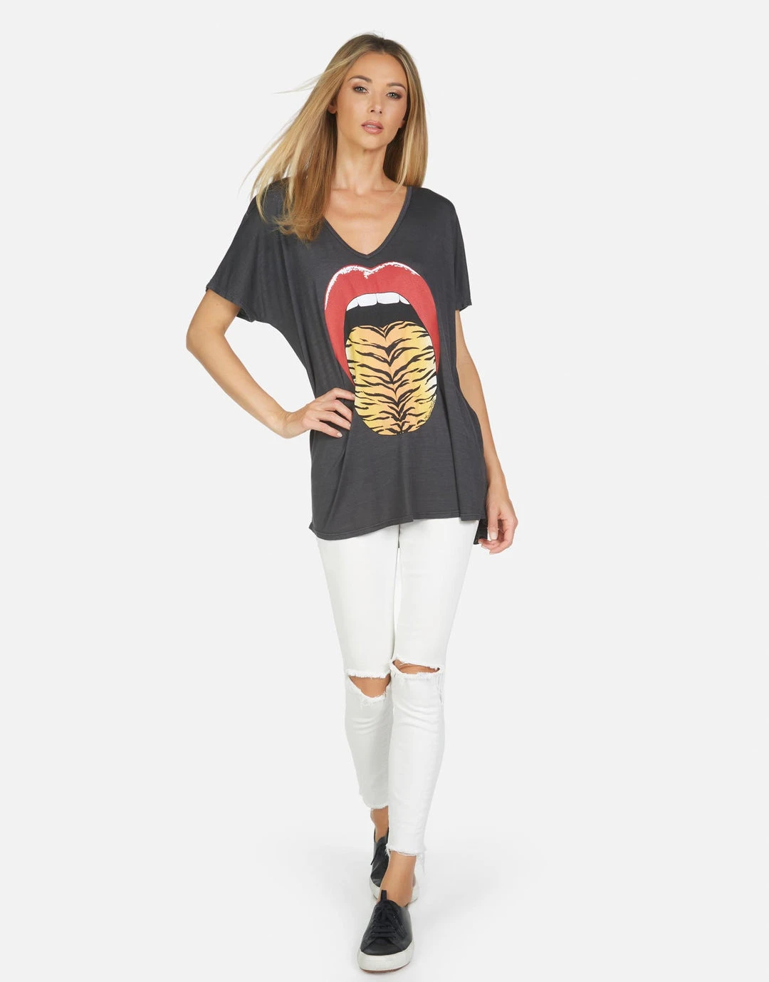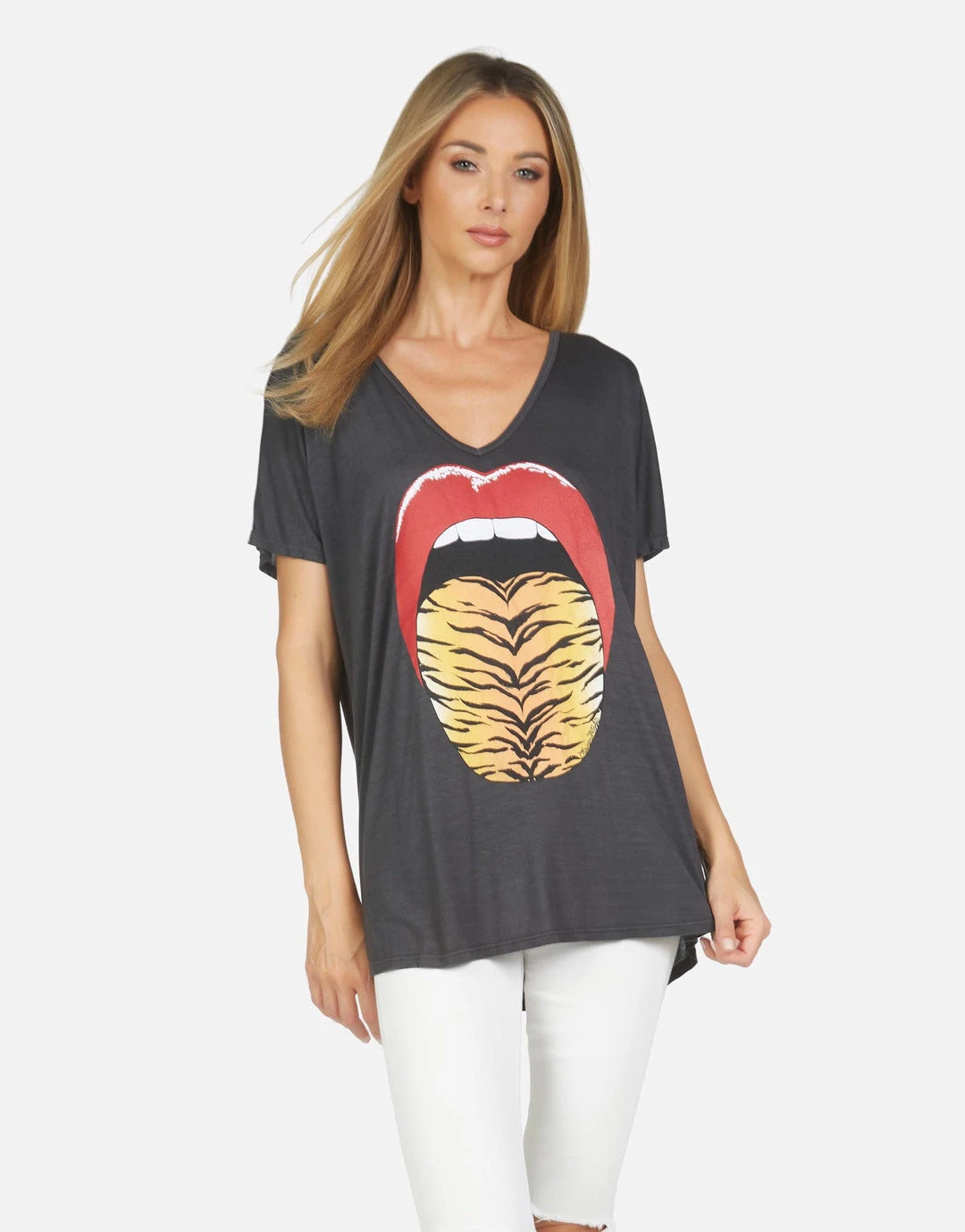 Tiger Tongue Printed on Ultra Soft Lightweight Tee in Onyx by Lauren Moshi.