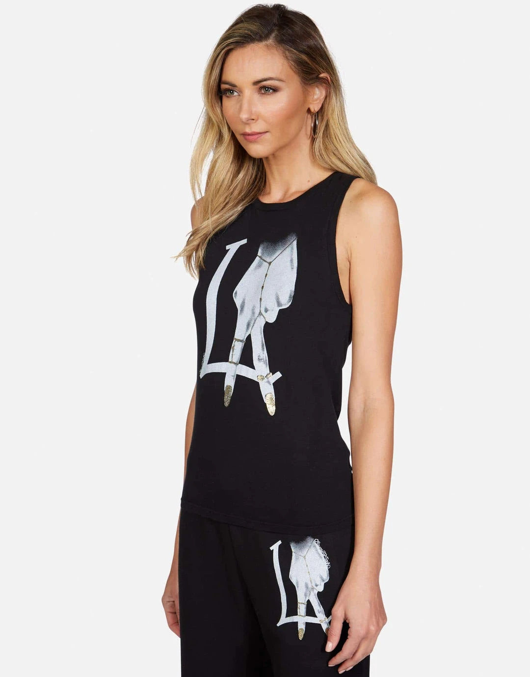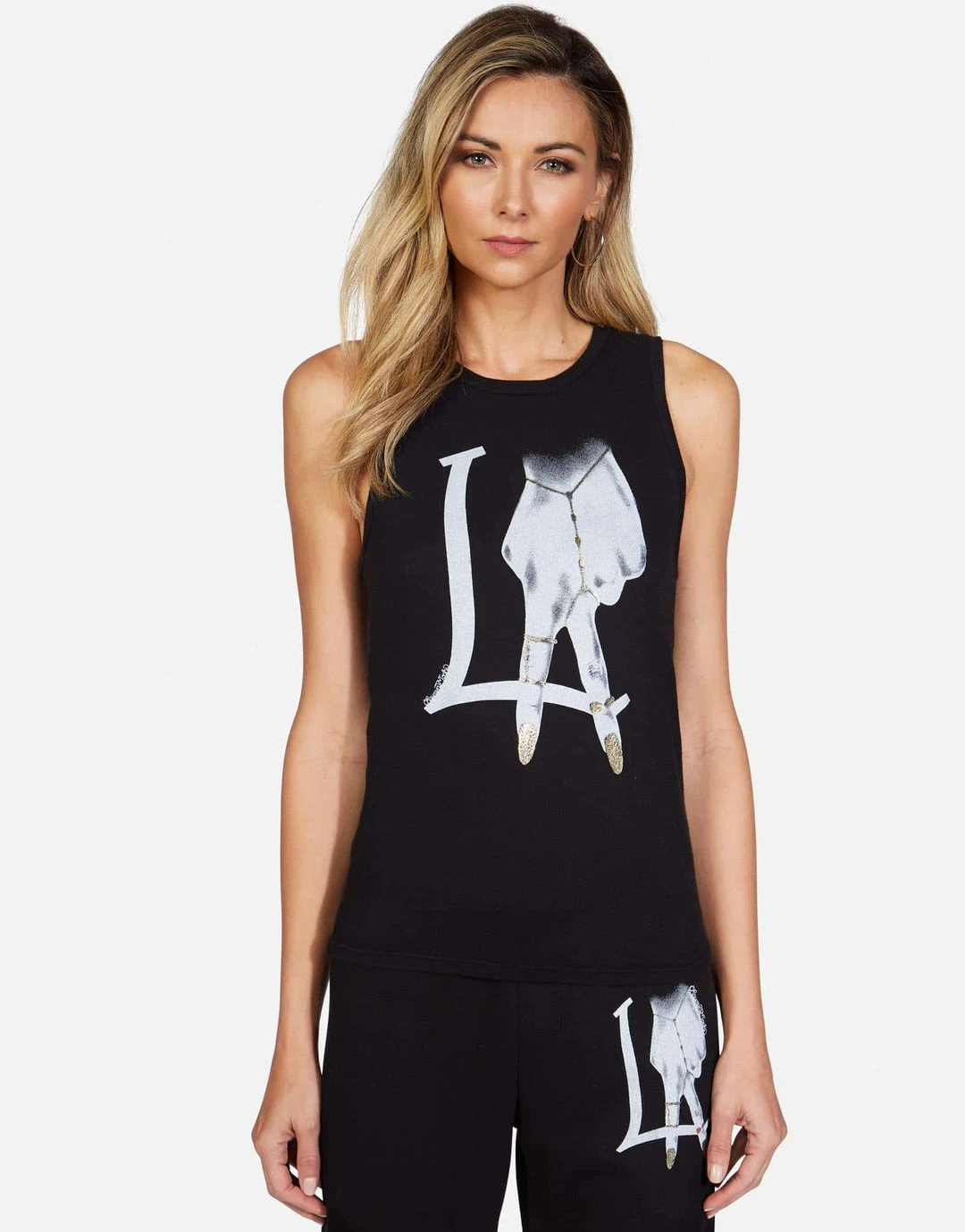 LA Peace Finger Printed on Ultra Soft Lightweight Tank Tee in Black by Lauren Moshi.