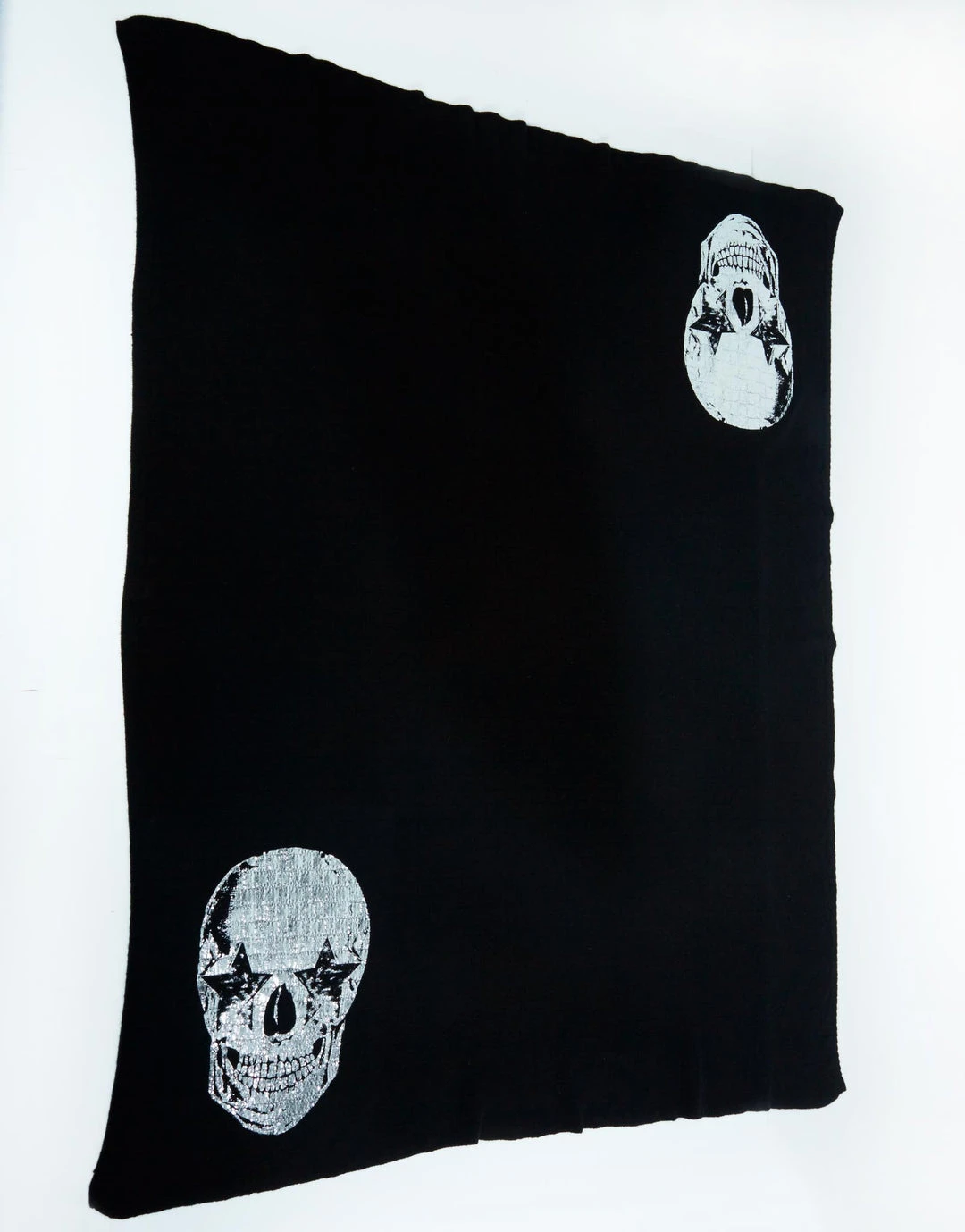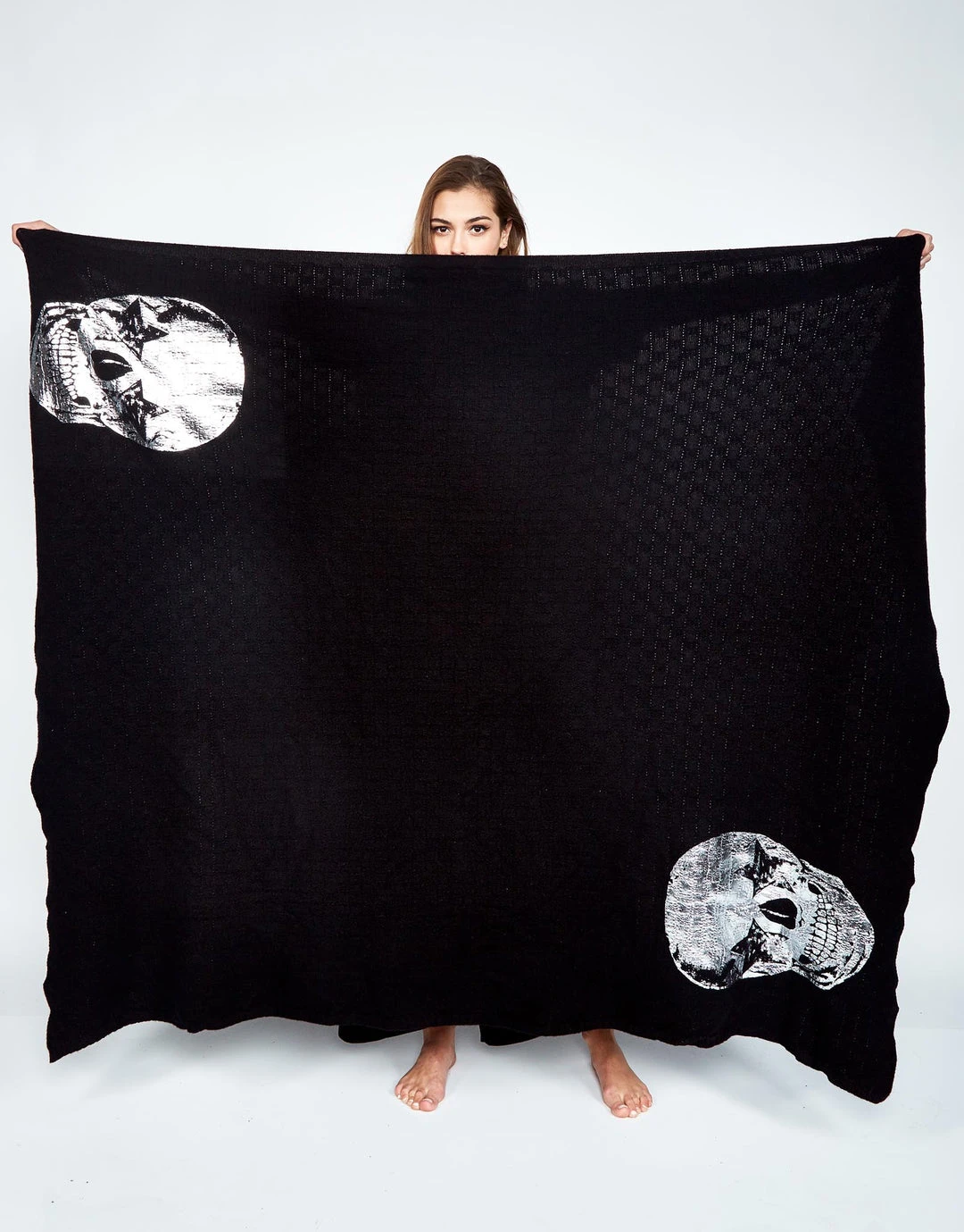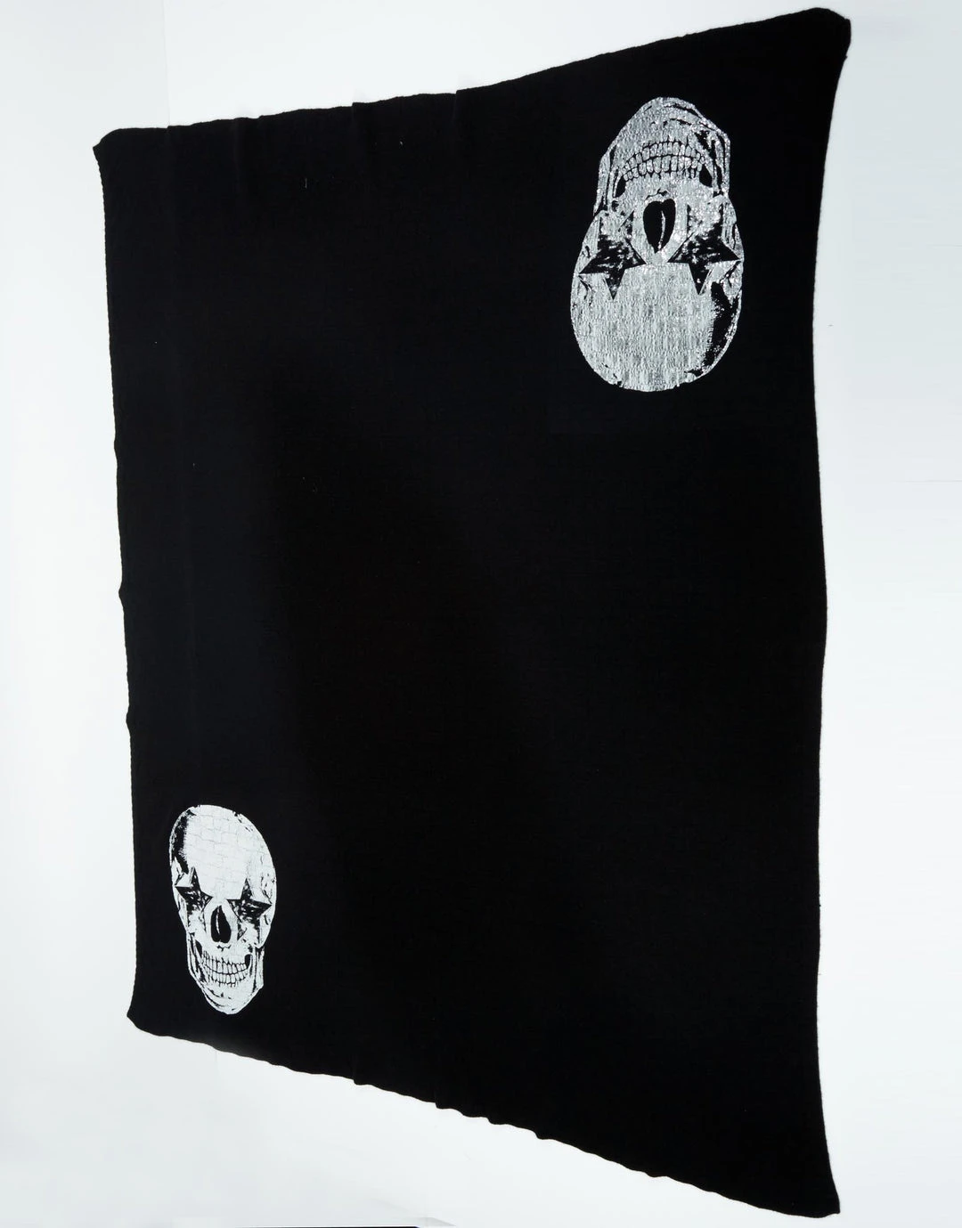 Foil Foil Star Eye Skull Printed on Luxurious Cashmere Blanket ( limited edition w/ custom box ) in Black by Lauren Moshi.