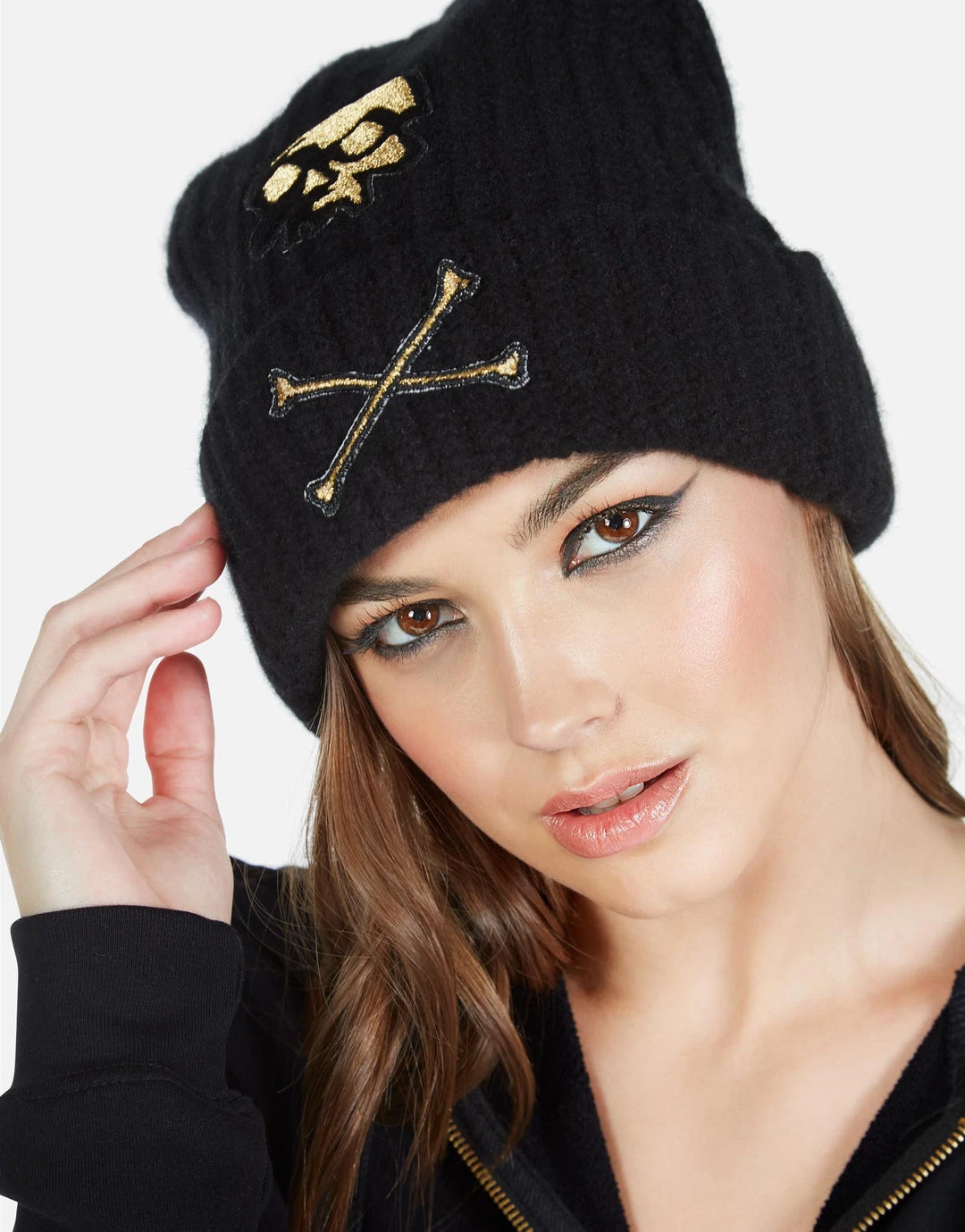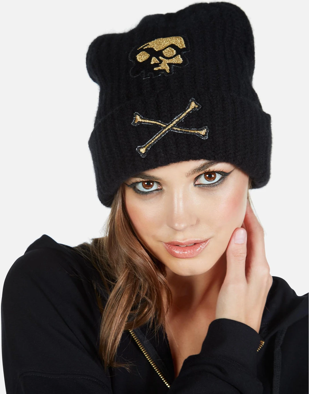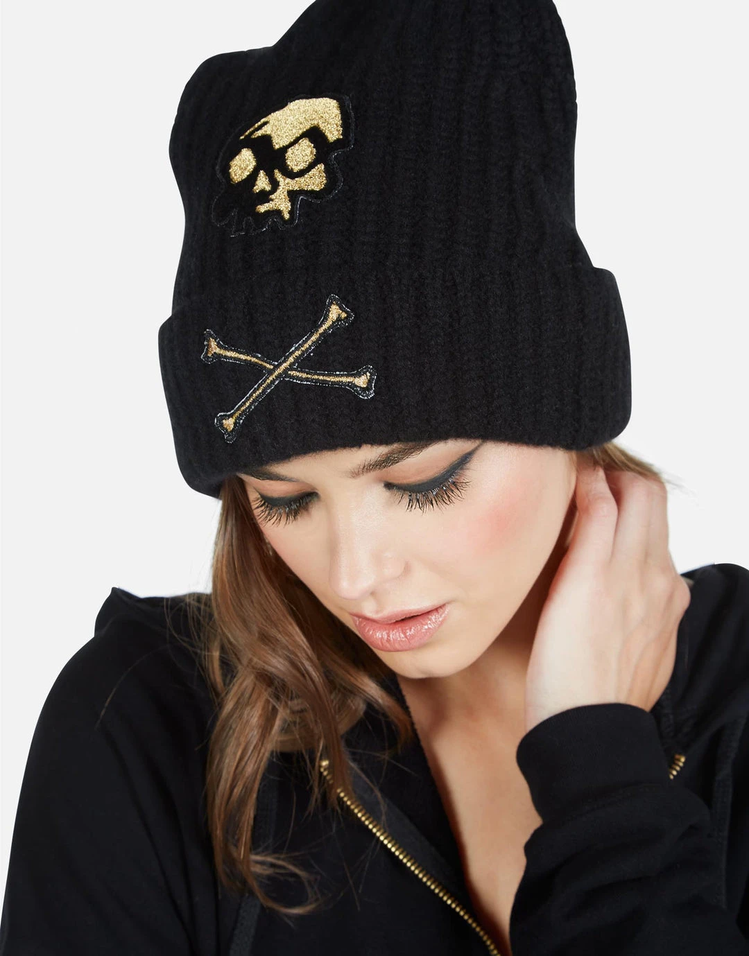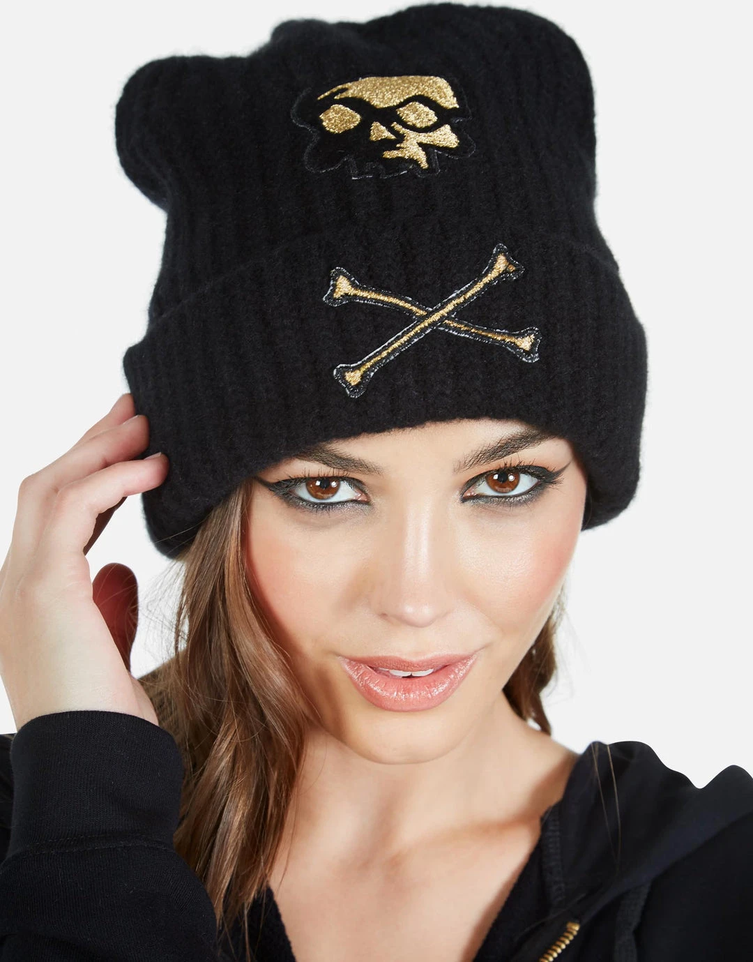 Disney Villains – Skull & Cross X Bones on Super Soft Cashmere Slouch Beanie in Black by Lauren Moshi.