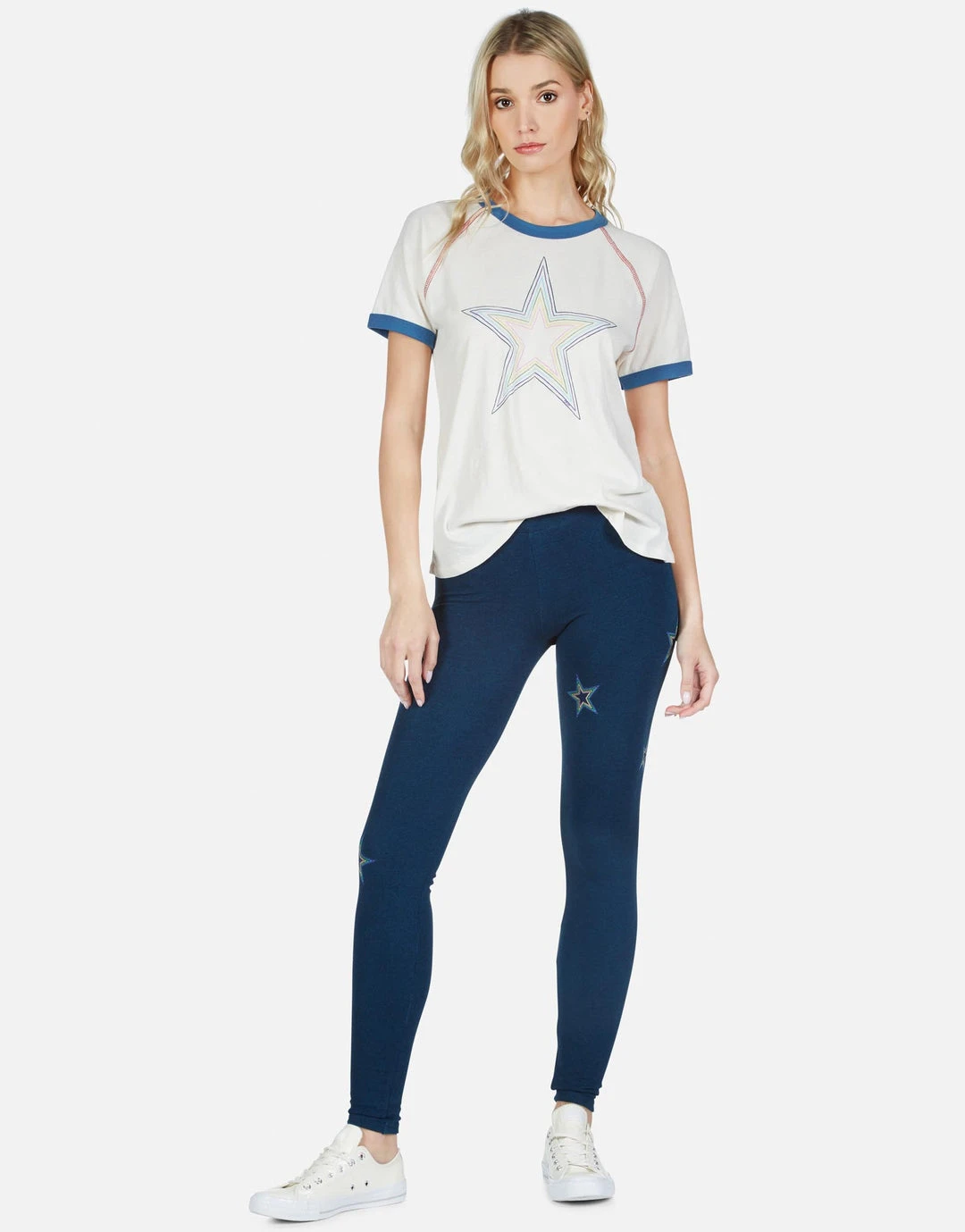 Rainbow Star Outline Allover Printed on Ultra Soft Lightweight Legging in Dark Stellar by Lauren Moshi.