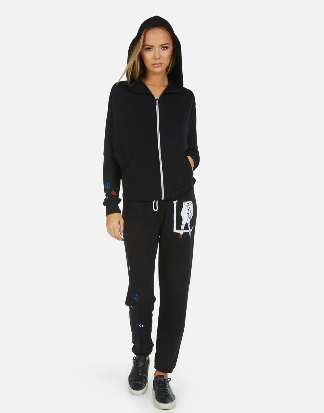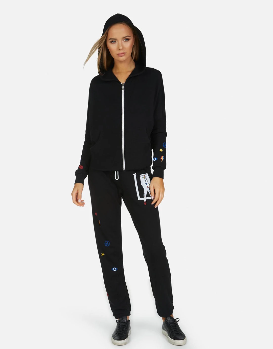 LA Hand Elements Printed on Ultra Soft Lightweight Sweatpant in Black by Lauren Moshi.