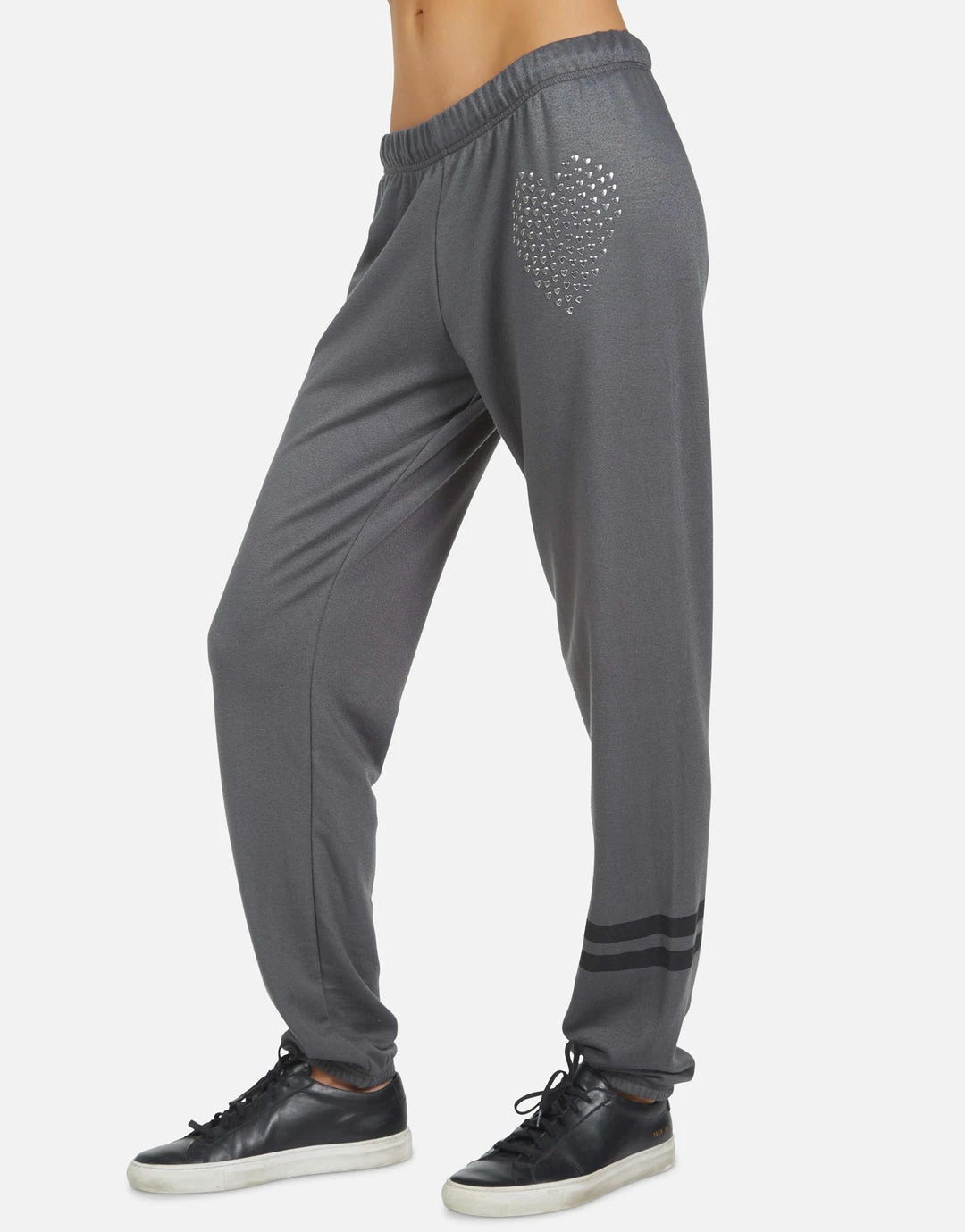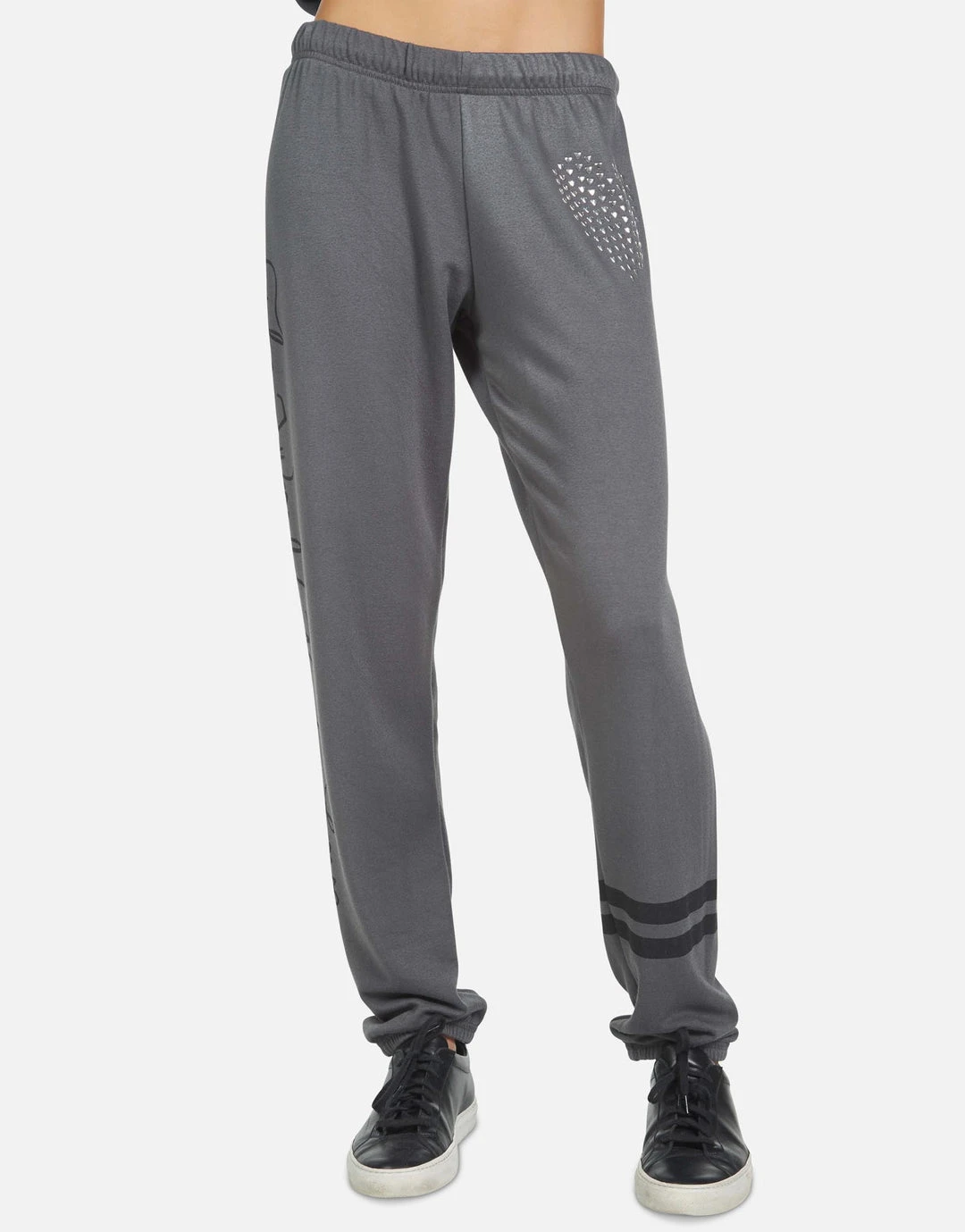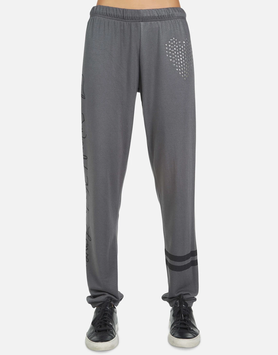 World Needs Love Printed on Ultra Soft Lightweight Sweatpant in Light Onyx by Lauren Moshi.