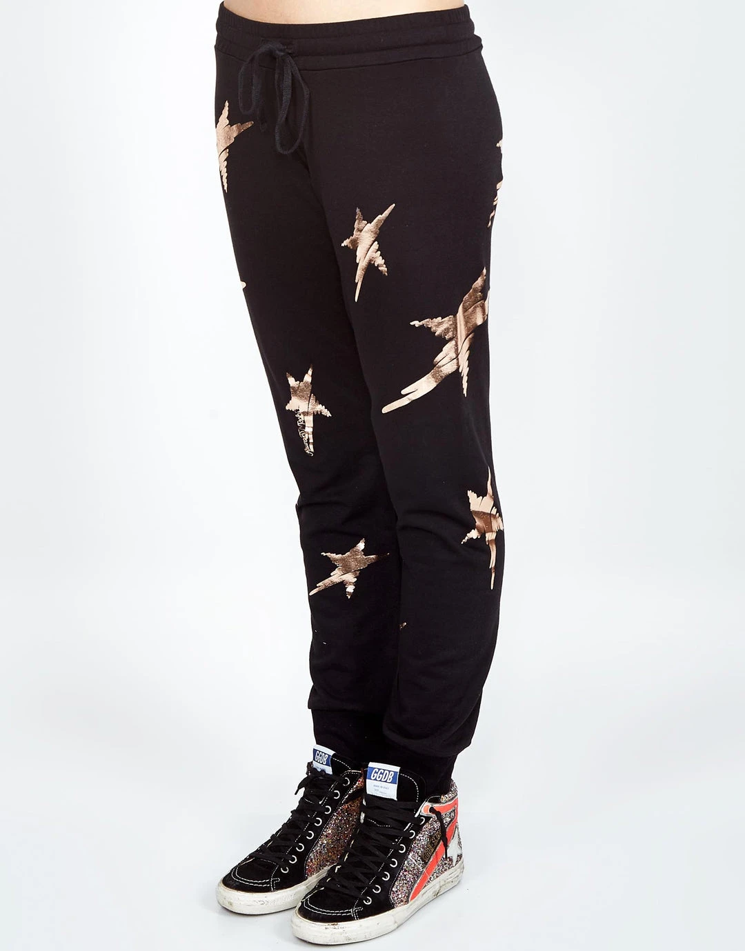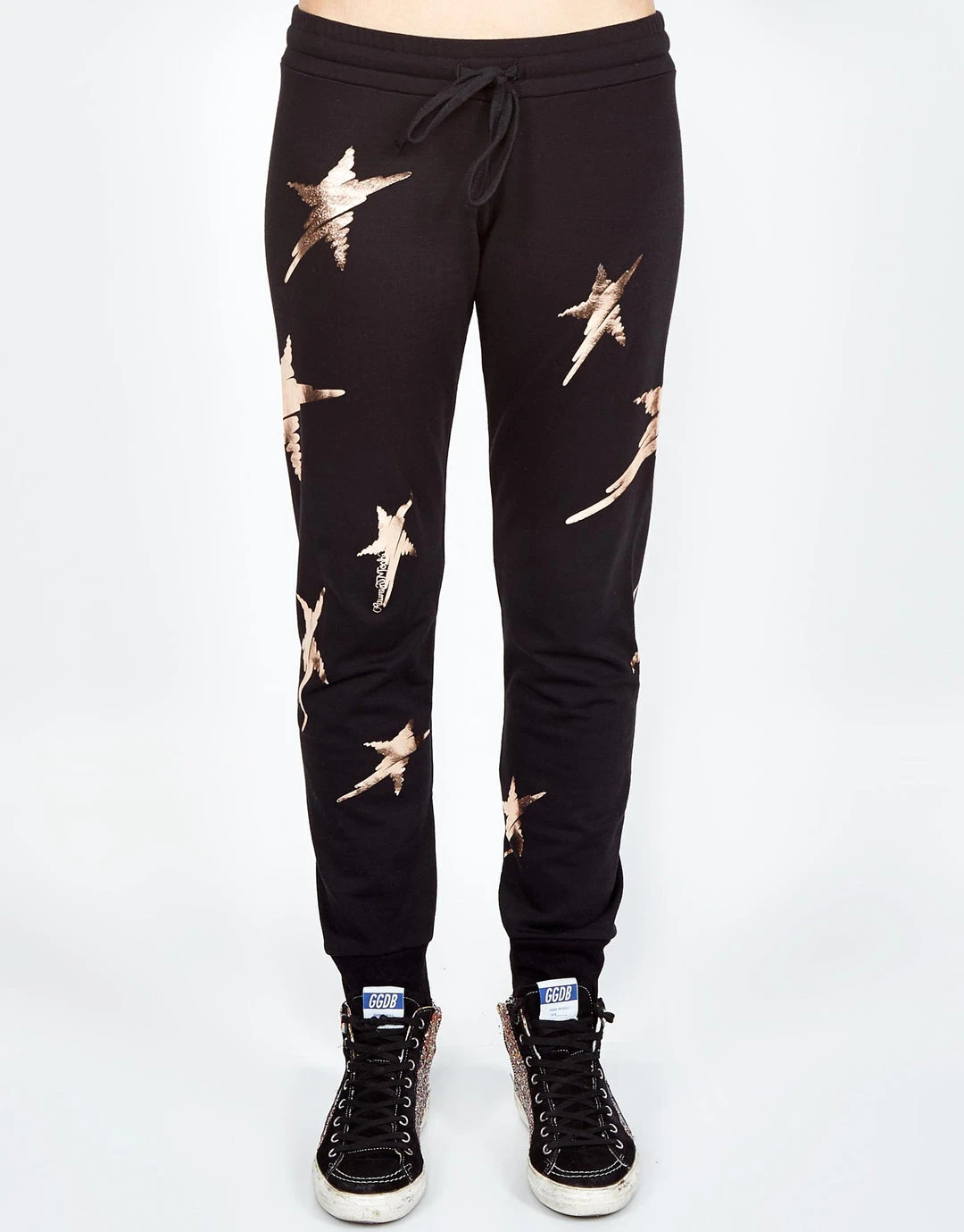 Allover Foil Scribble Mini Stars Printed on Ultra Soft Lightweight Sweatpant in Black by Lauren Moshi.