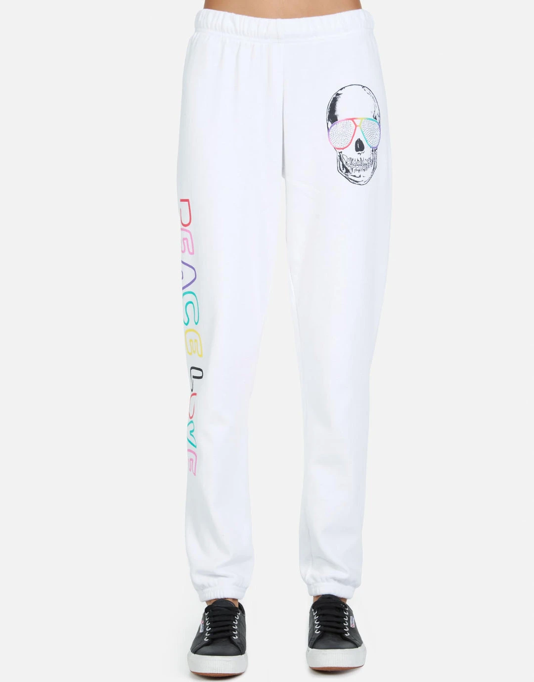 Cool Skull Printed on Ultra Soft Lightweight Sweatpant in White by Lauren Moshi.