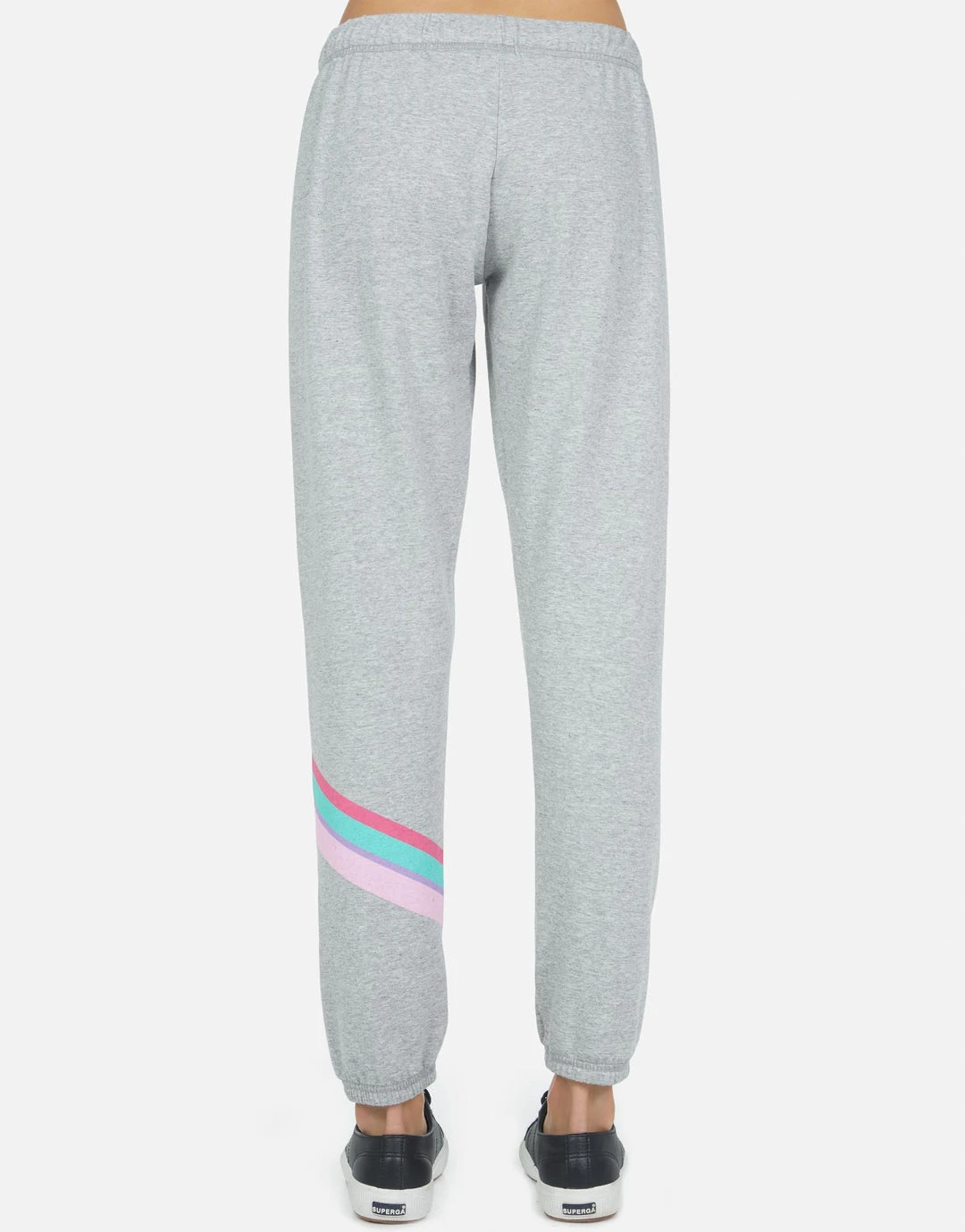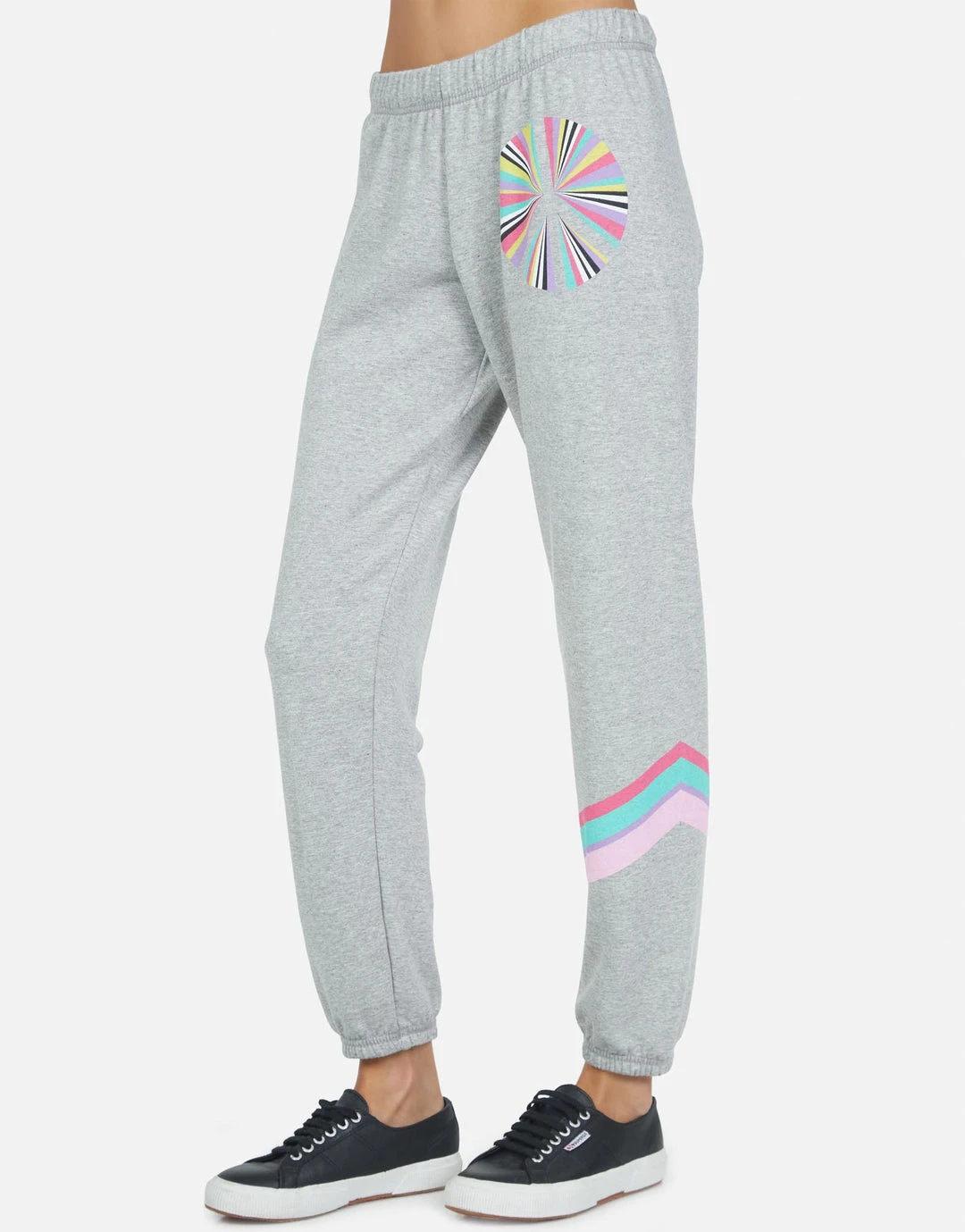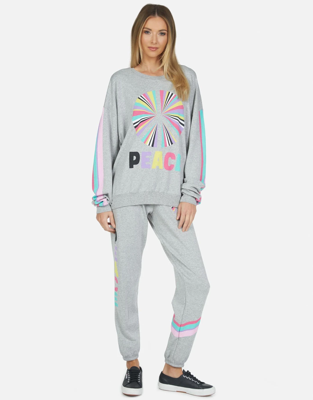 Rainbow Ray Peace Printed on Ultra Soft Lightweight Sweatpant in Heather Grey by Lauren Moshi.