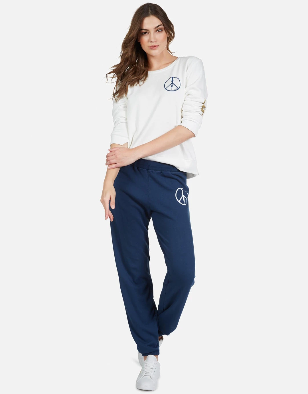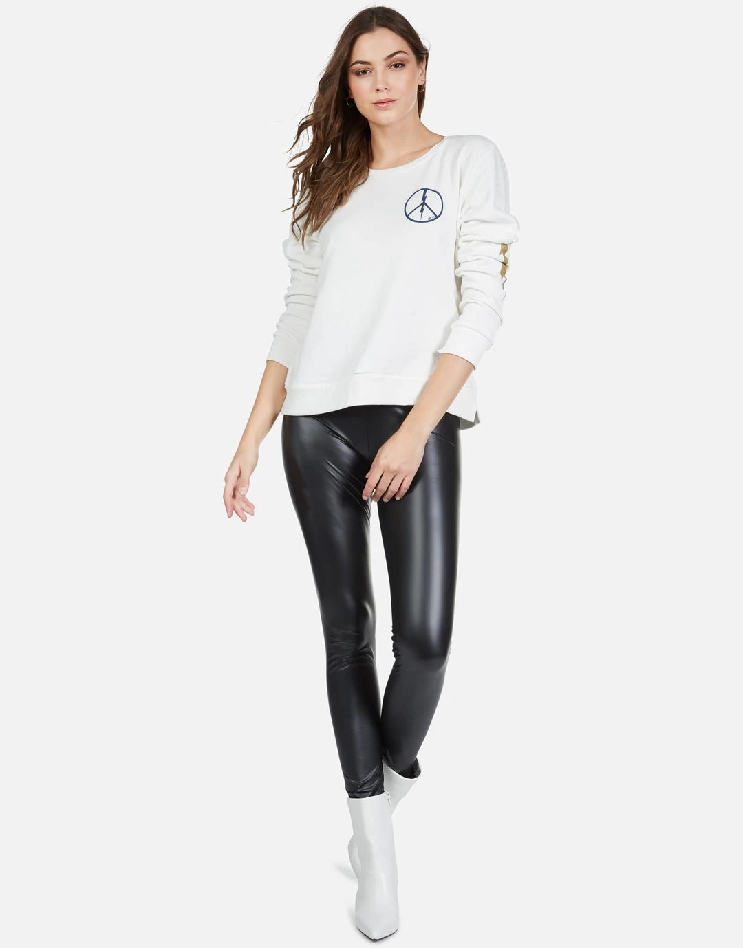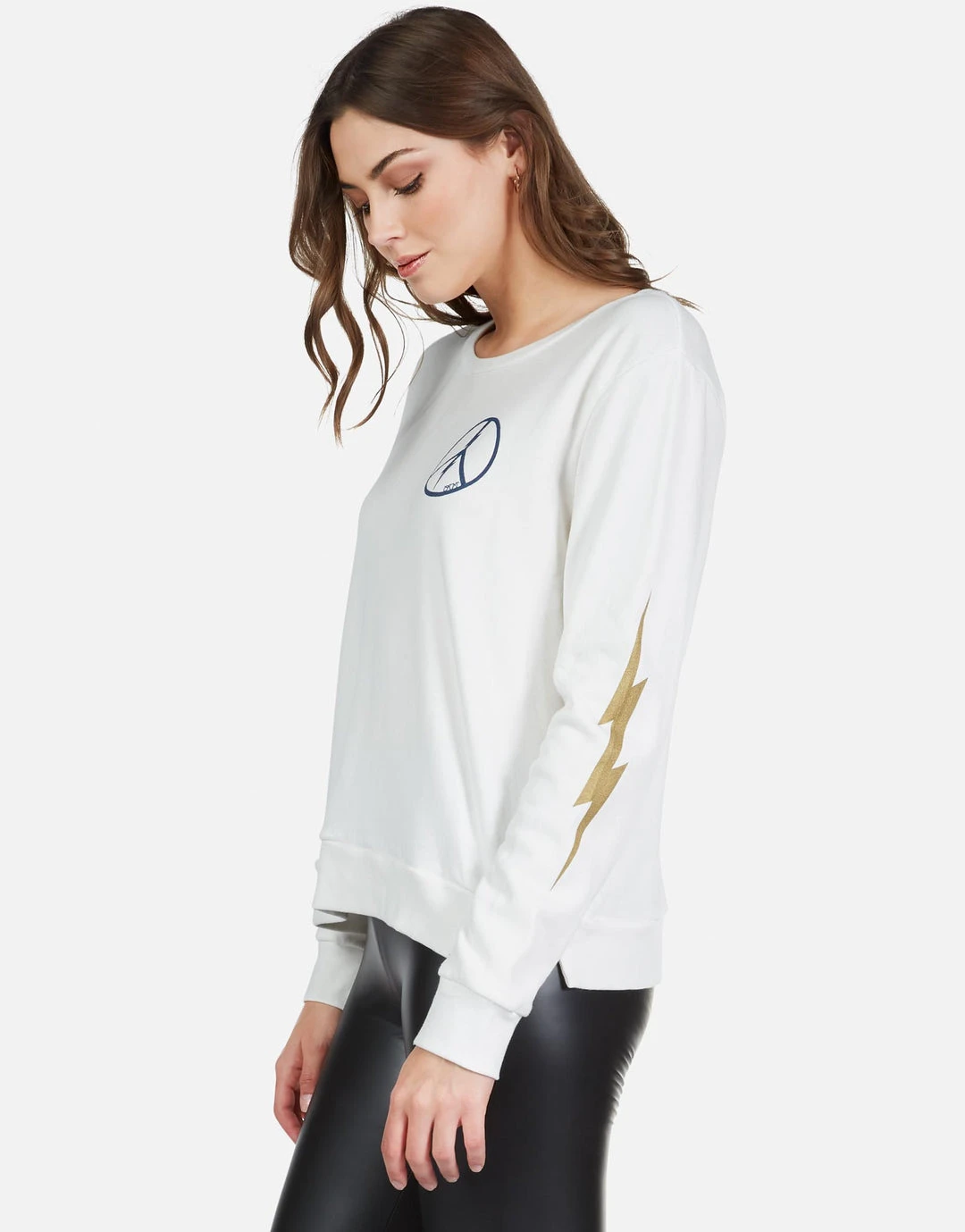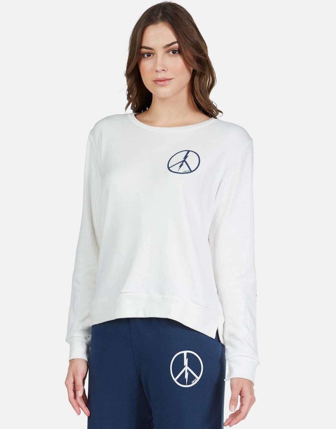 Peace Lightning Printed on Ultra Soft Lightweight Pullover in Milk by Lauren Moshi.