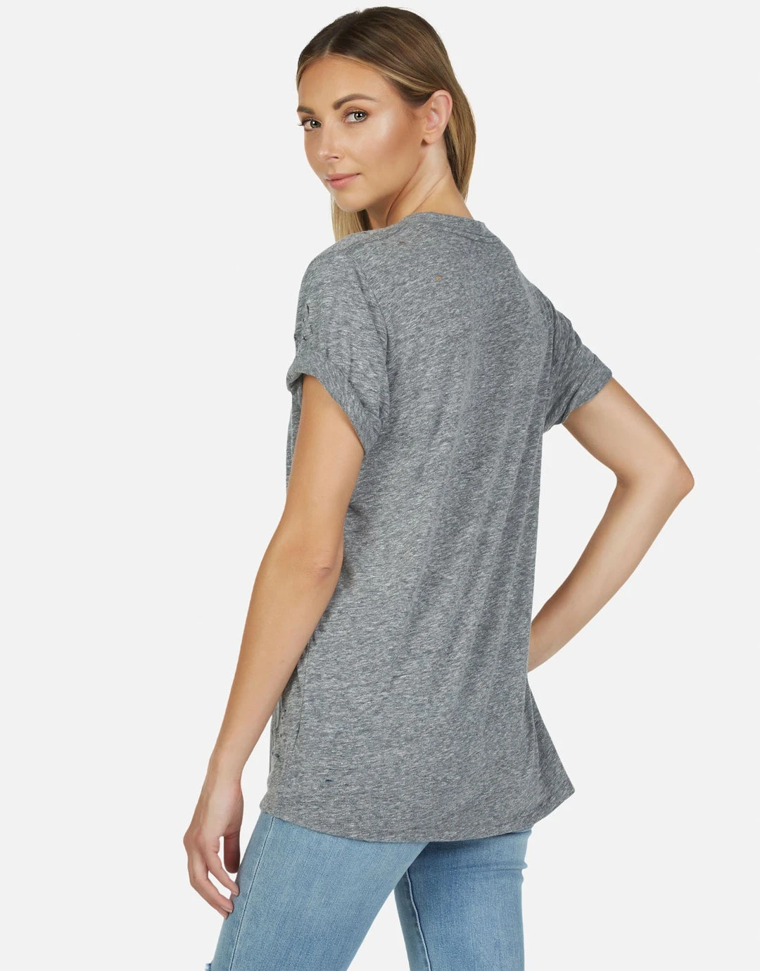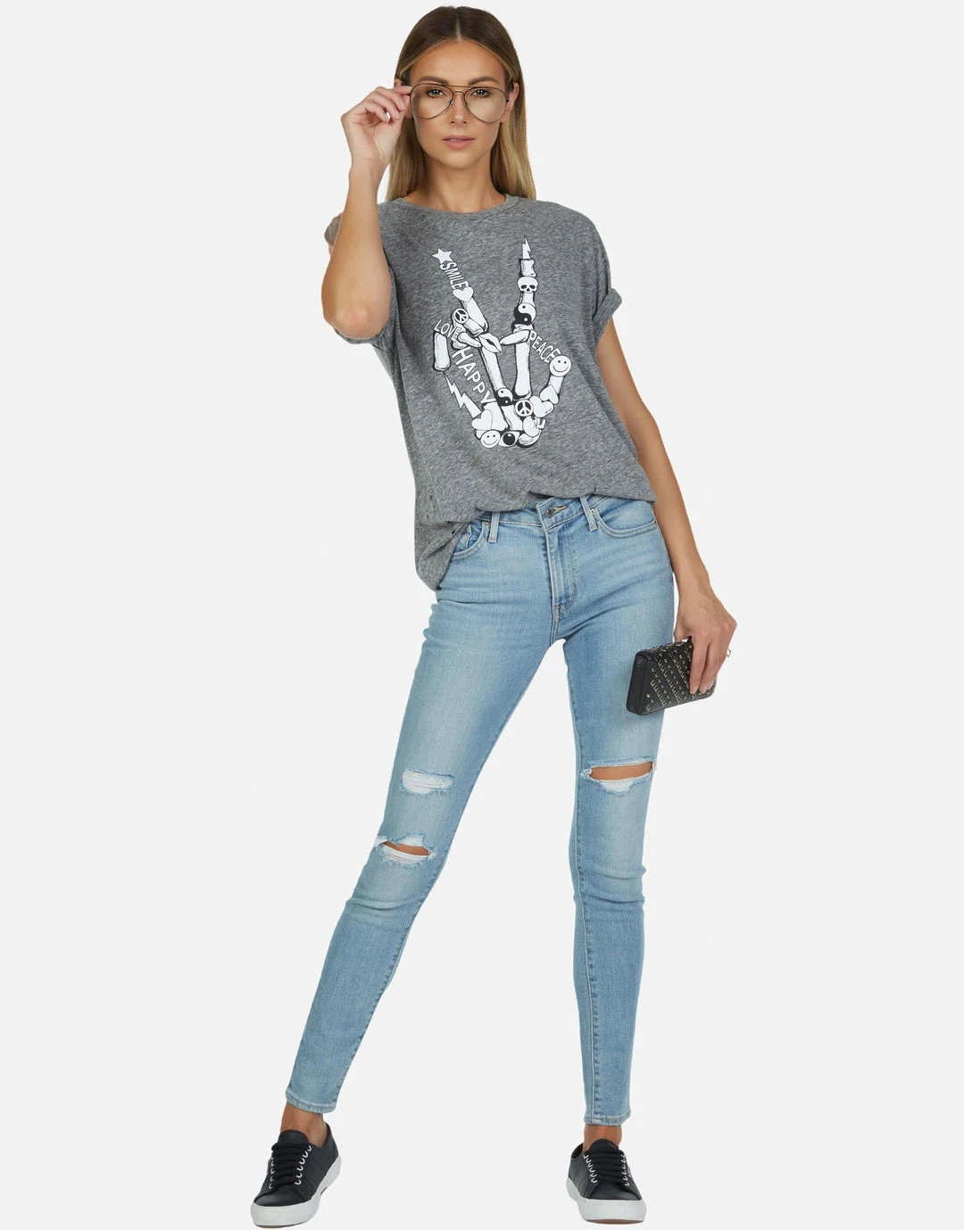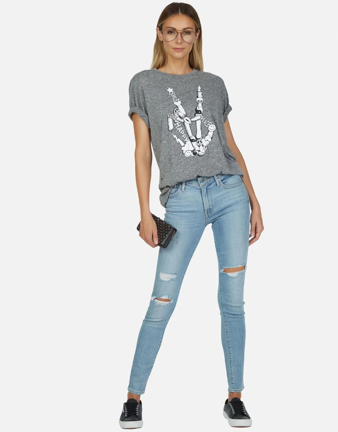 Skeleton Peace Elements Printed on Ultra Soft Lightweight Tee in Heather Grey by Lauren Moshi.