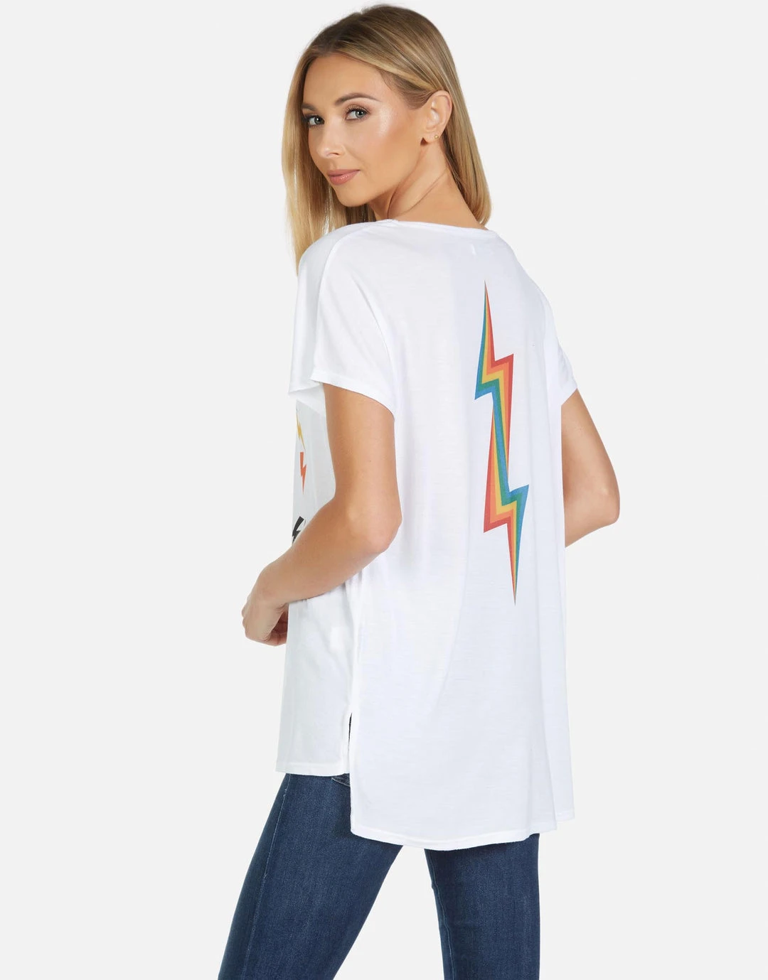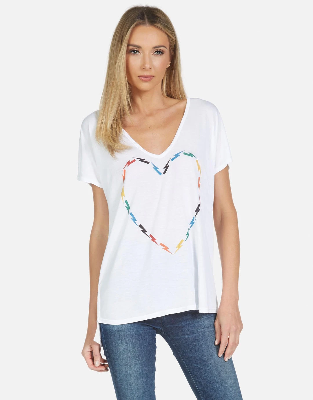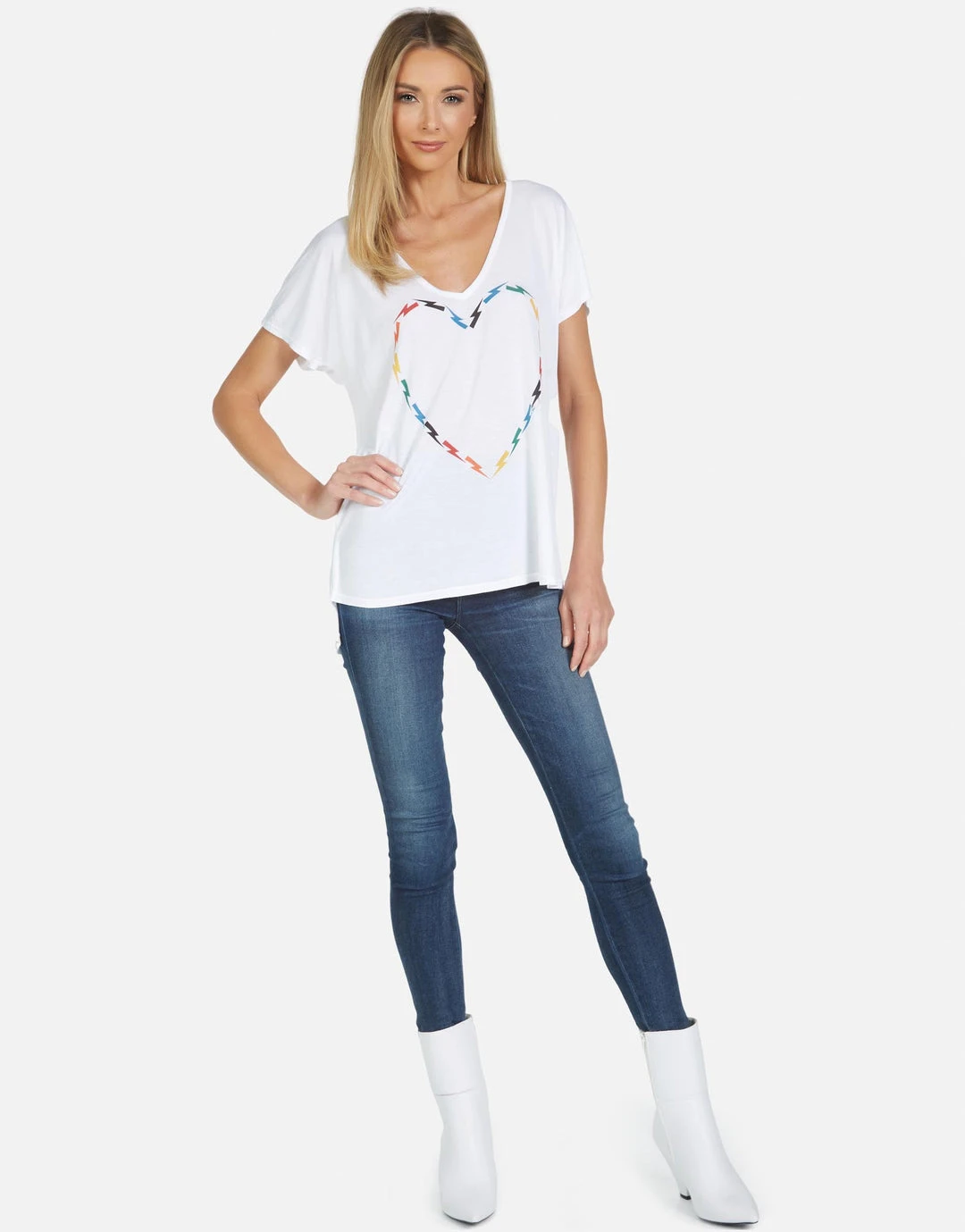 Rainbow Electric Heart on Ultra Soft Lightweight Tee in White by Lauren Moshi.