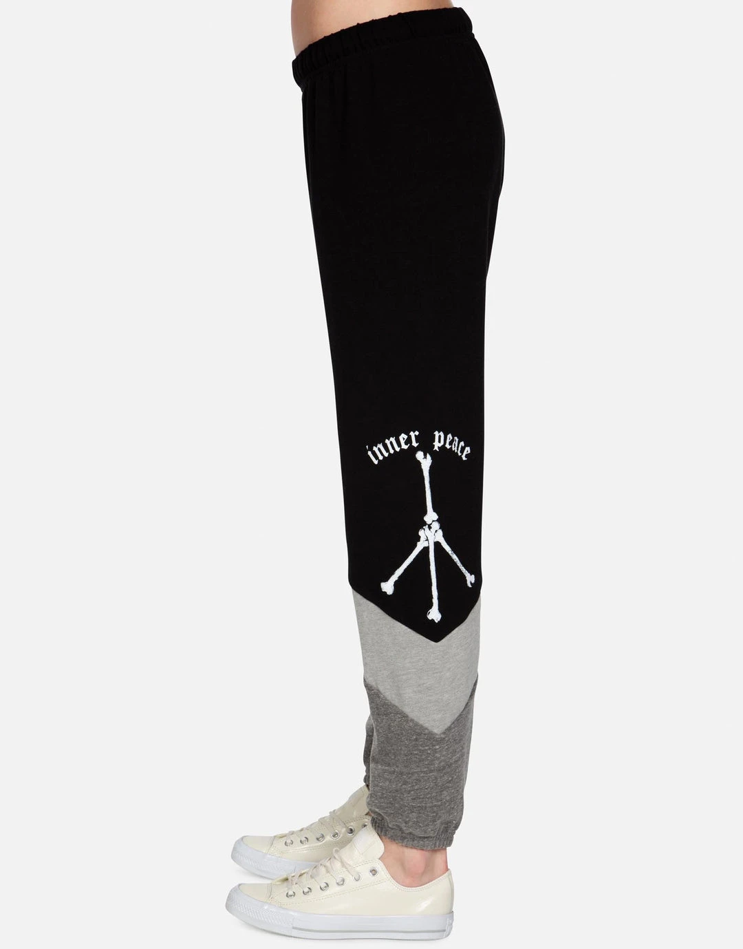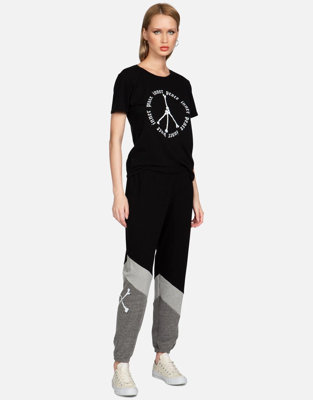 Inner Peace Sign Printed on Ultra Soft Lightweight Sweatpant in Black/Charcoal/Heather Grey by Lauren Moshi.