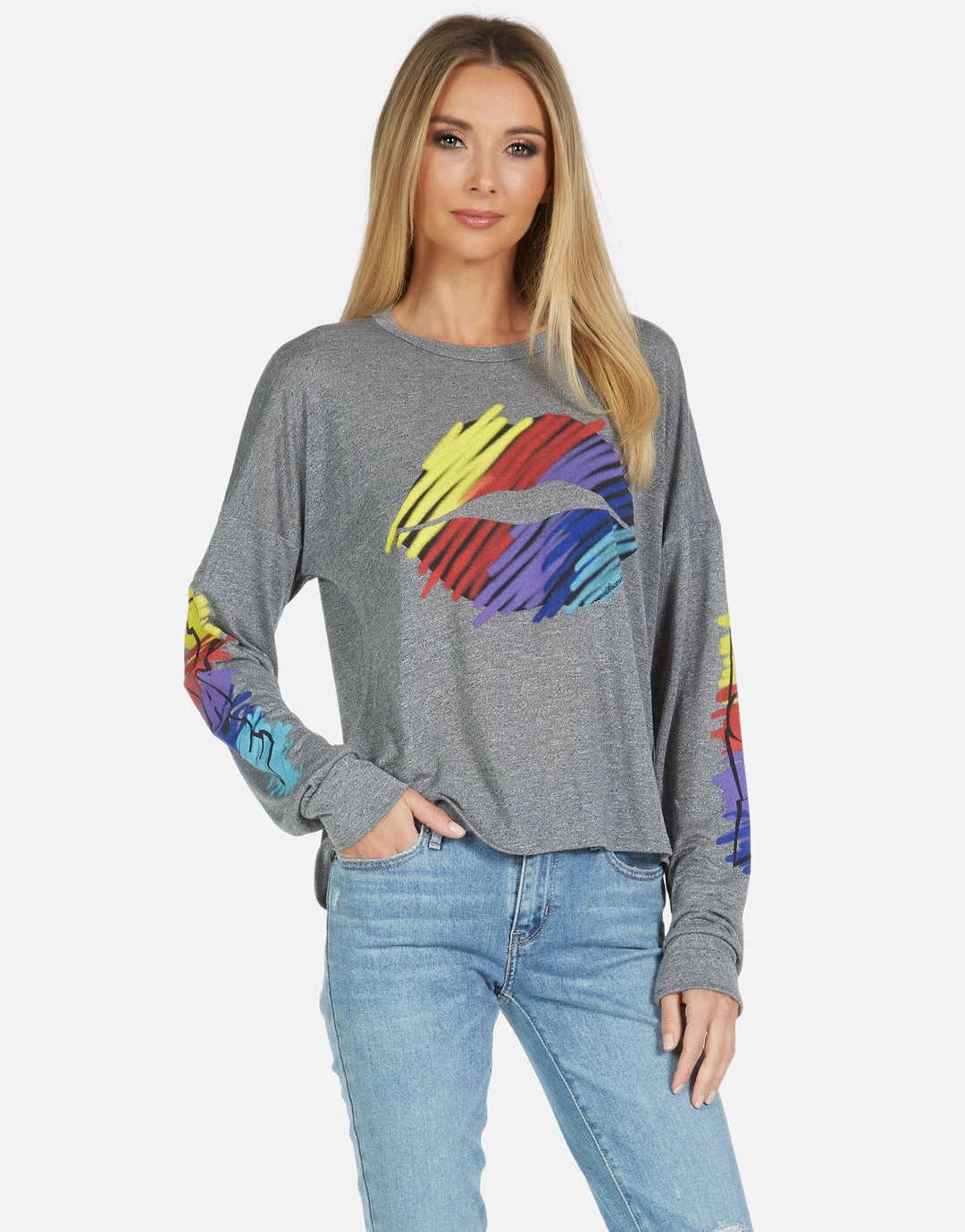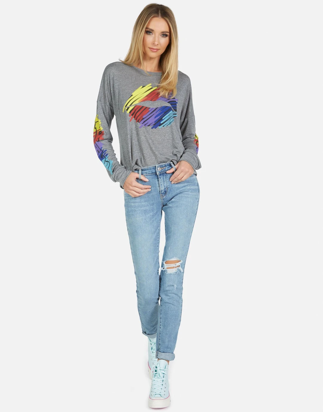 Scribble Lip on Ultra Soft Lightweight Tee in Heather Grey by Lauren Moshi.