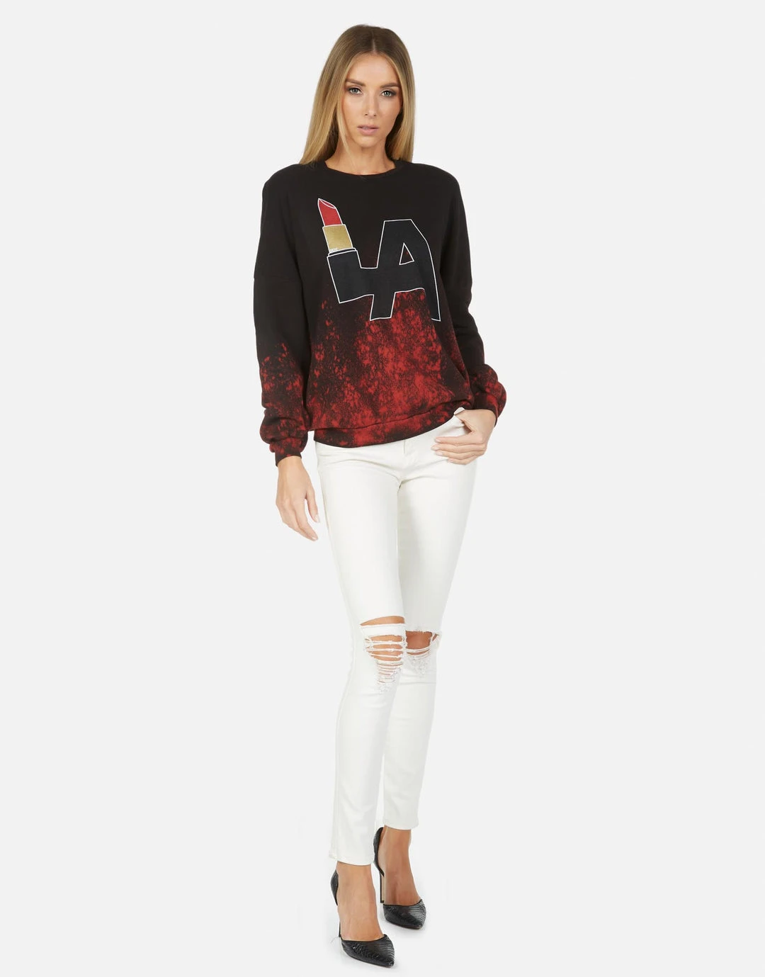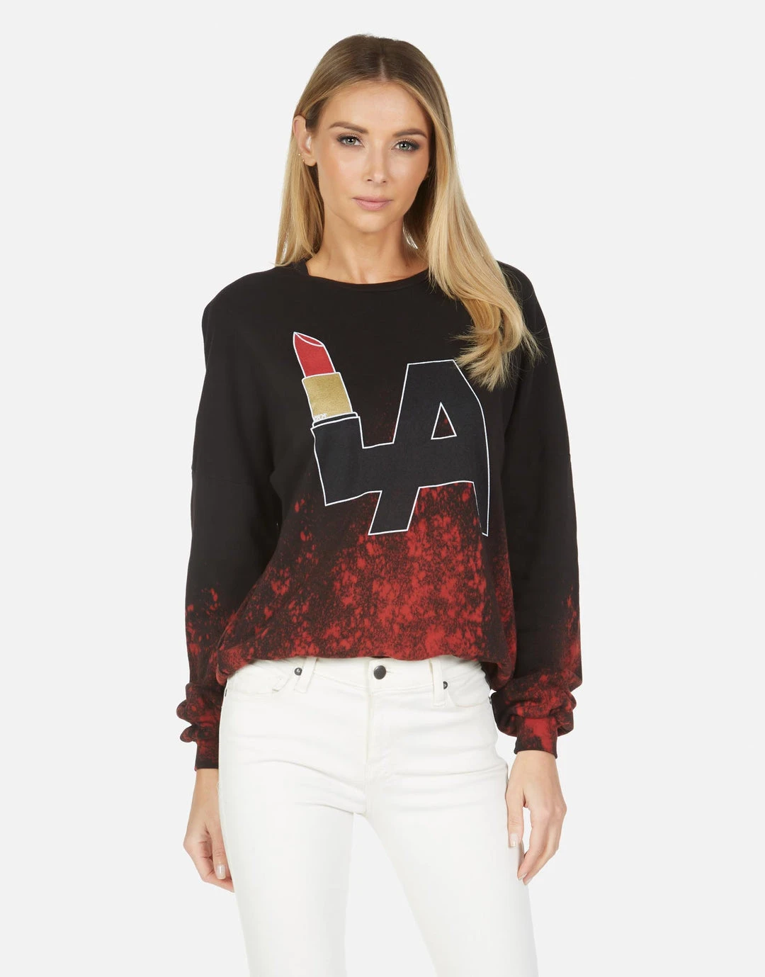LA Lipstick Printed on Ultra Soft Lightweight Pullover in Lipstick Wash by Lauren Moshi.