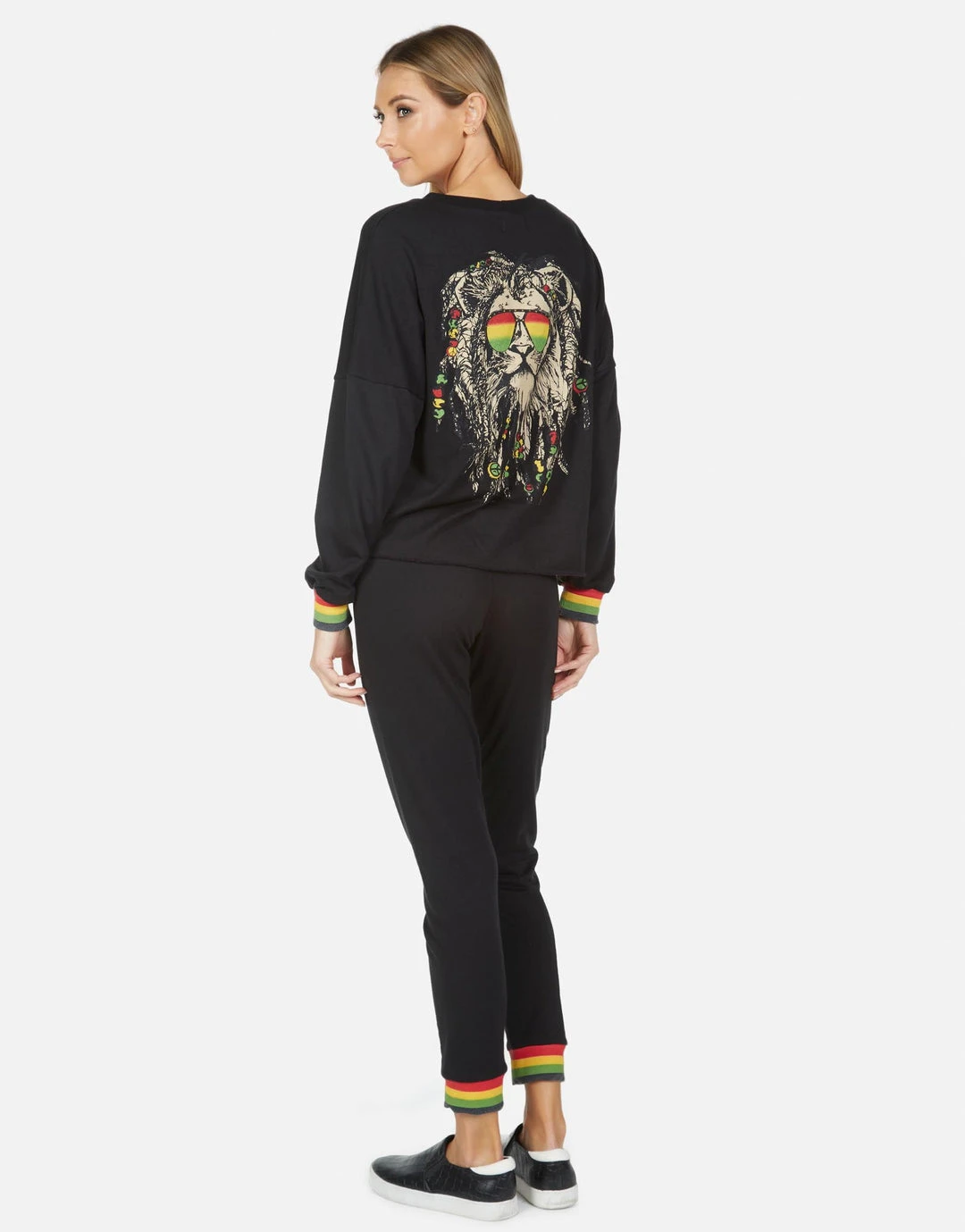 Rasta Lion Printed on Ultra Soft Lightweight Sweatpant in Black by Lauren Moshi.