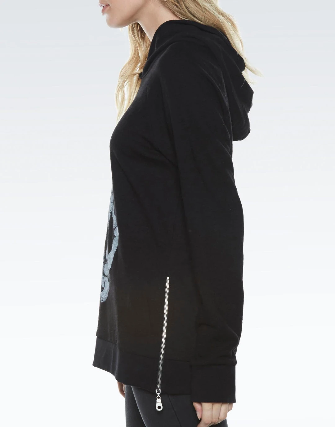Skeleton Peace Printed on Ultra Soft Pullover Hoodie in Black by Lauren Moshi.