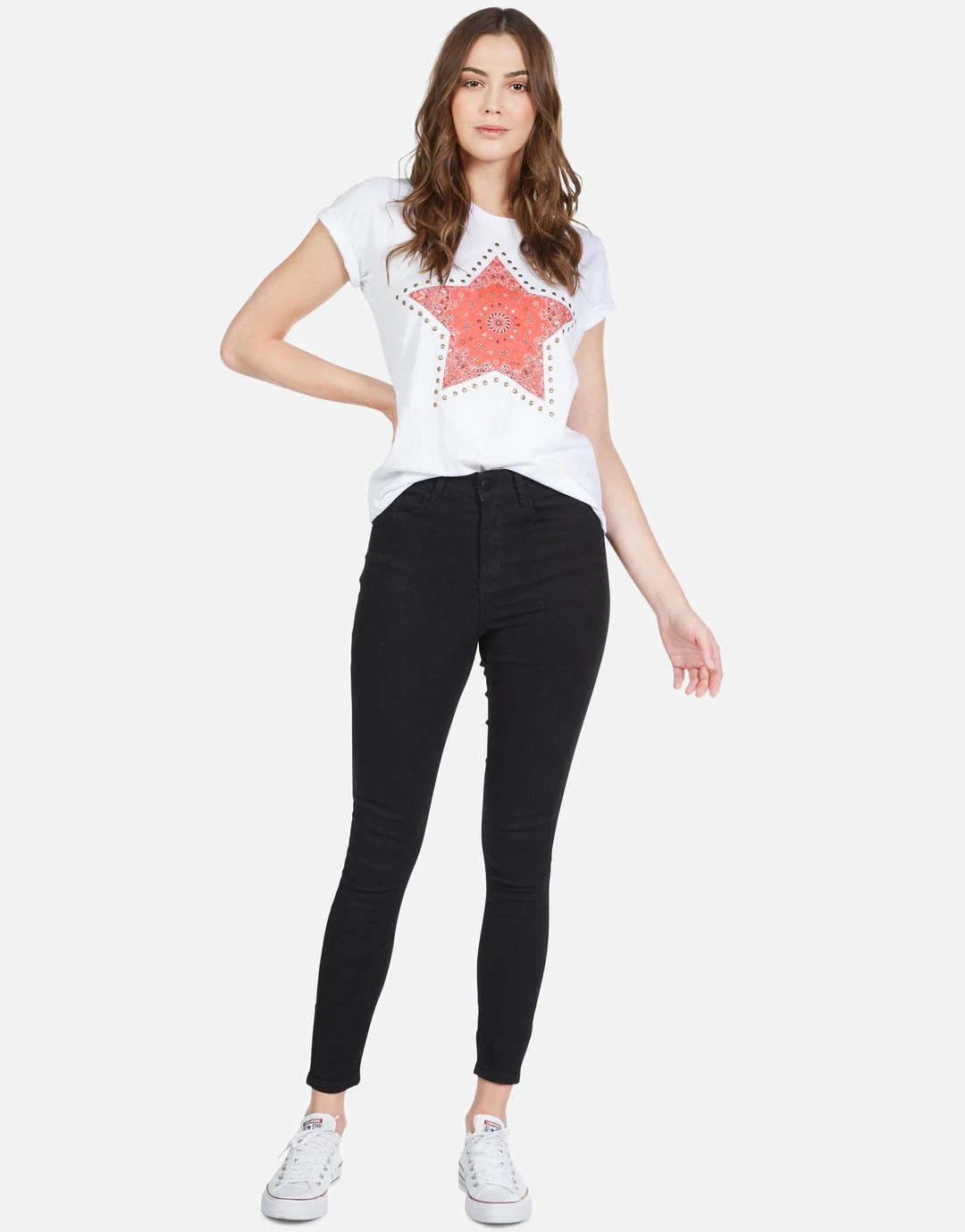 Bandana Star Printed on Super Soft Lightweight Vintage Tee in Faded White by Lauren Moshi.