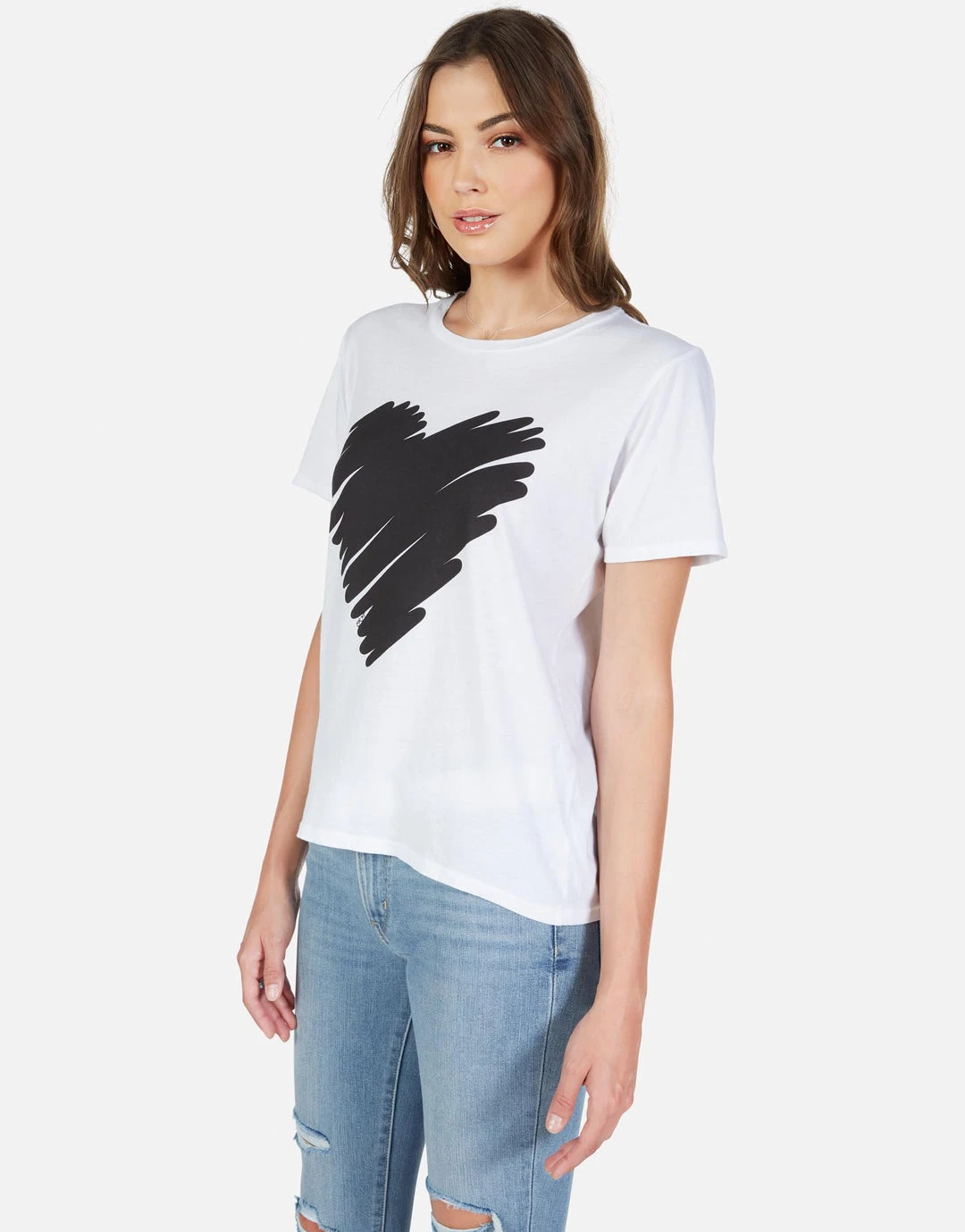 Scribble Heart Printed on Ultra Soft Lightweight Tee in White by Lauren Moshi.