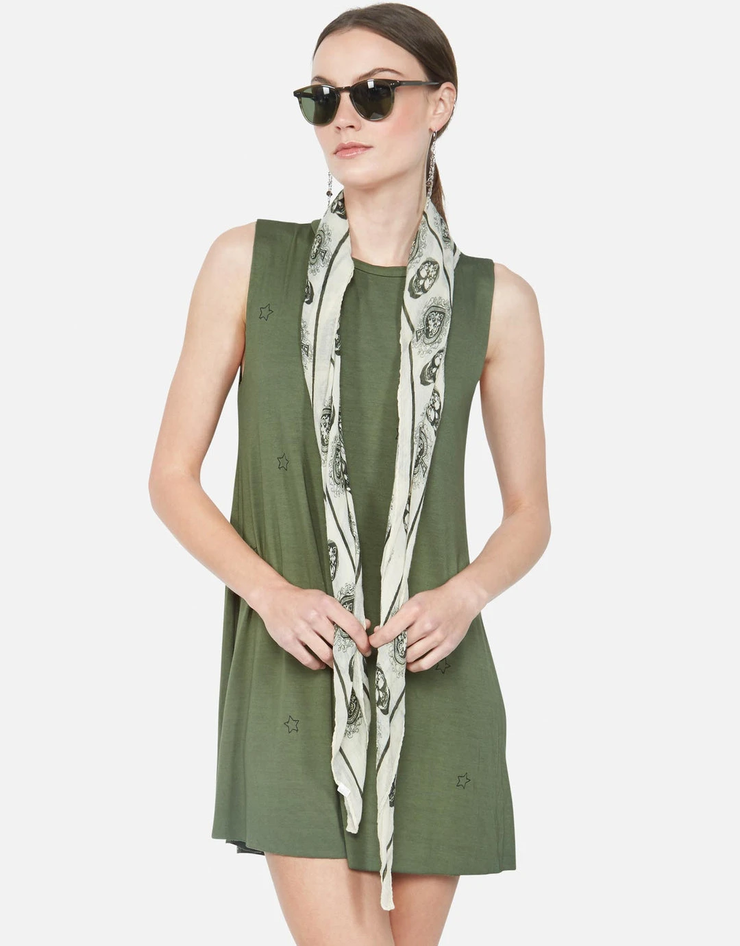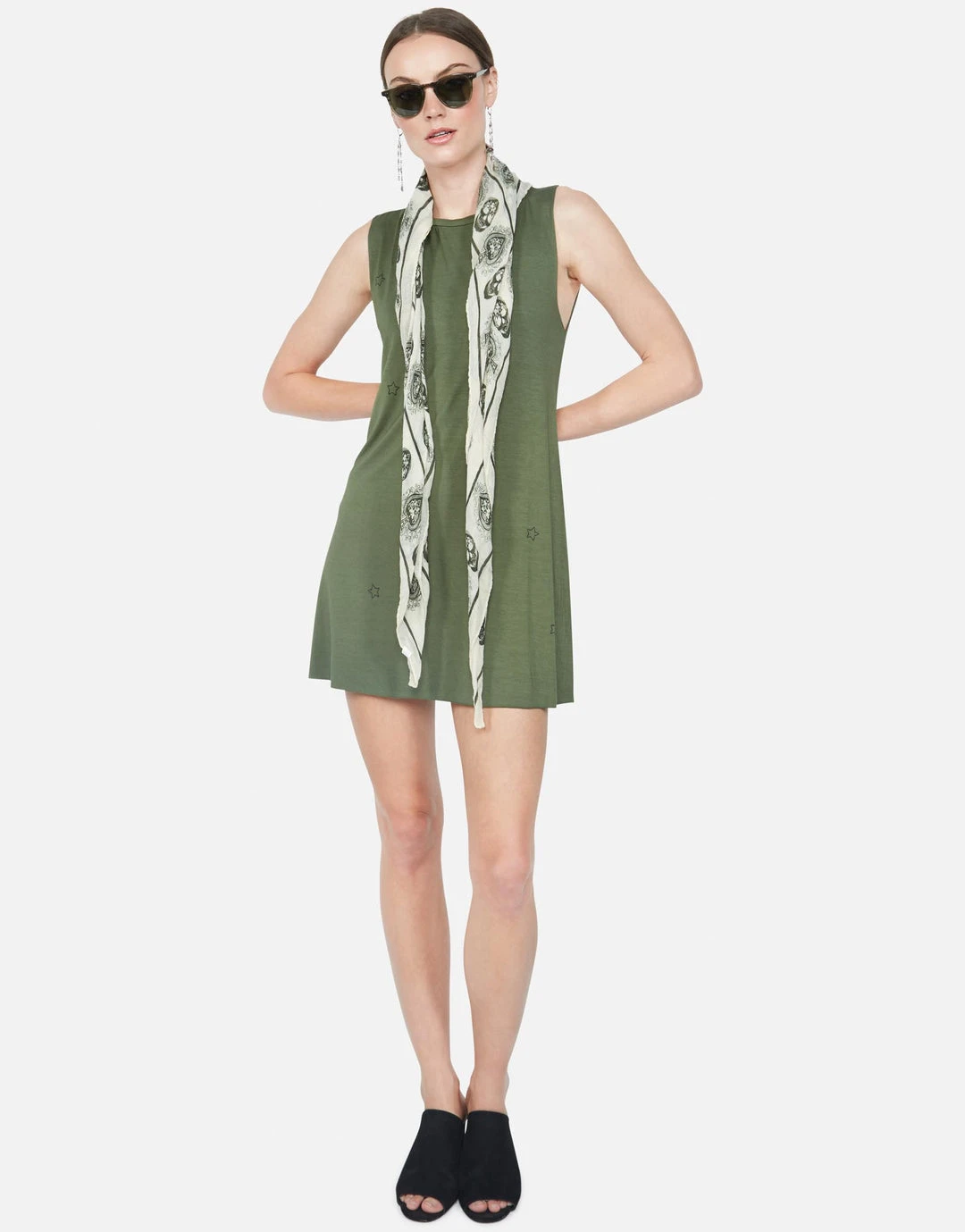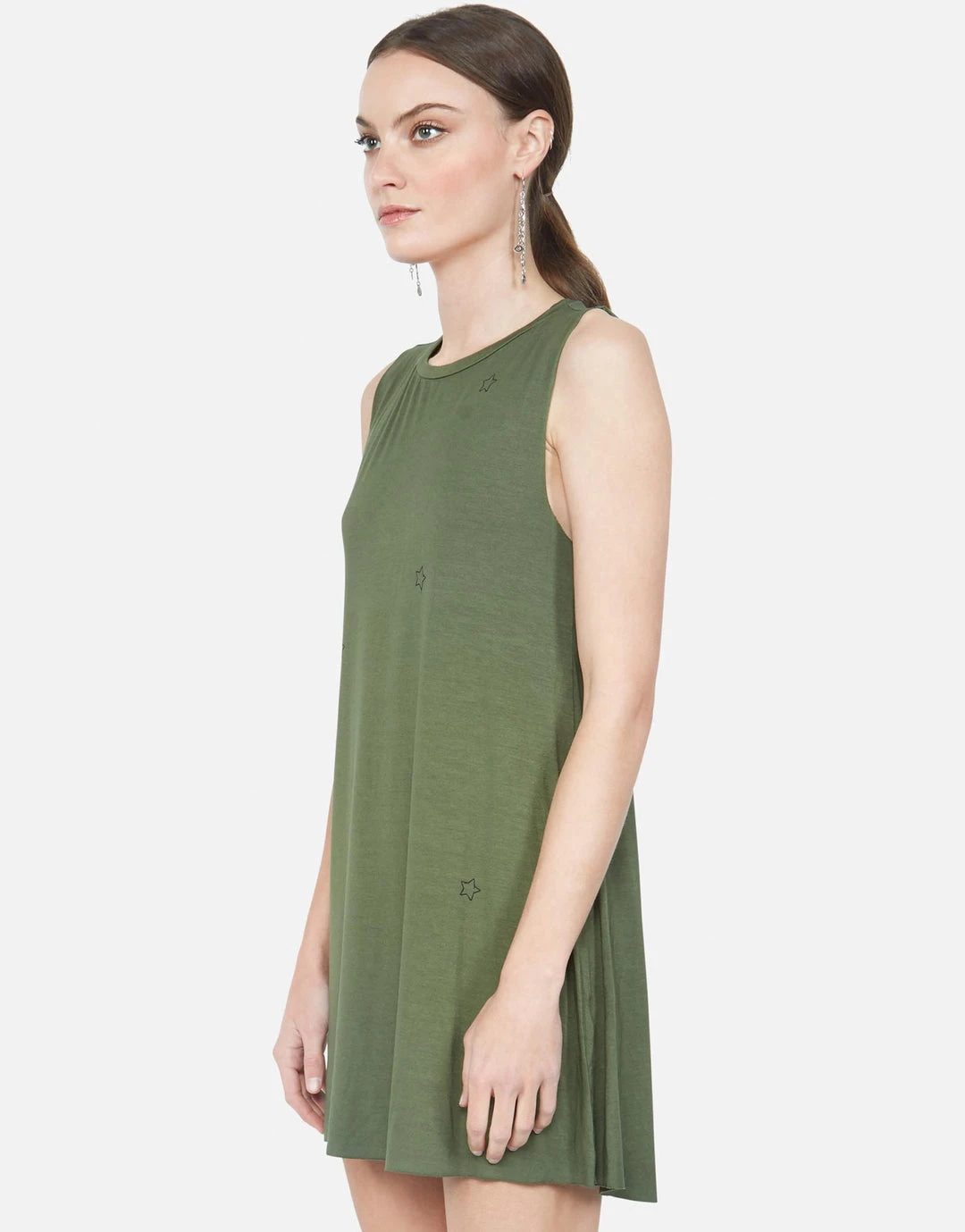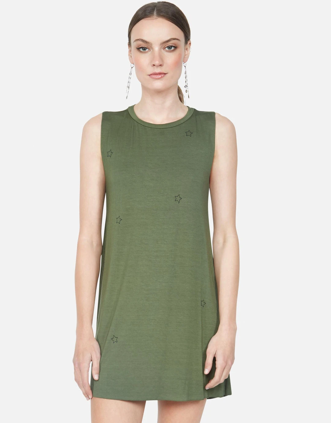 Allover Mini Dripping Stars Printed on Ultra Soft Lightweight Mini Dress in Military by Lauren Moshi.