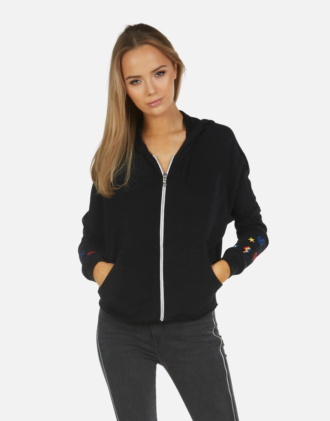 LA Hand Elements Printed on Ultra Soft Lightweight Hoodie in Black by Lauren Moshi.