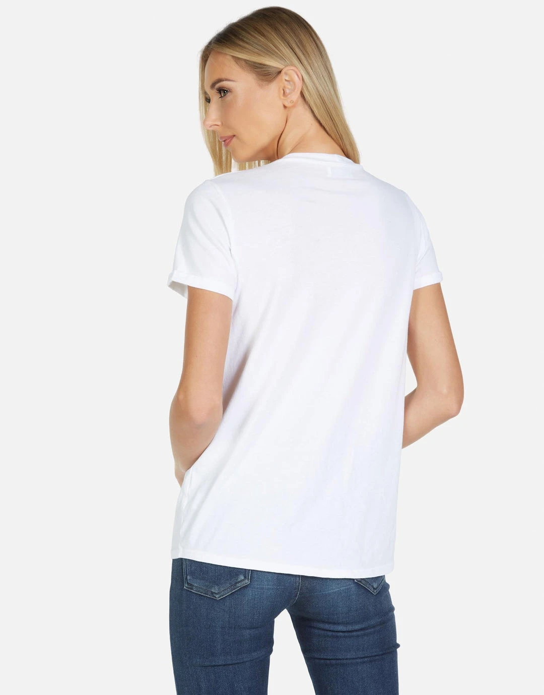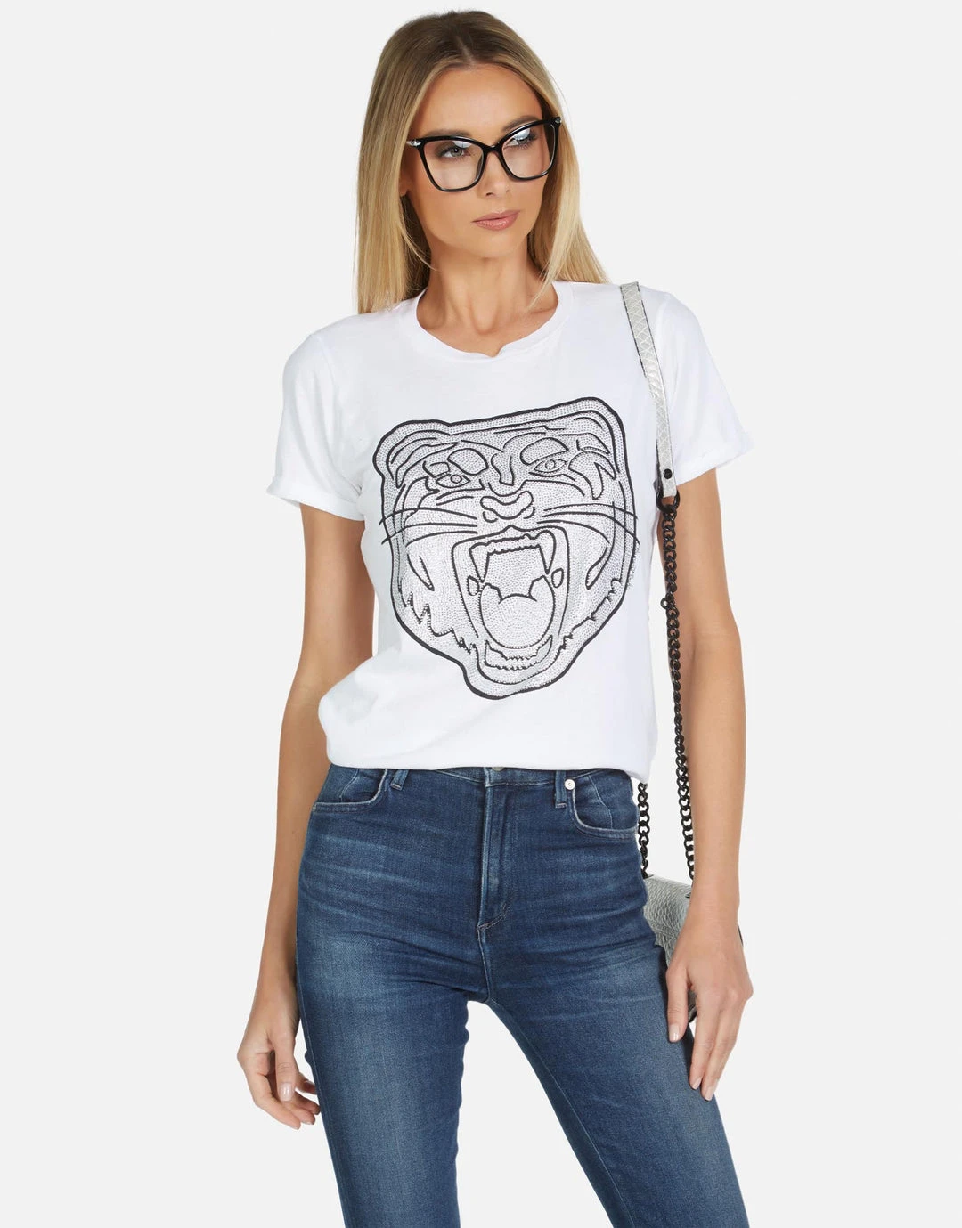 Crystal Tiger Head on Ultra Soft Lightweight Tee in White by Lauren Moshi.