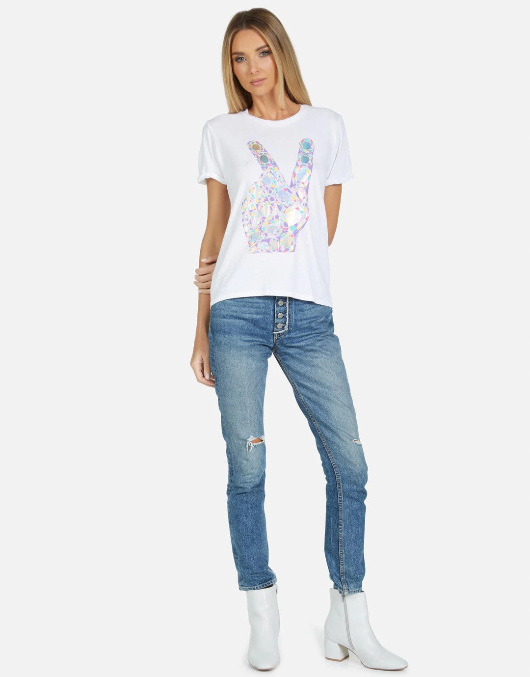 Meatallic Diamond Peace Printed on Ultra Soft Lightweight Tee in White by Lauren Moshi.