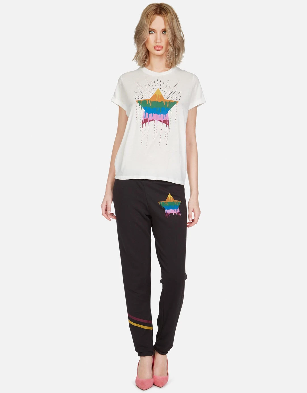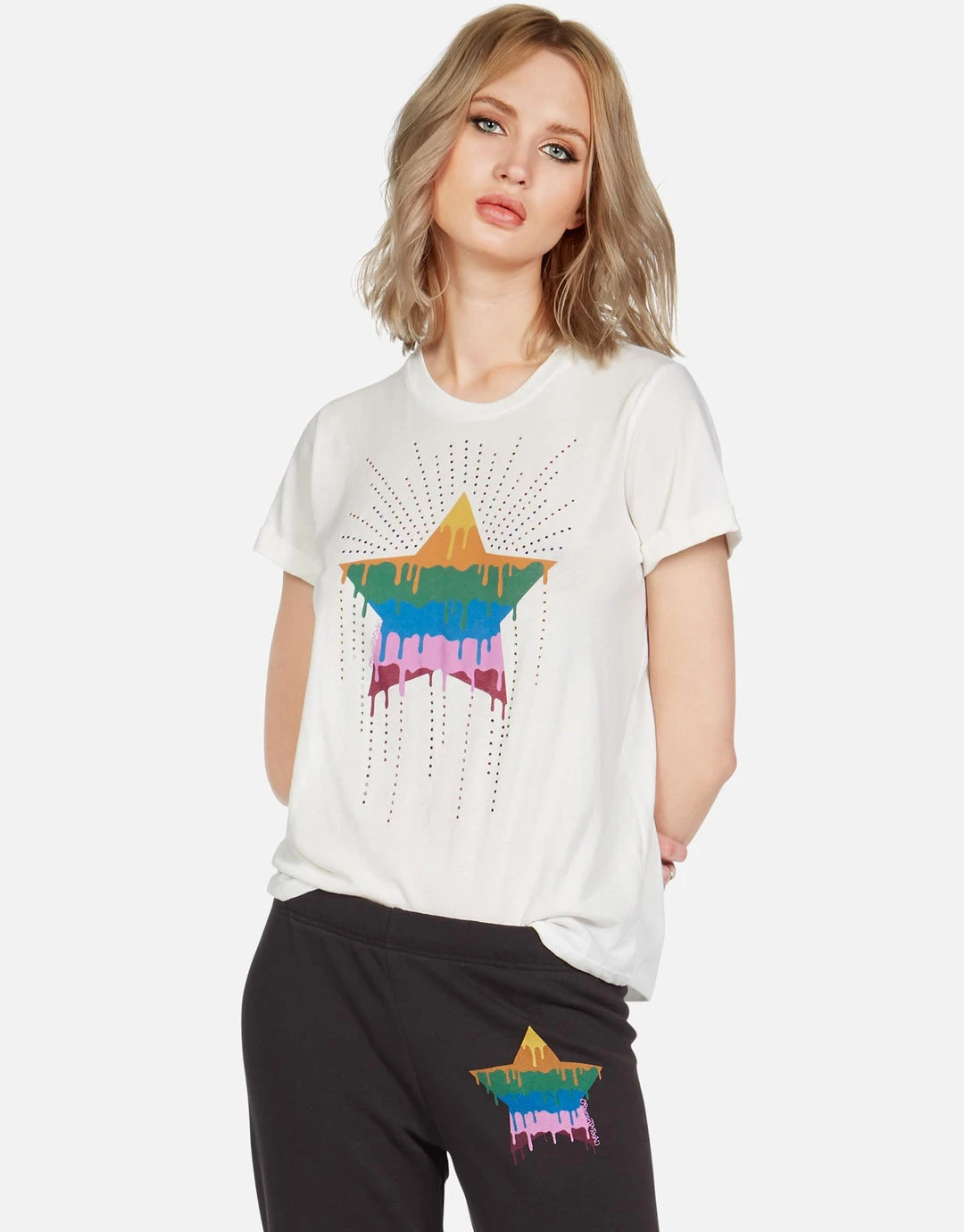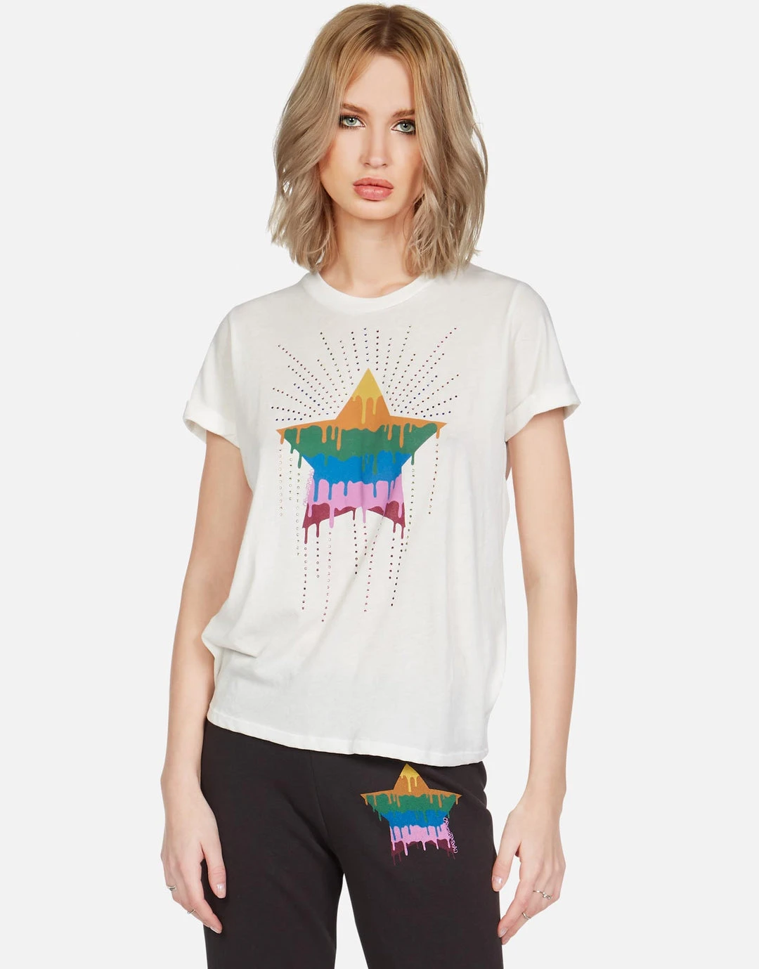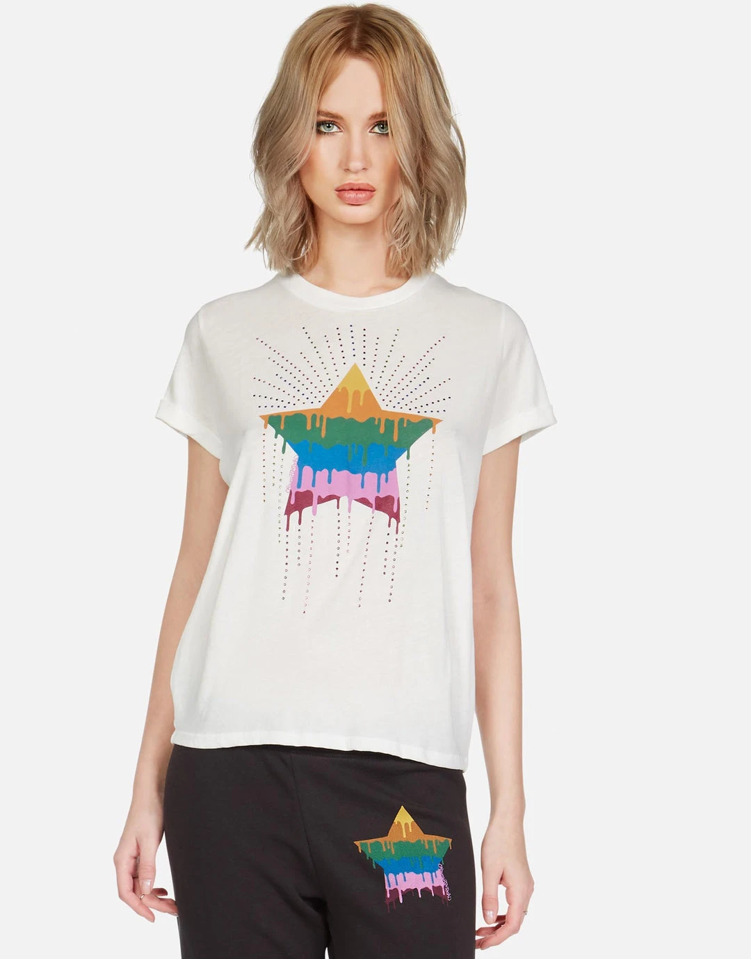 Dripping Star Printed on Ultra Soft Lightweight Vintage Tee in Milk by Lauren Moshi.
