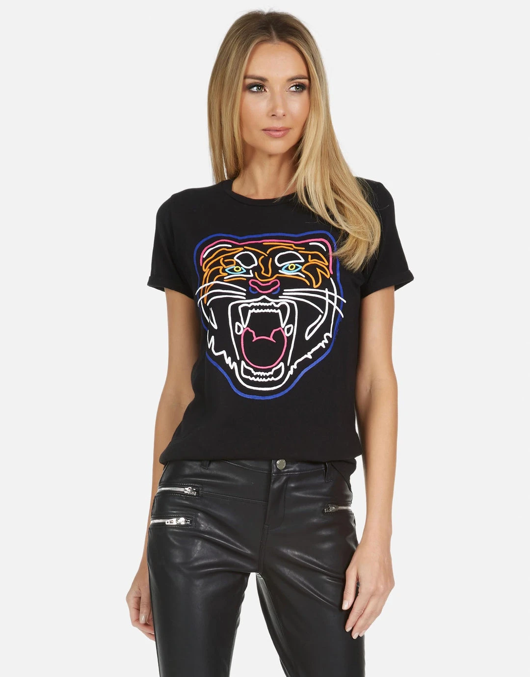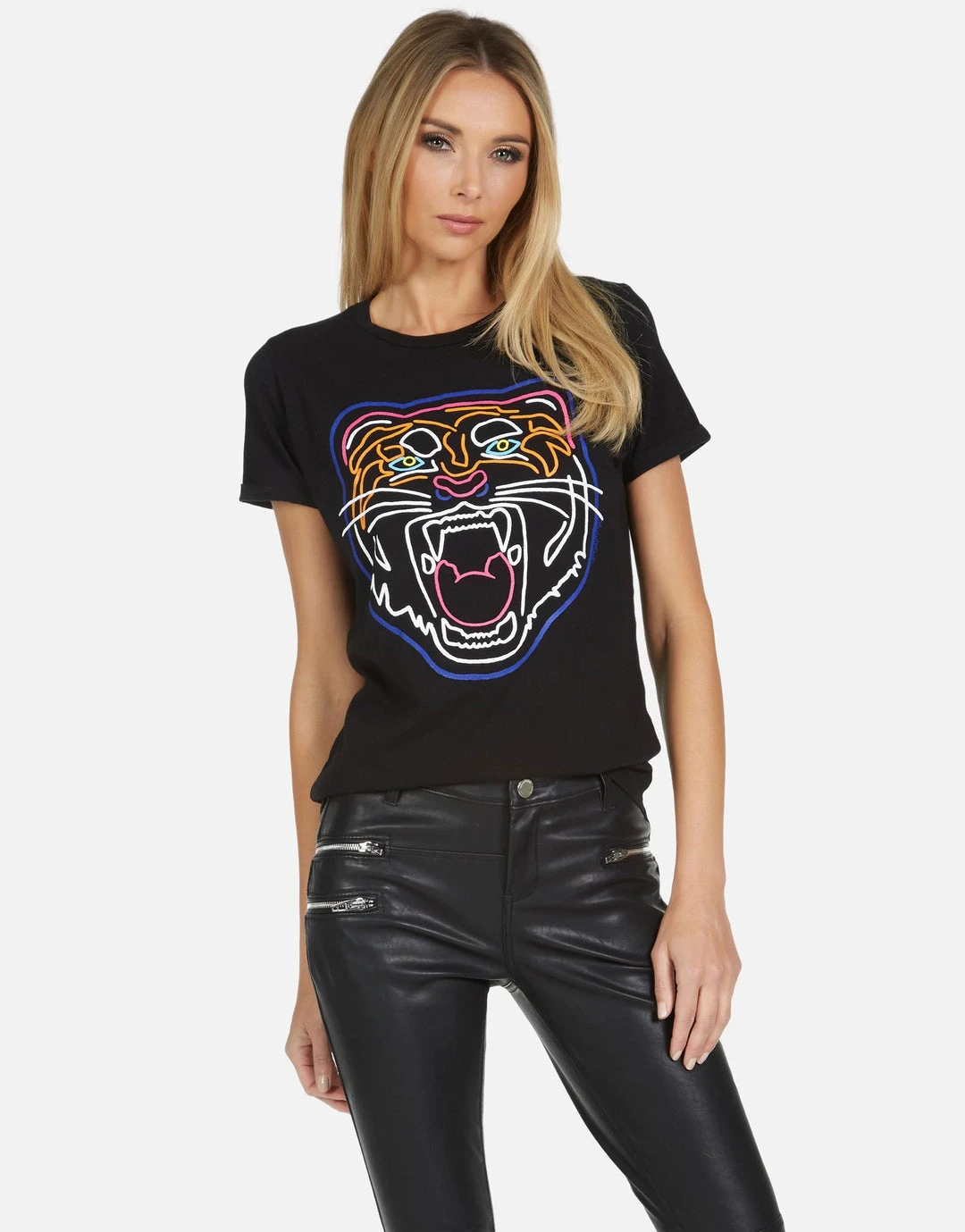 Neon Tiger on Ultra Soft Lightweight Tee in Black by Lauren Moshi.