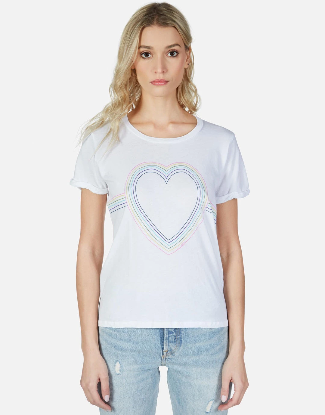 Rainbow Heart Outline Printed on Ultra Soft Lightweight Vintage Tee by Lauren Moshi.