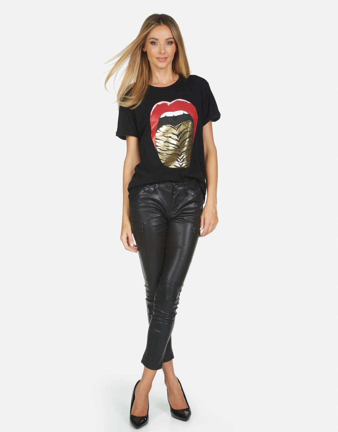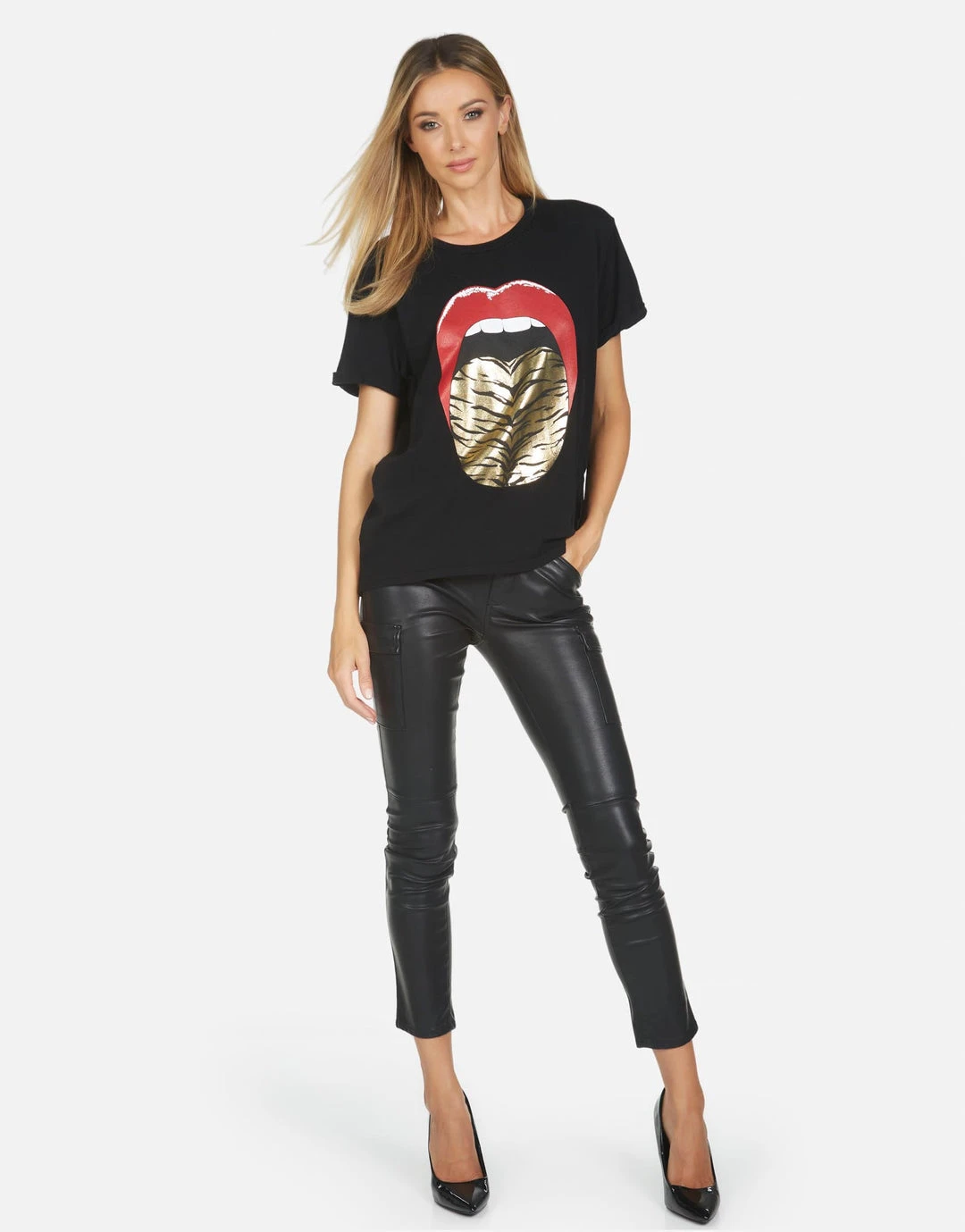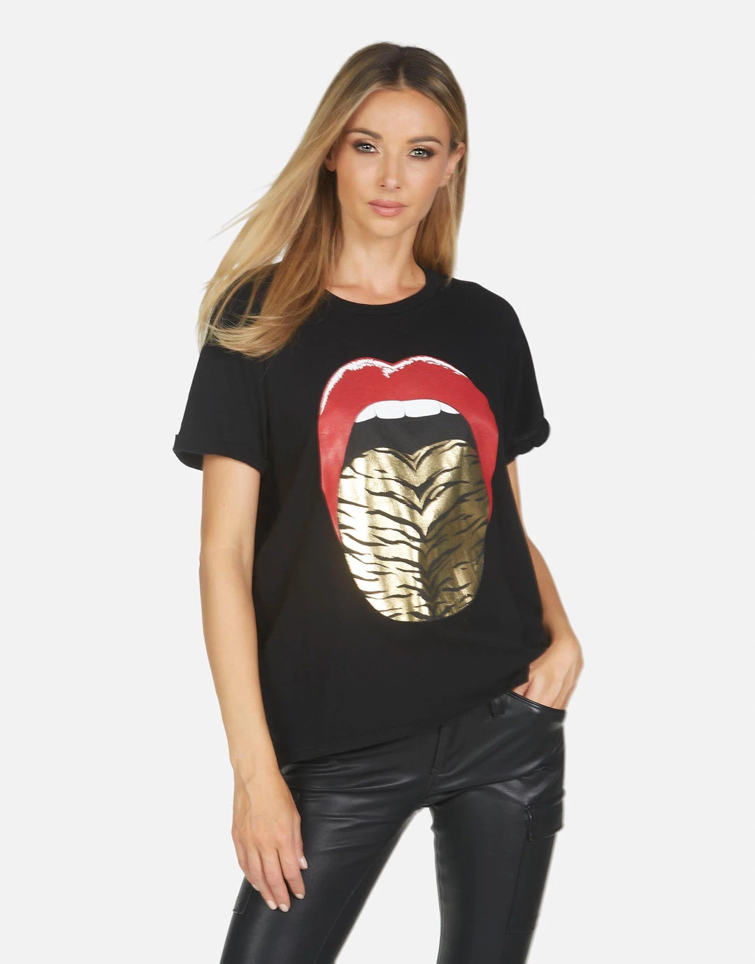 Tiger Tongue Printed on Ultra Soft Lightweight Tee in Black by Lauren Moshi.