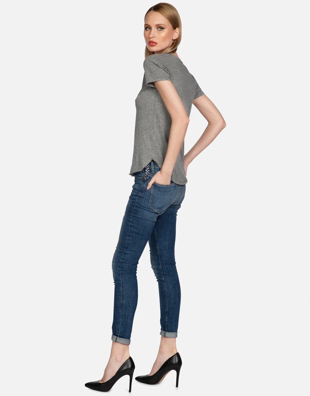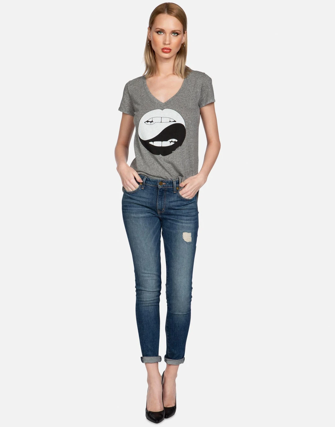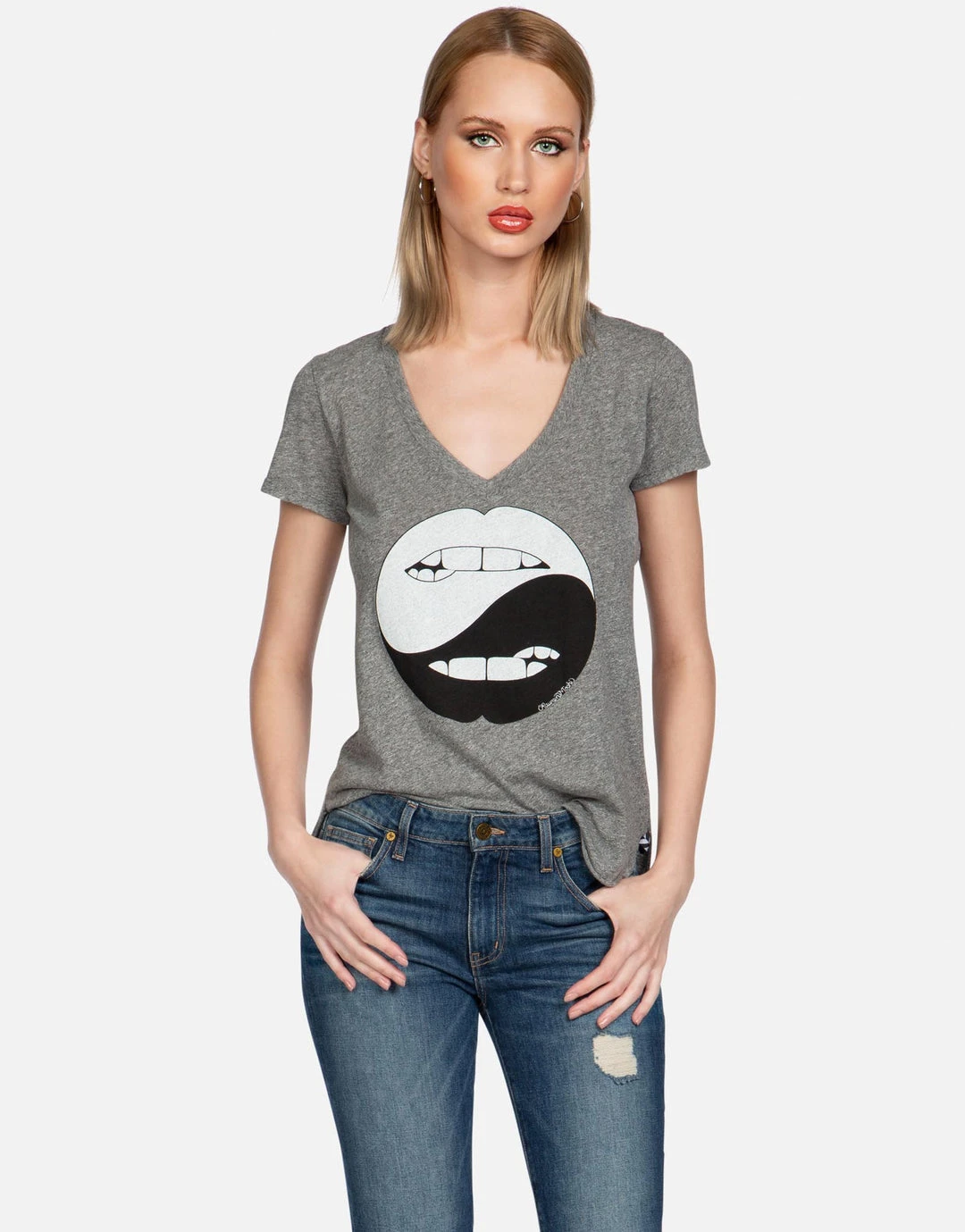 Biting Lip Yin Yang Printed on Ultra Soft Lightweight Tee in Heather Grey by Lauren Moshi.