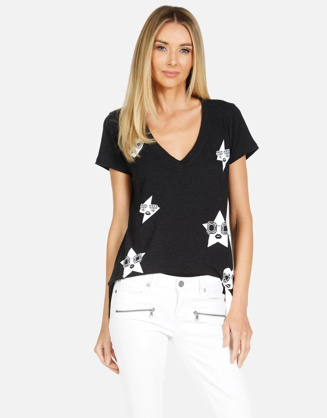 Mini Bling Faces Printed on Ultra Soft Lightweight Tank in Heather Black by Lauren Moshi.