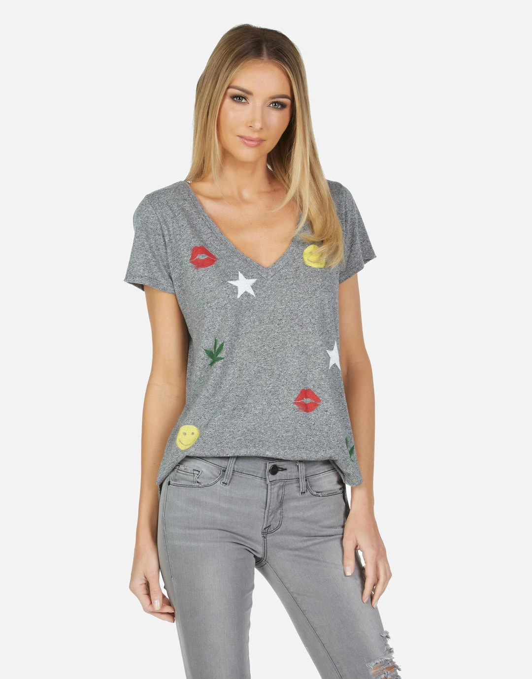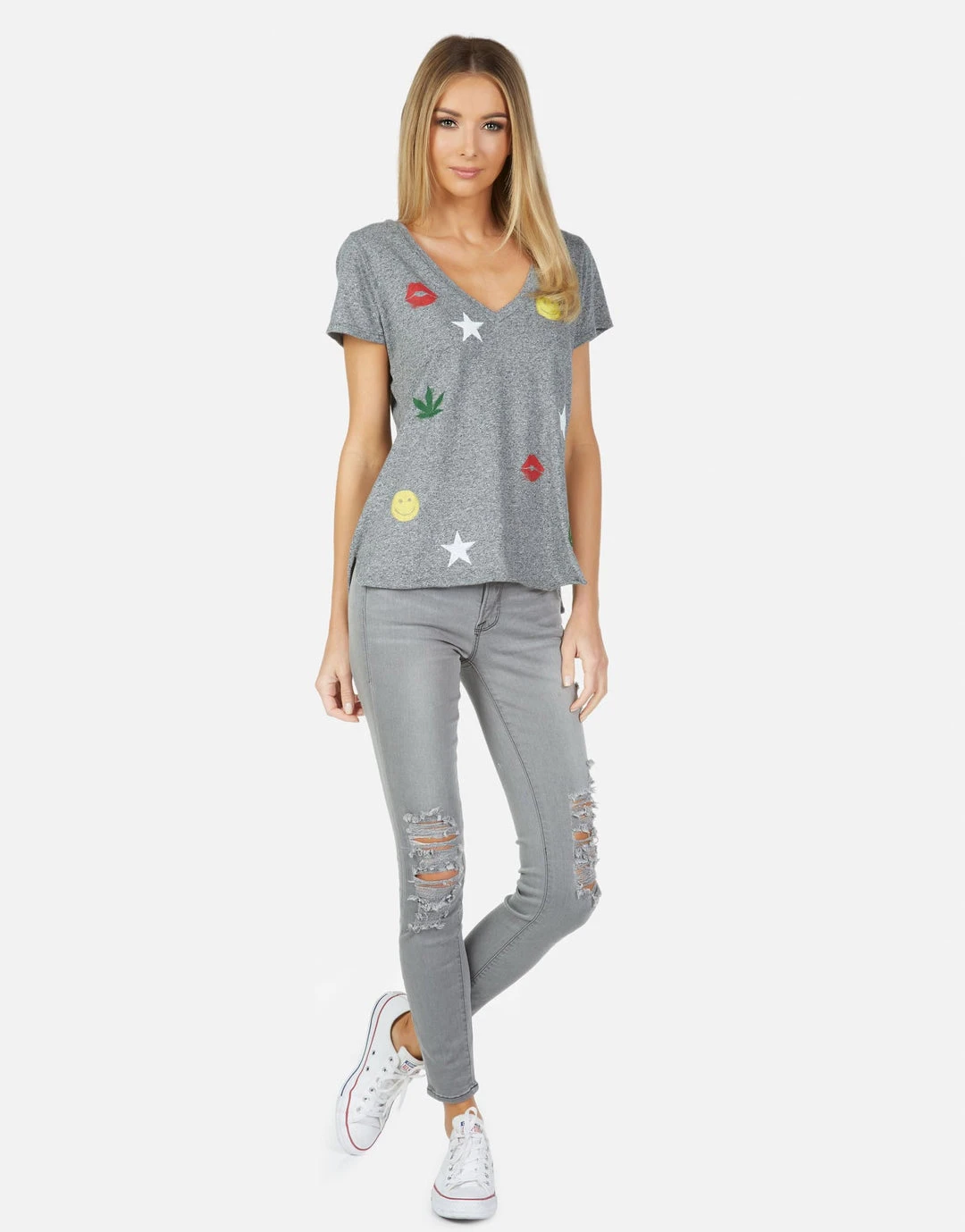 Spray Elements Printed on Ultra Soft Lightweight Tee in Heather Grey by Lauren Moshi.