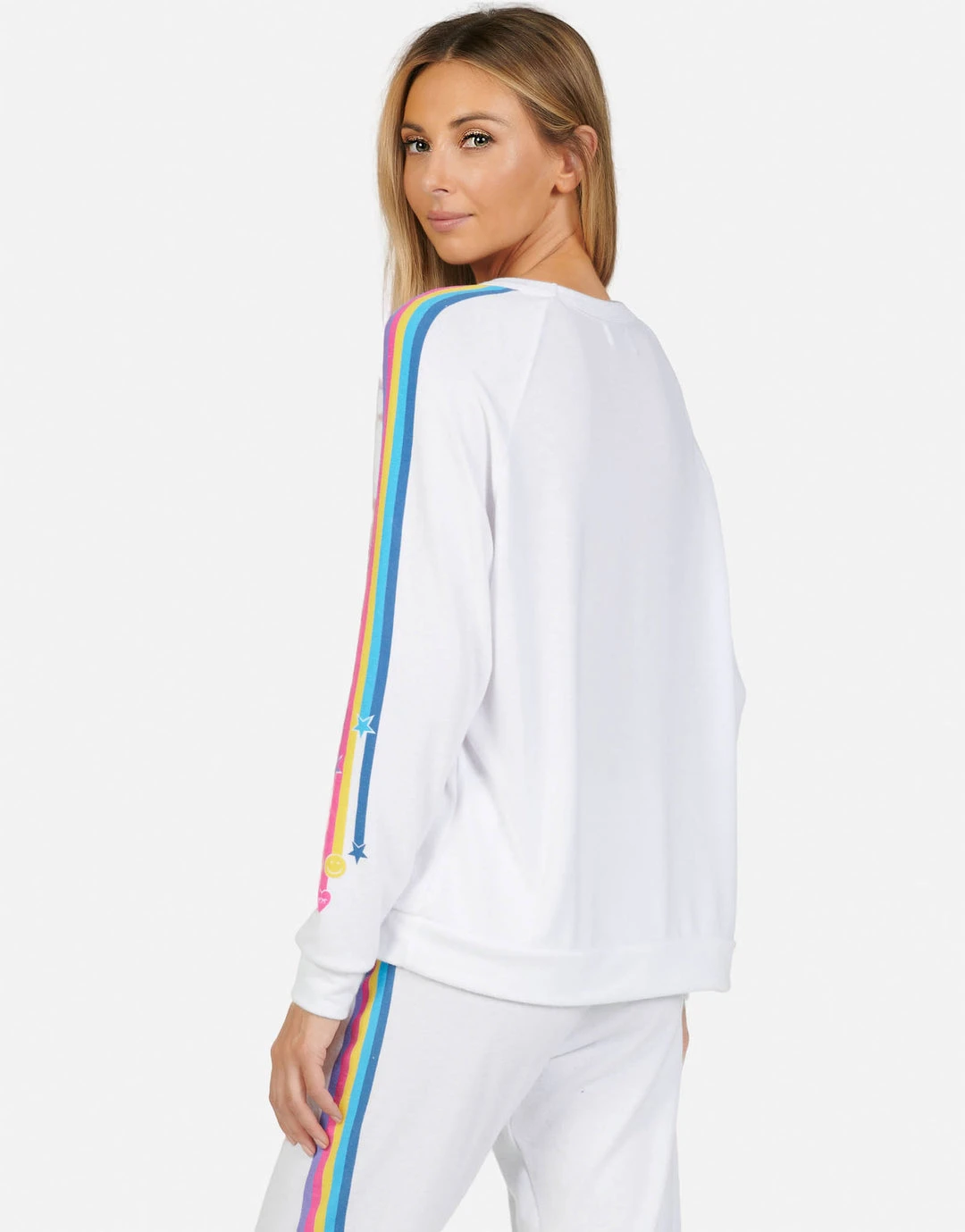 Multi Outline Star Printed on Ultra Soft Lightweight Raglan Pullover in Heather Black by Lauren Moshi.