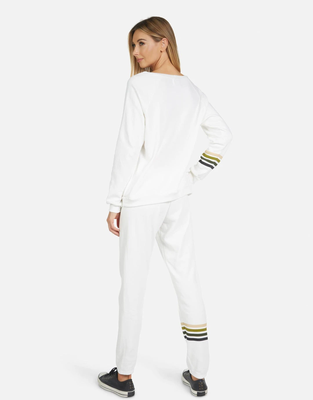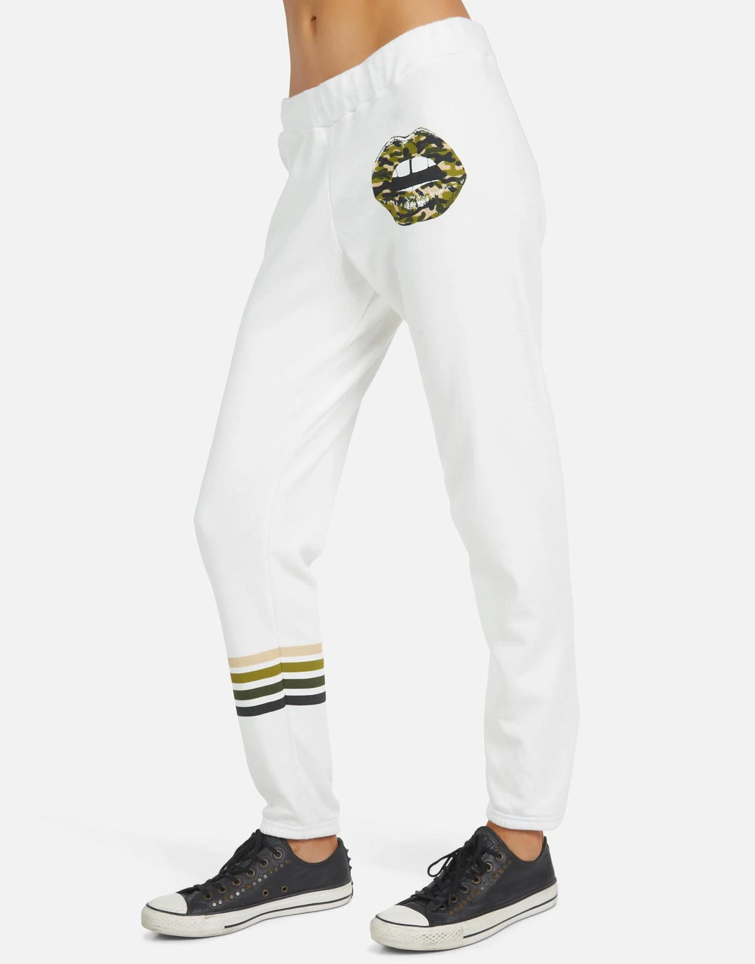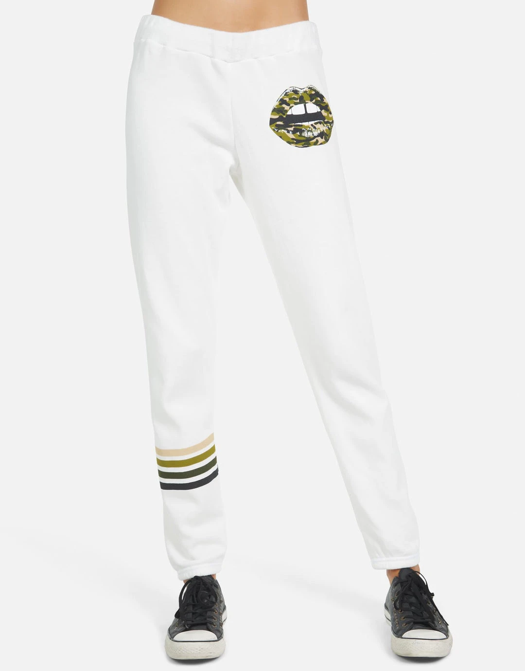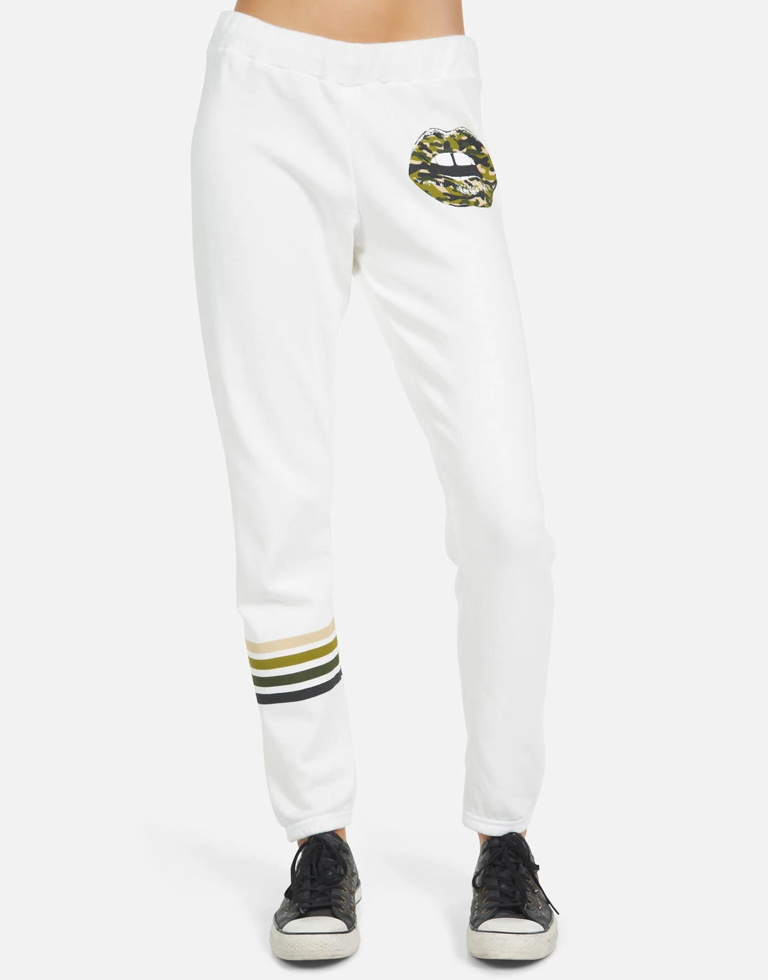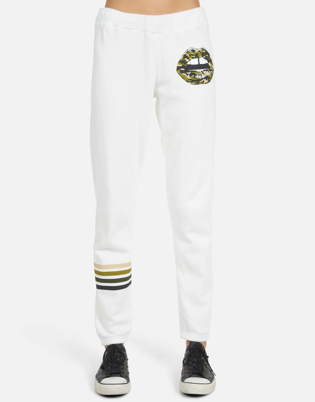 Camo Lip Printed on Ultra Soft Lightweight Sweatpant in Milk by Lauren Moshi.