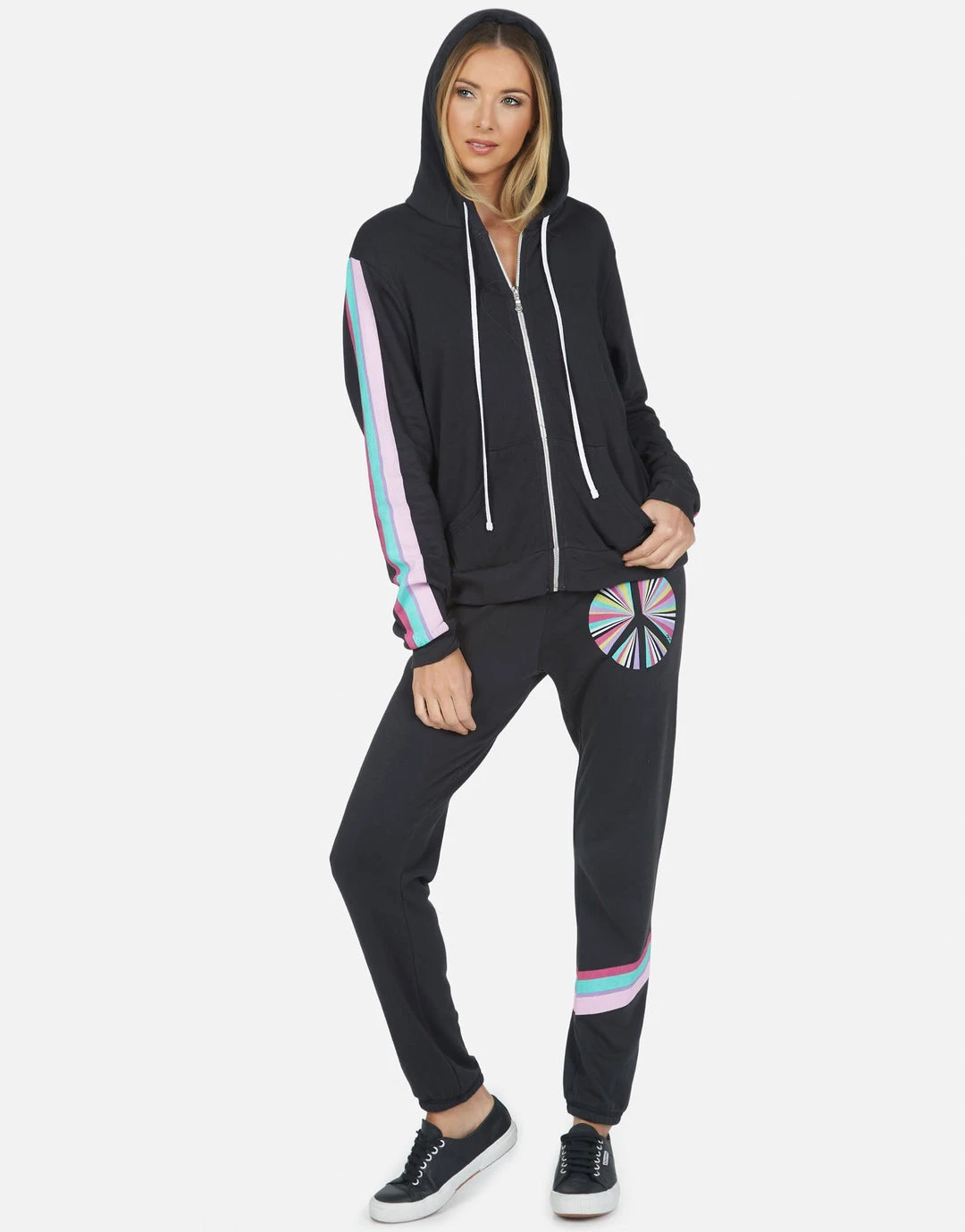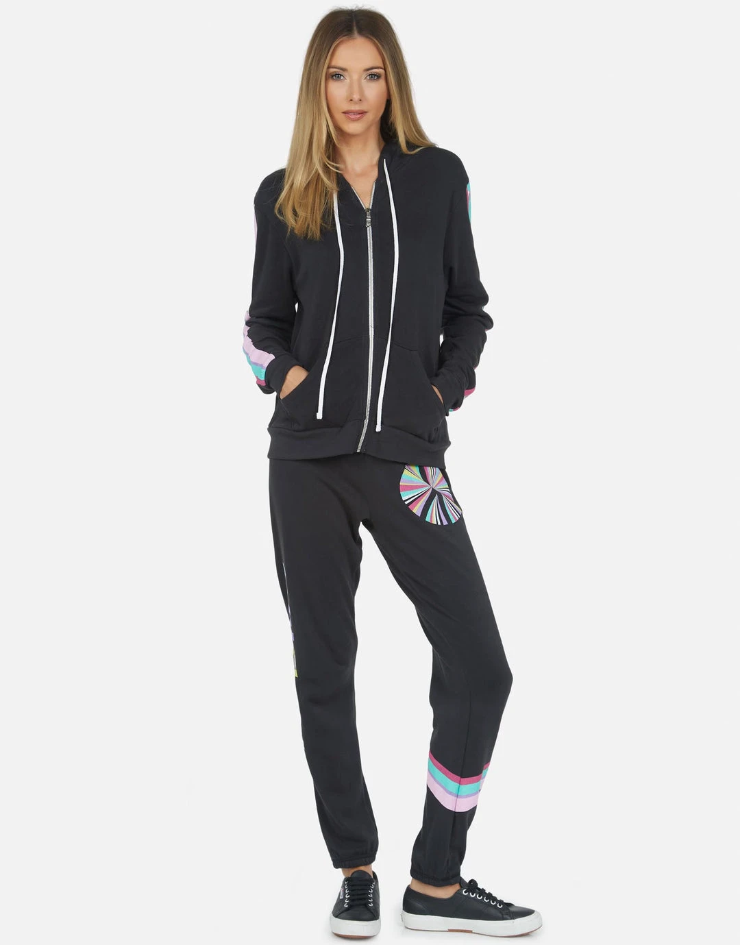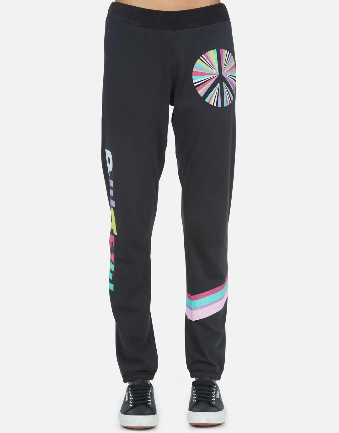 Rainbow Ray Peace Printed on Ultra Soft Lightweight Sweatpant in Heather Grey by Lauren Moshi.