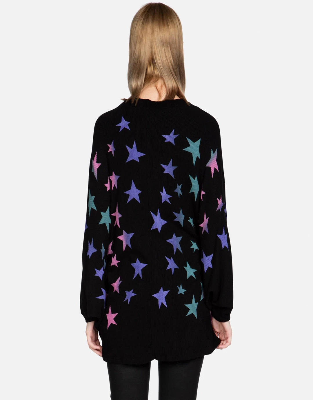 Ombre Stars Printed on Ultra Soft Lightweight Cardigan Wrap in Black by Lauren Moshi.