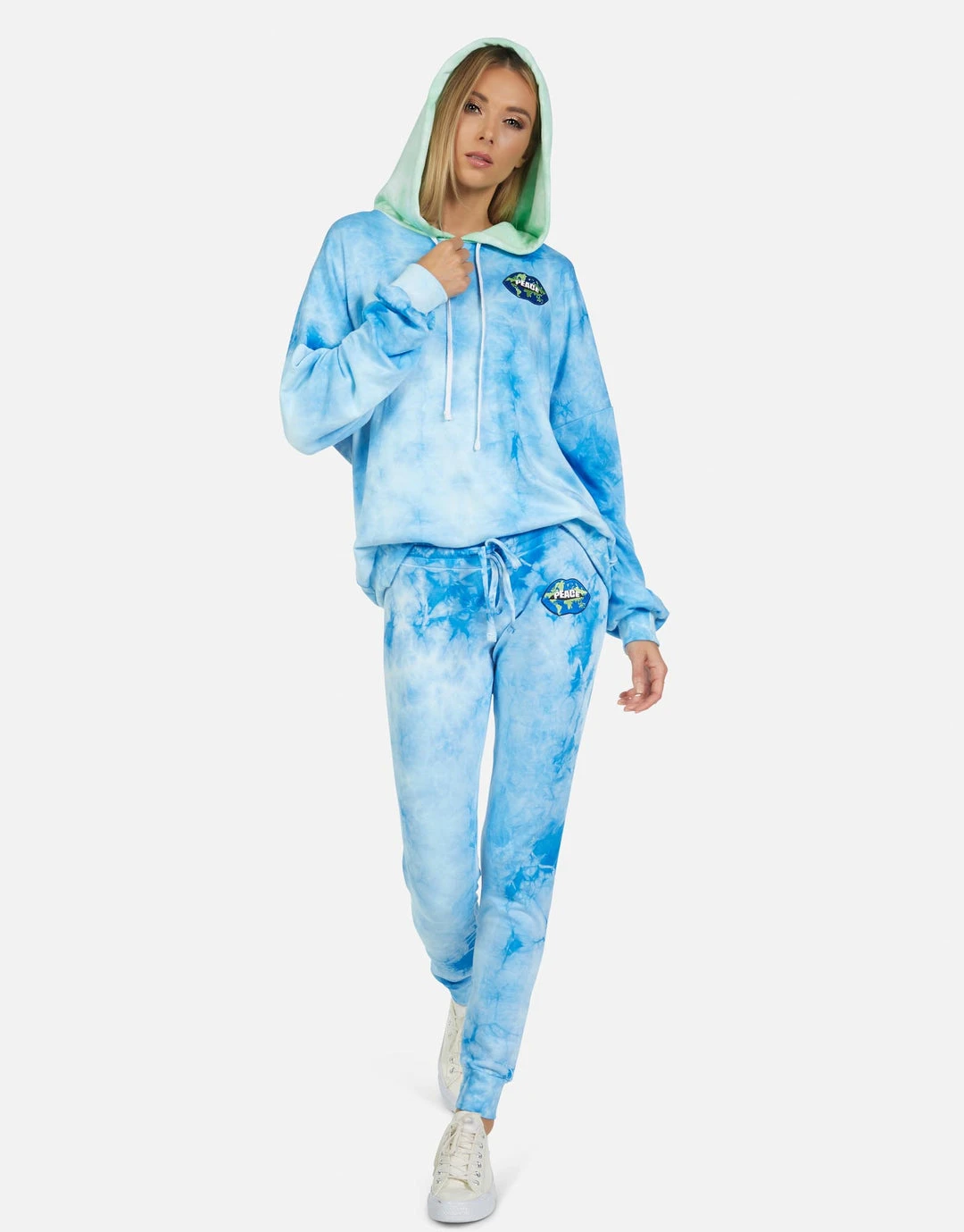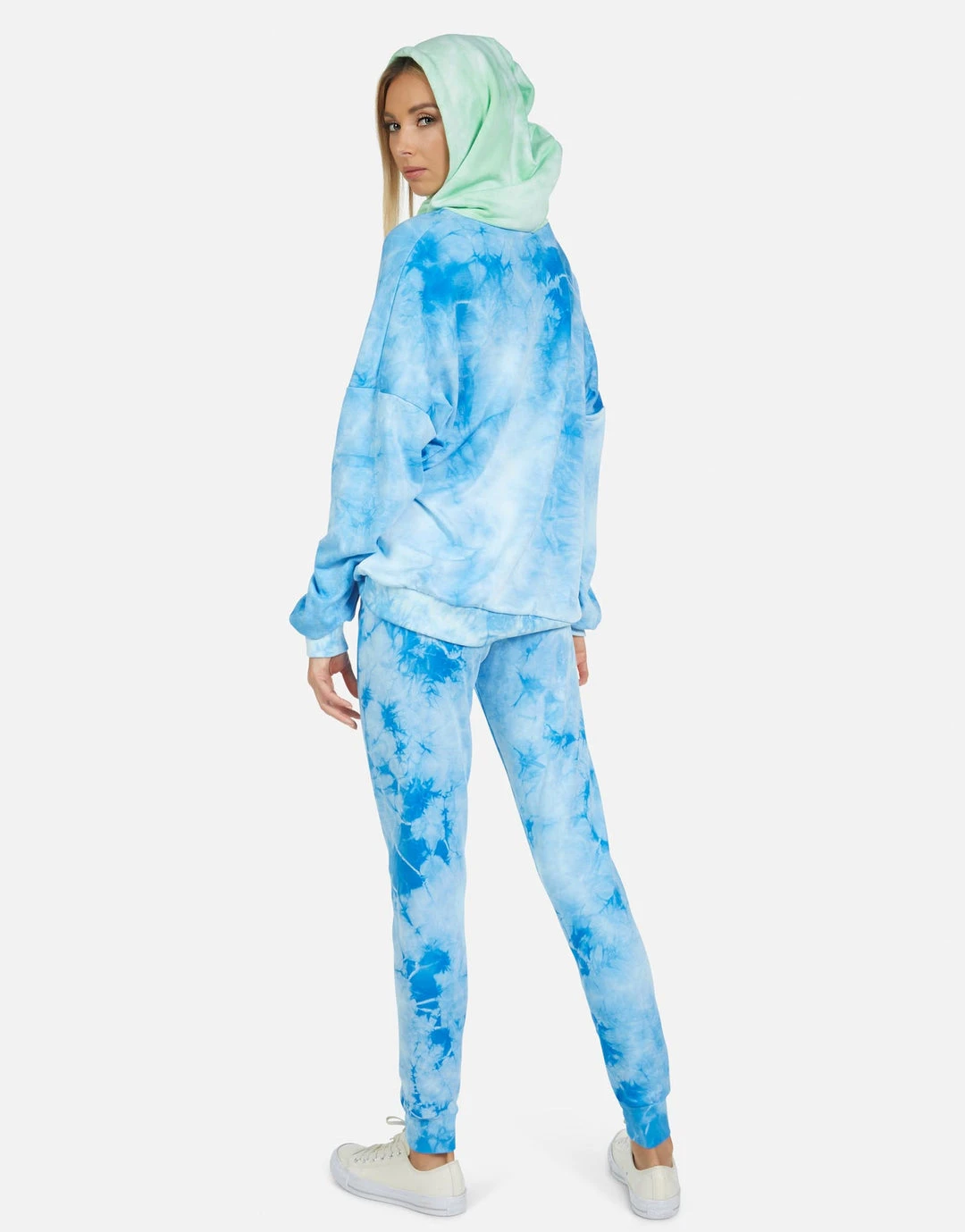 World Peace Lips Printed on Ultra Soft Lightweight Sweatpant in Blue Clouds by Lauren Moshi.