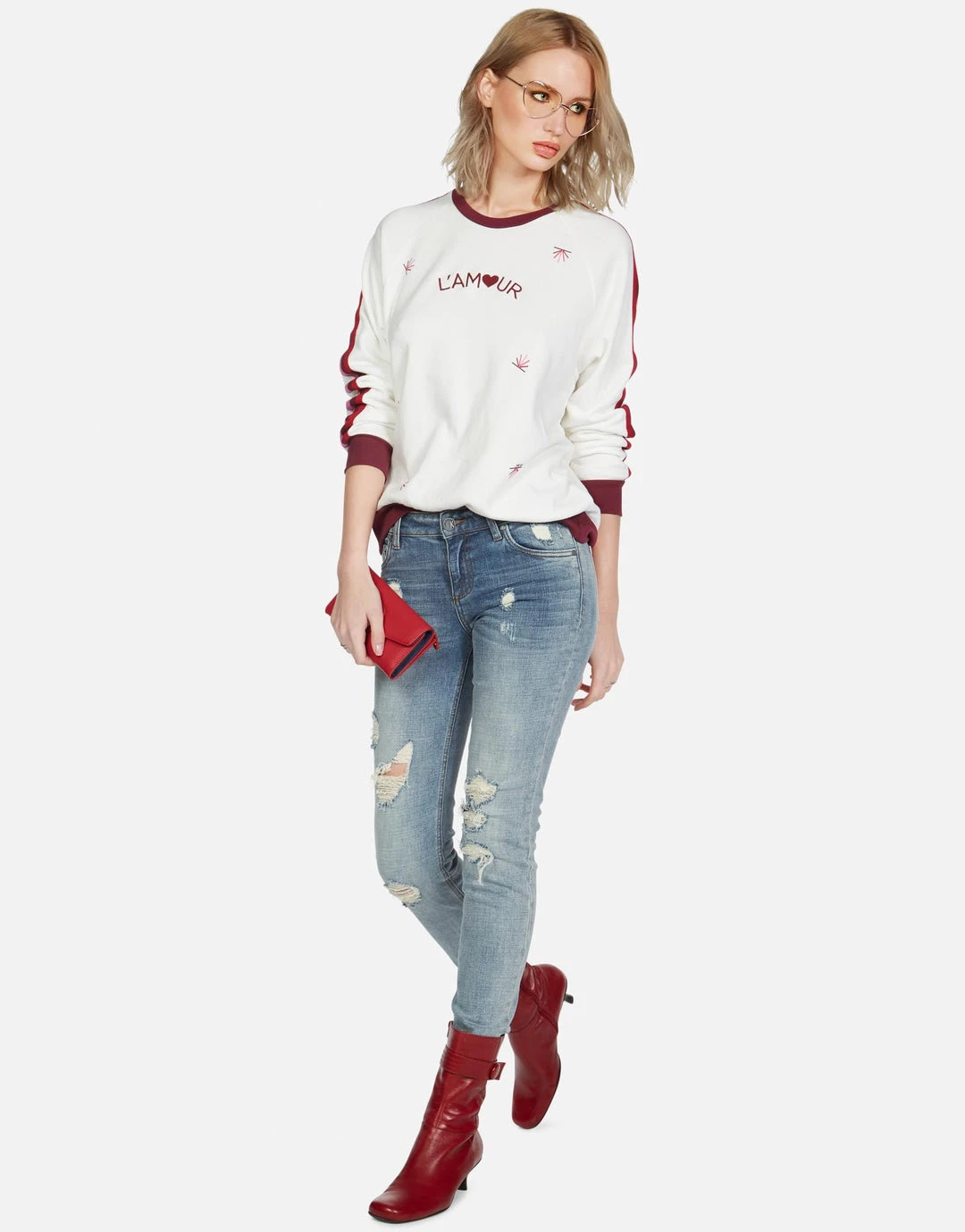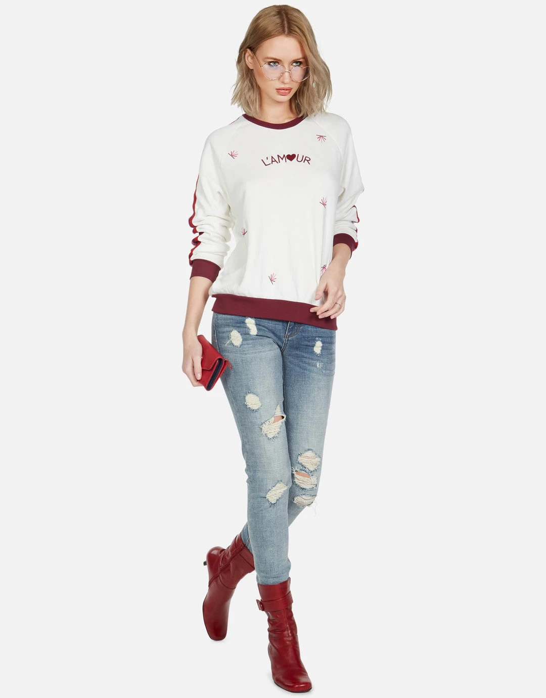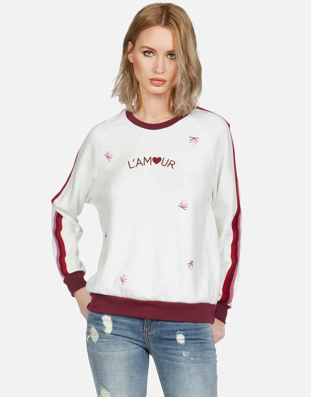 Skull Flower Printed on Ultra Soft Lightweight Raglan Pullover in Milk by Lauren Moshi.