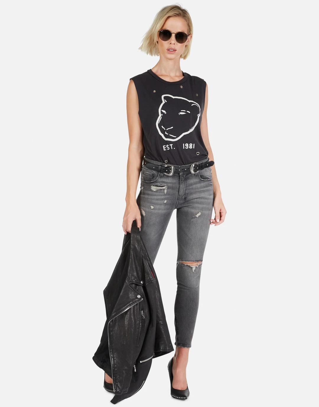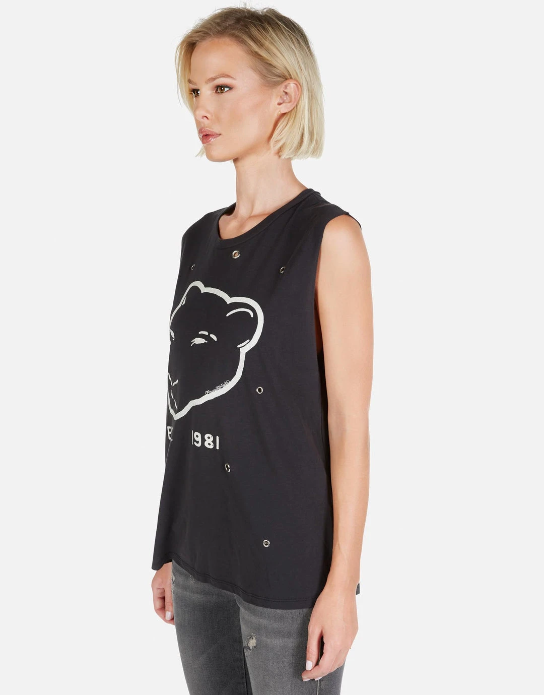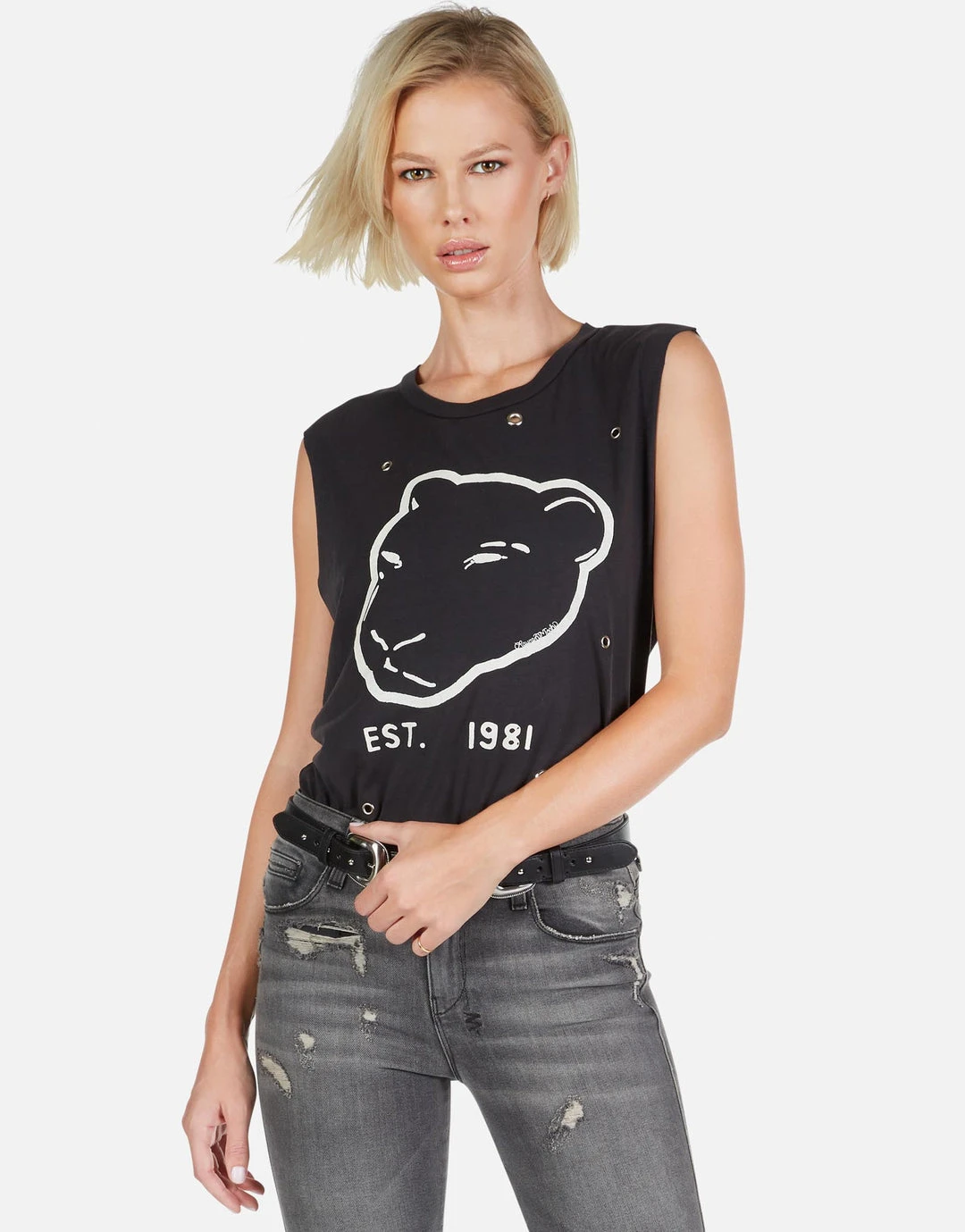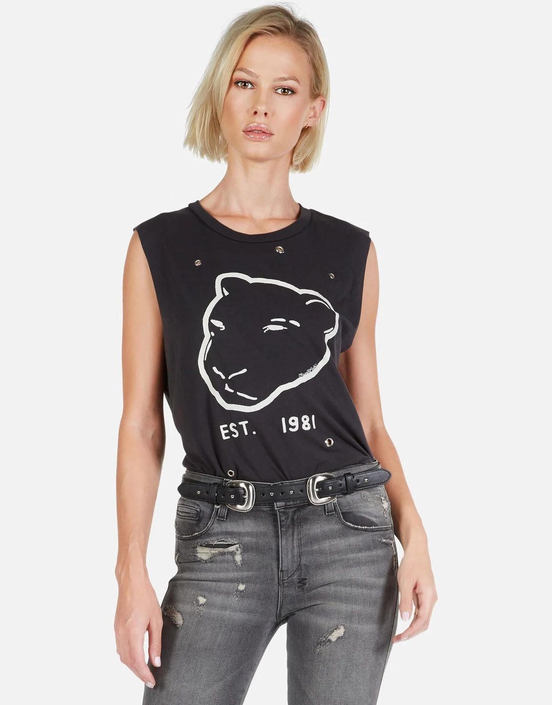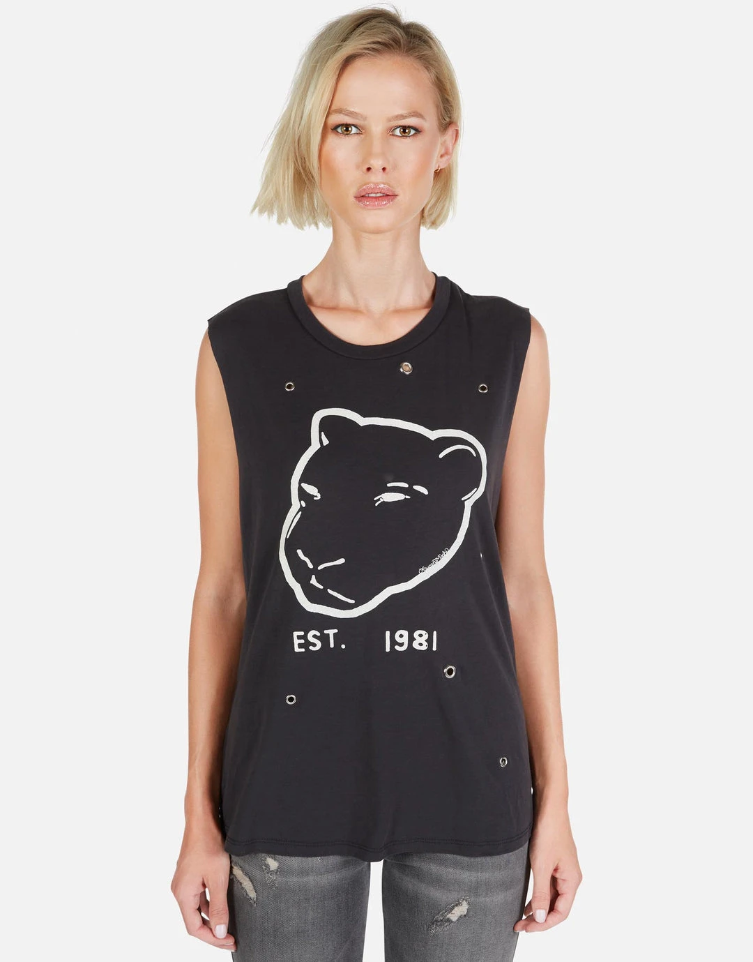 Panther EST. 1981 Printed on Ultra Soft Muscle Tank in Black w/ Grommets by Lauren Moshi.