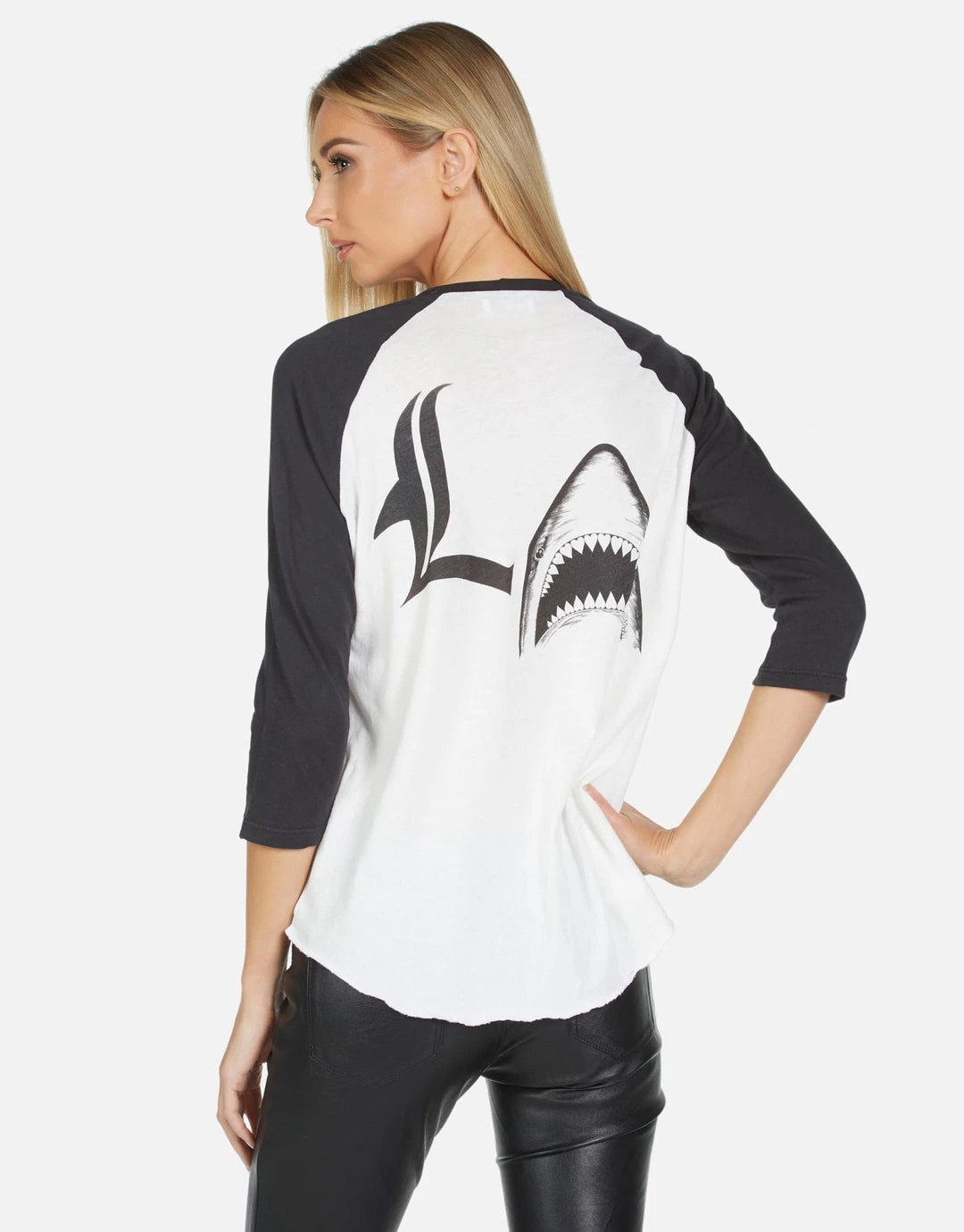 Star Shark Printed on Ultra Soft Lightweight Baseball Tee in Milk/Onyx by Lauren Moshi.