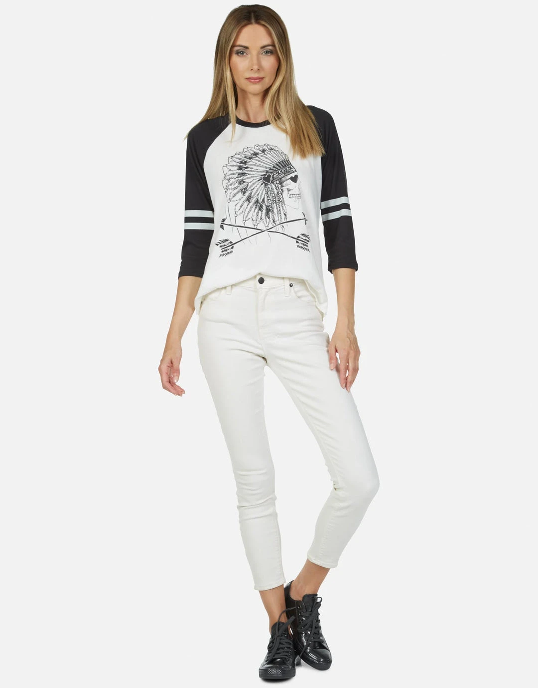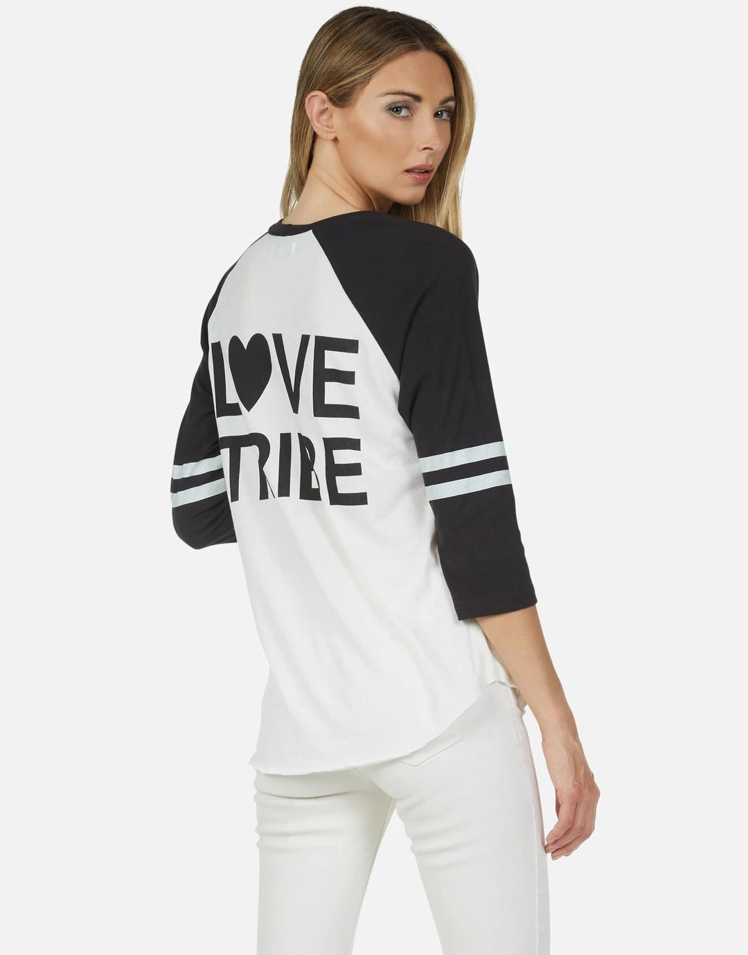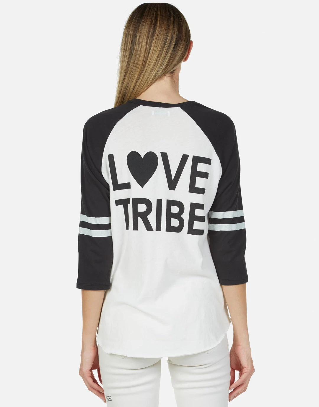 Love Tribe Printed on Ultra Soft Lightweight Baseball Tee in Milk / Onyx by Lauren Moshi.