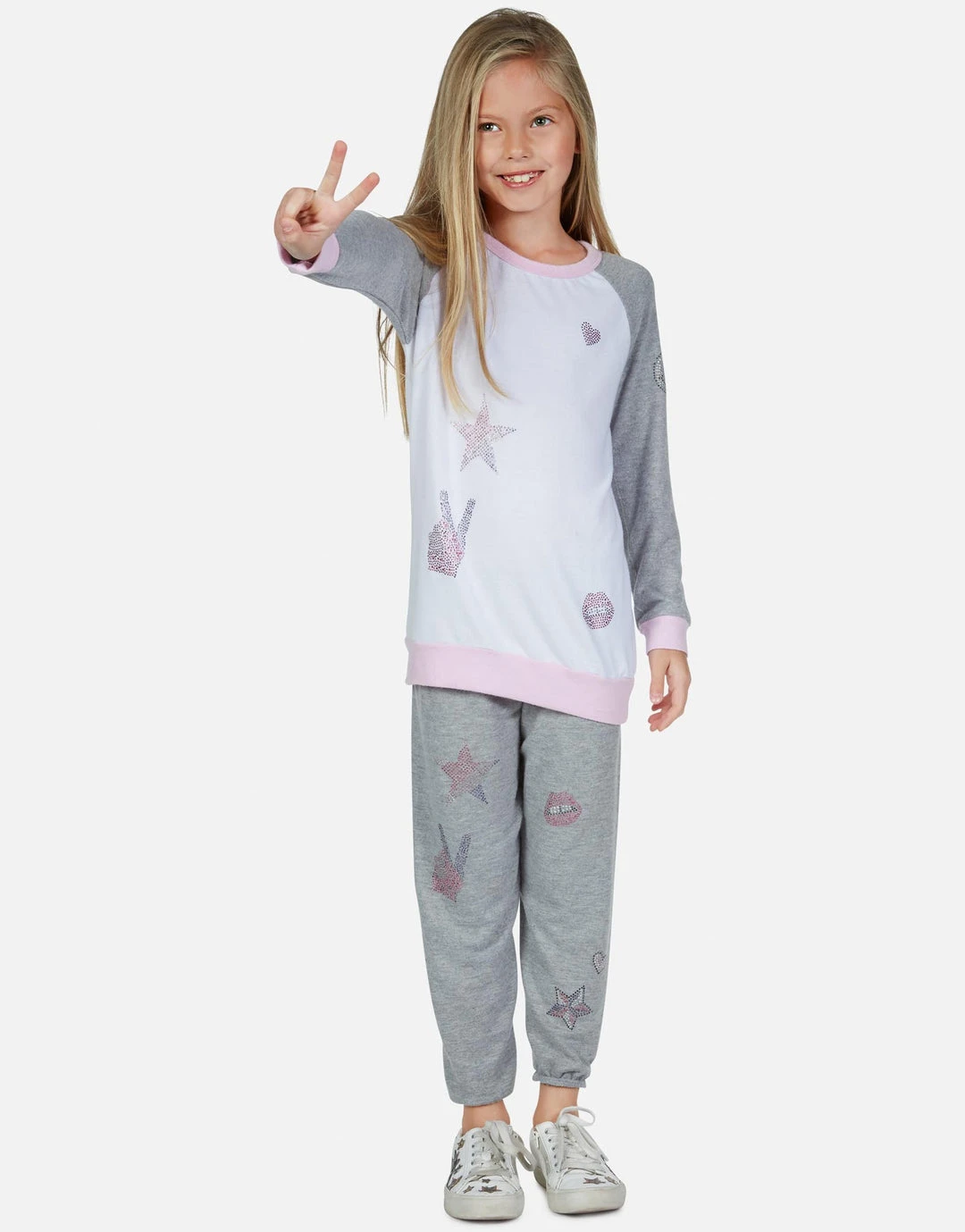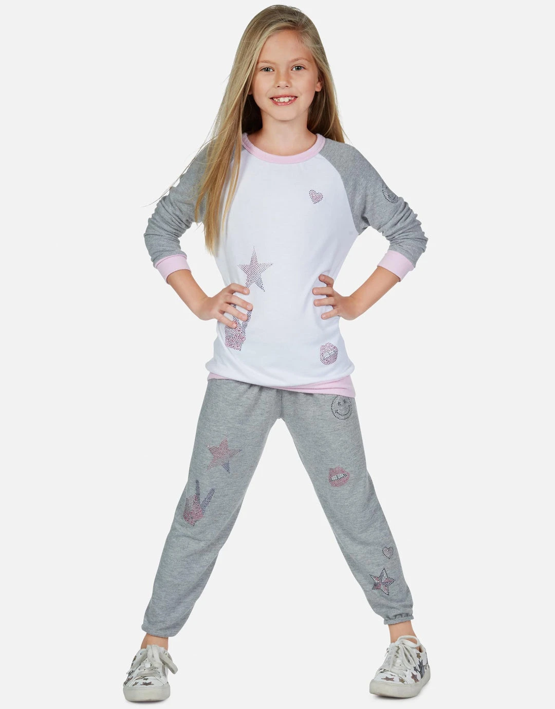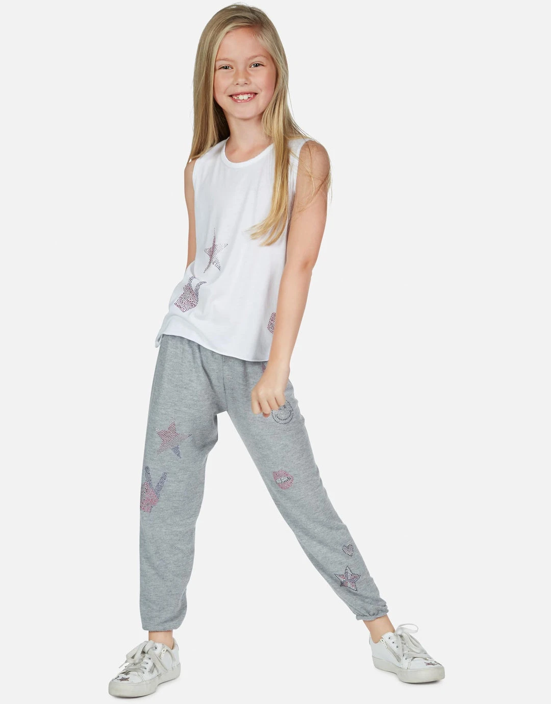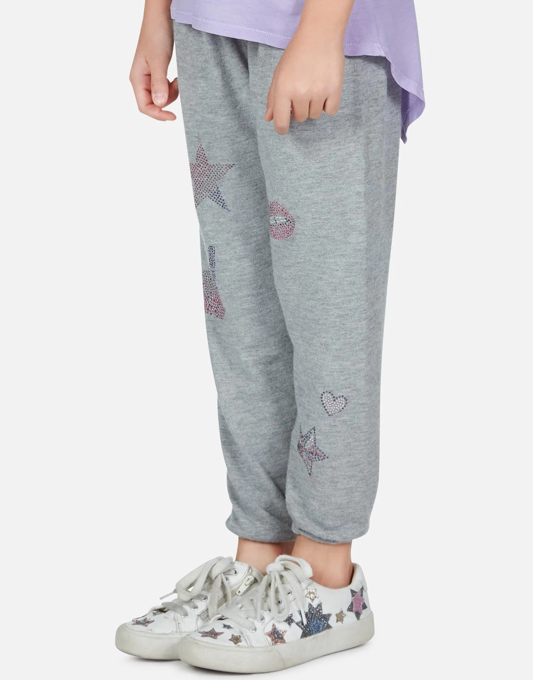 Crystal Elements on Ultra Soft Lightweight Girls Sweatpant in Heather Grey by Lauren Moshi.
