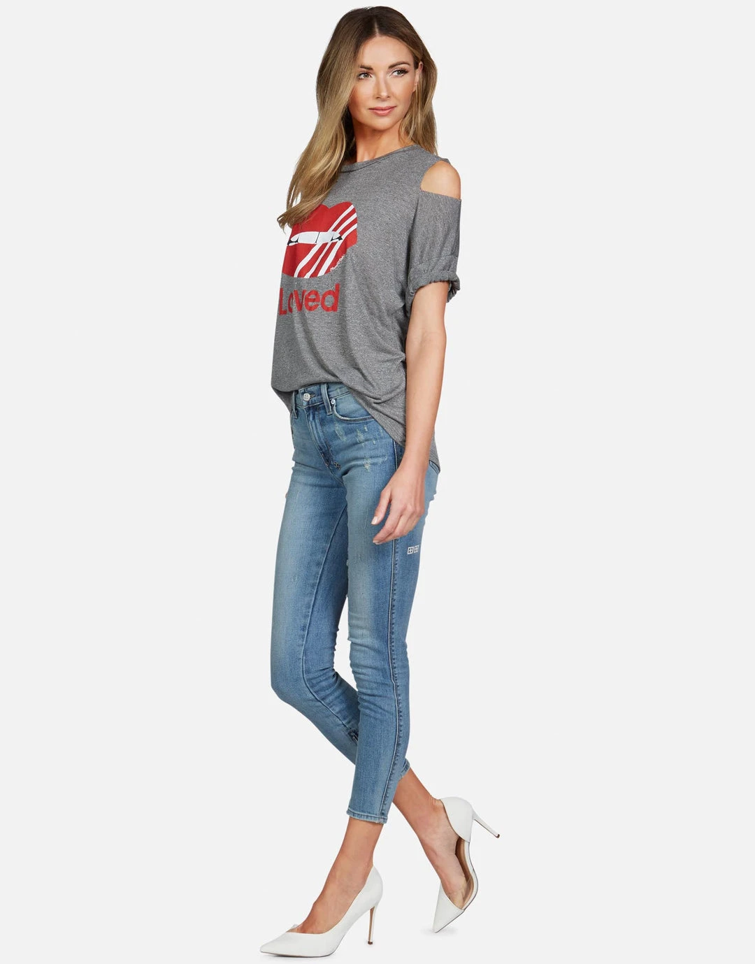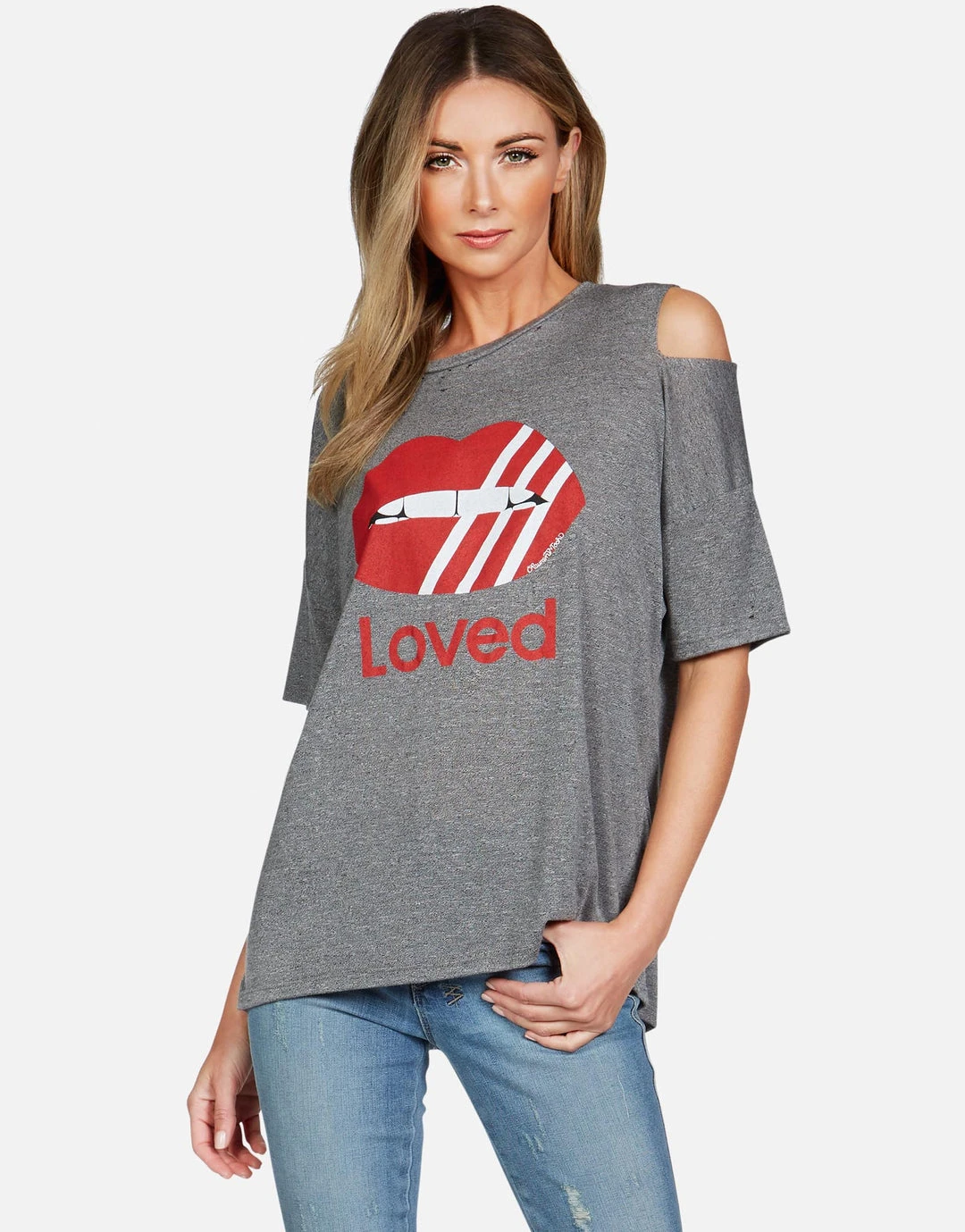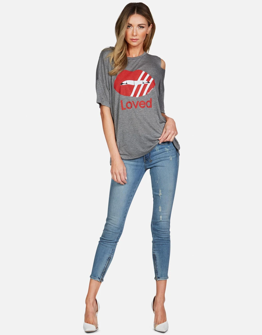 Striped Mouth Loved Printed on Ultra Soft Lightweight Tee in Heather Grey by Lauren Moshi.
