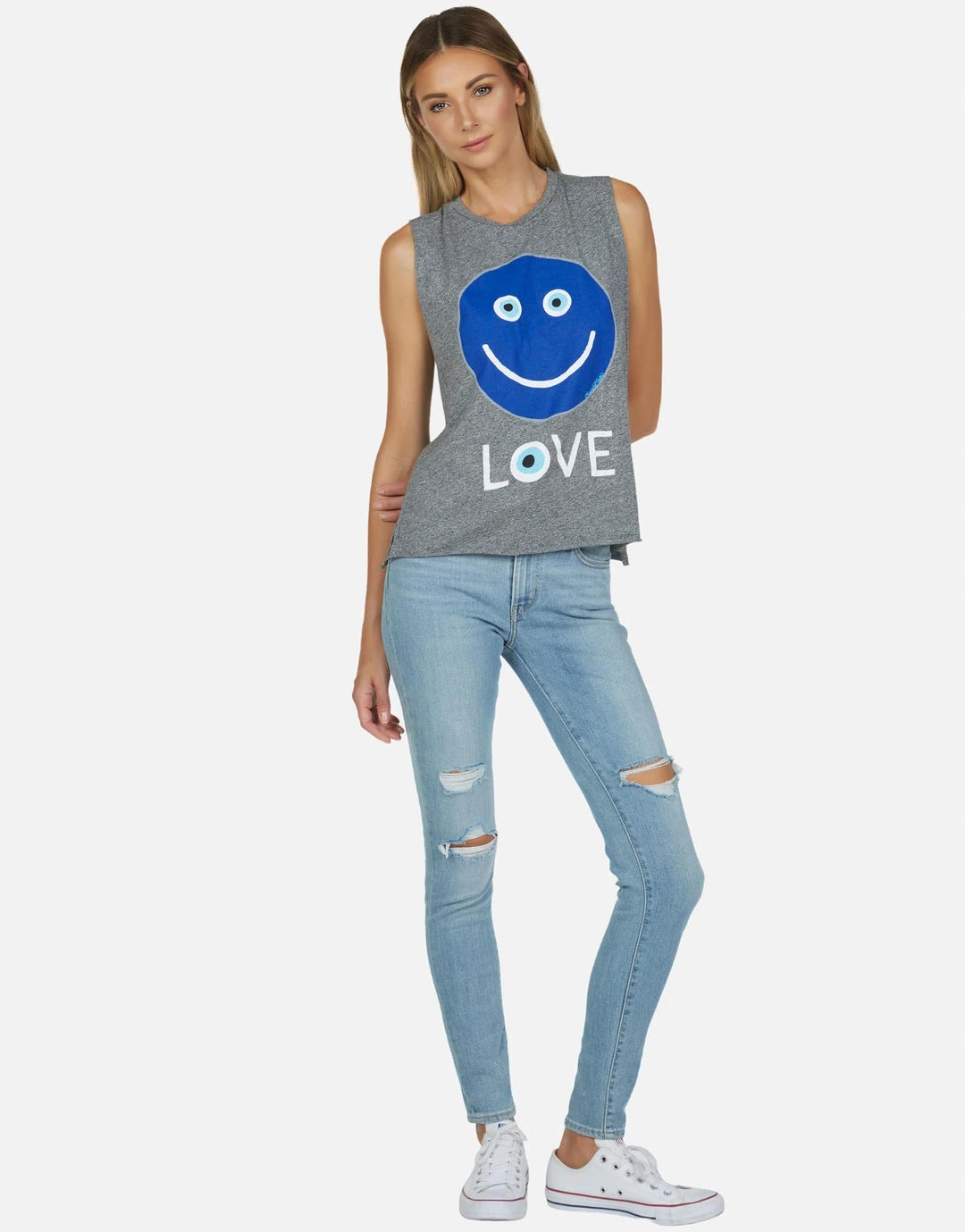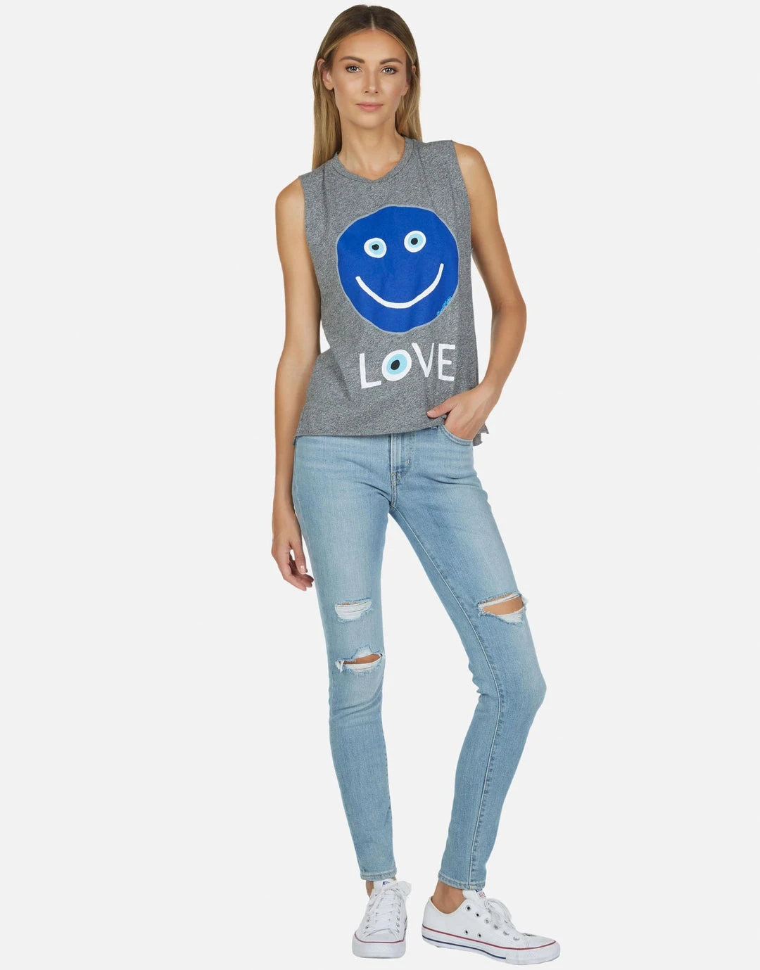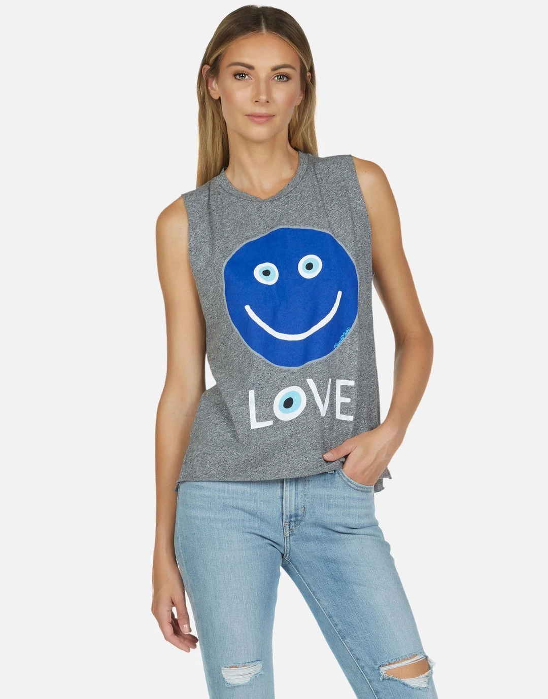 Electric Evil Eye Printed on Ultra Soft Lightweight Tank in Heather Grey by Lauren Moshi.