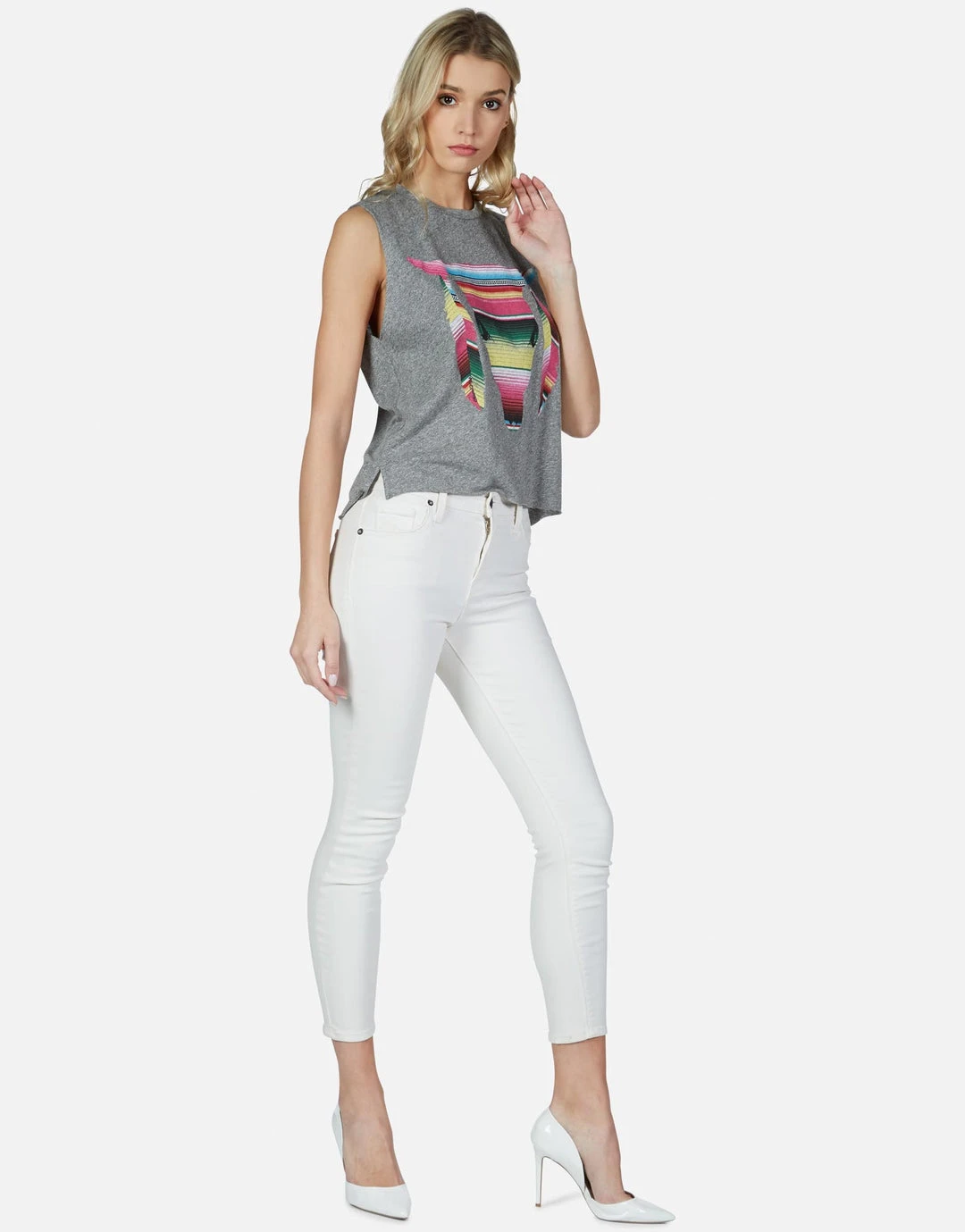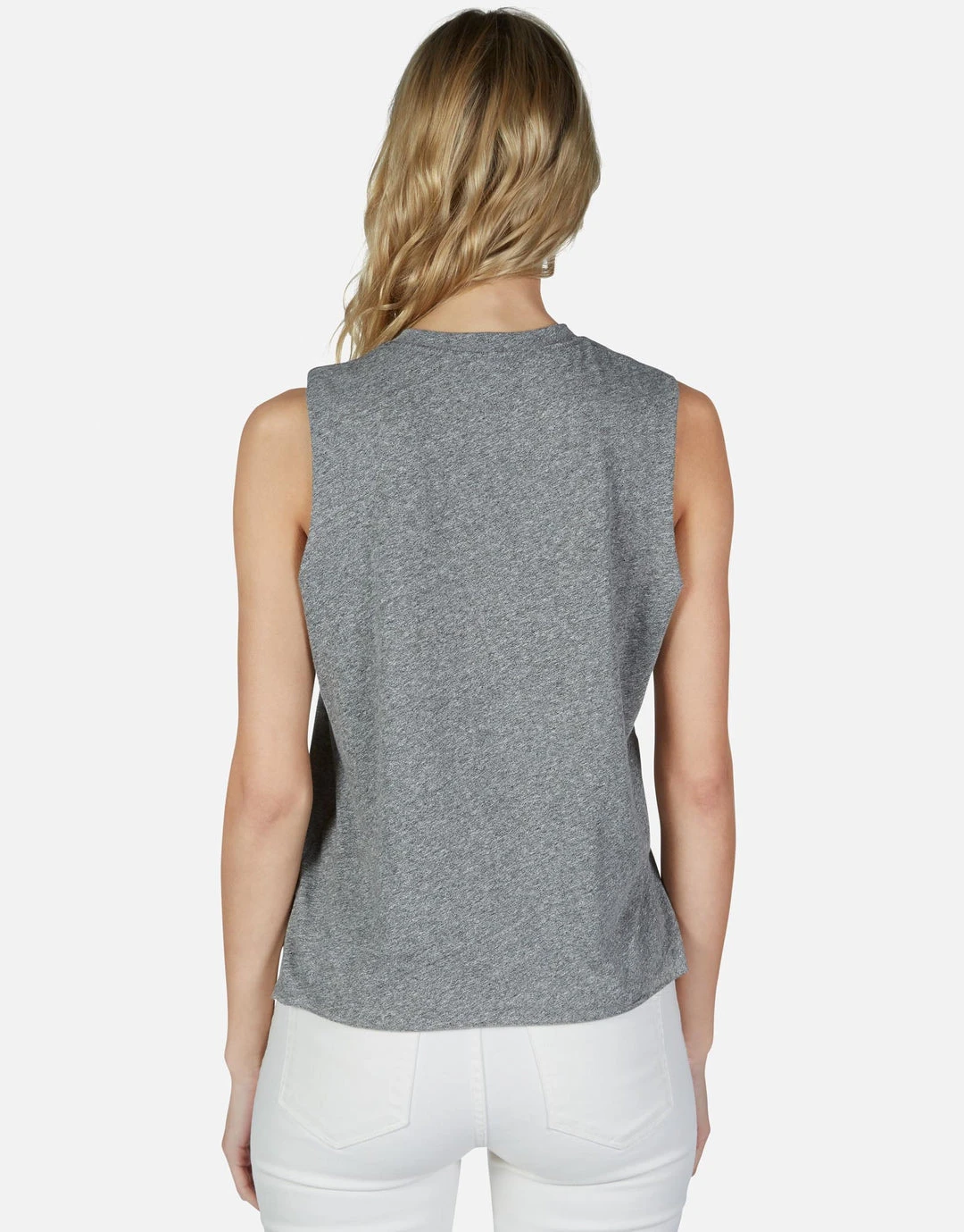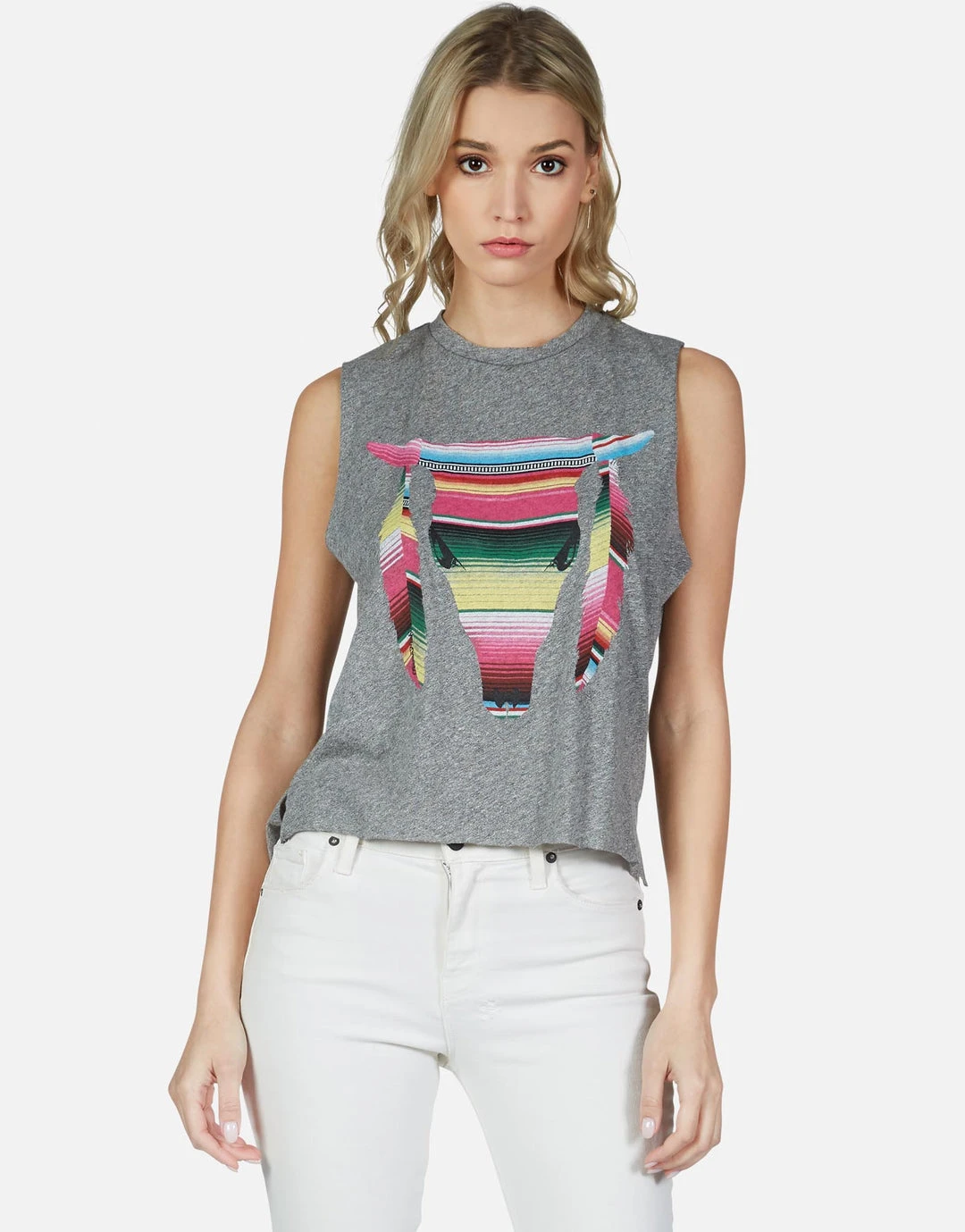 Stripe Bull Printed on Ultra Soft Lightweight Tank in Heather Grey by Lauren Moshi.