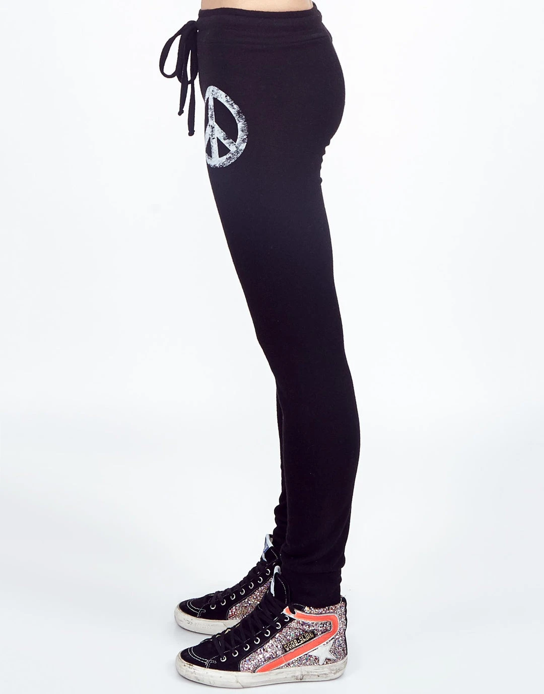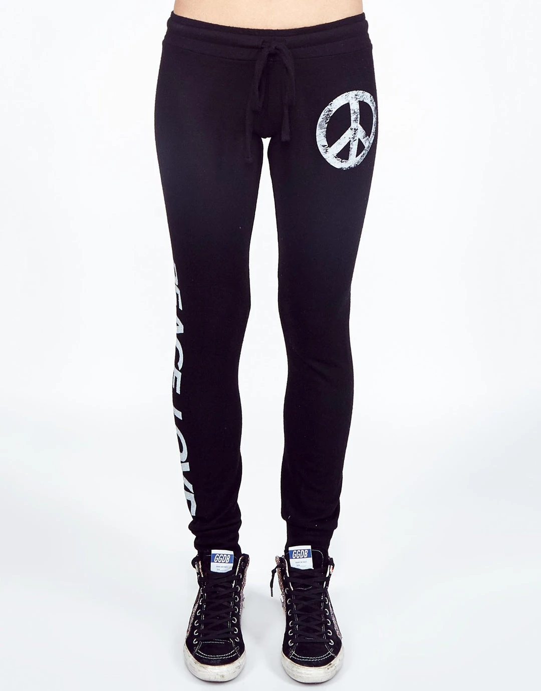 Vintage Peace Love Printed on Ultra Soft Classic Sweatpant in Jet Black by Lauren Moshi.