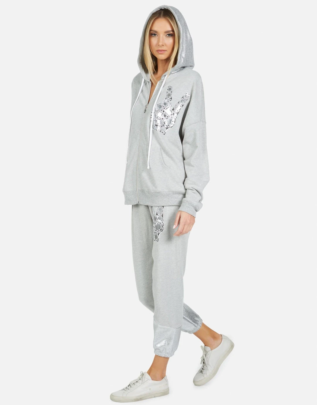 Metallic Diamond Peace Sign Printed on Ultra Soft Lightweight Hoodie in Black by Lauren Moshi.