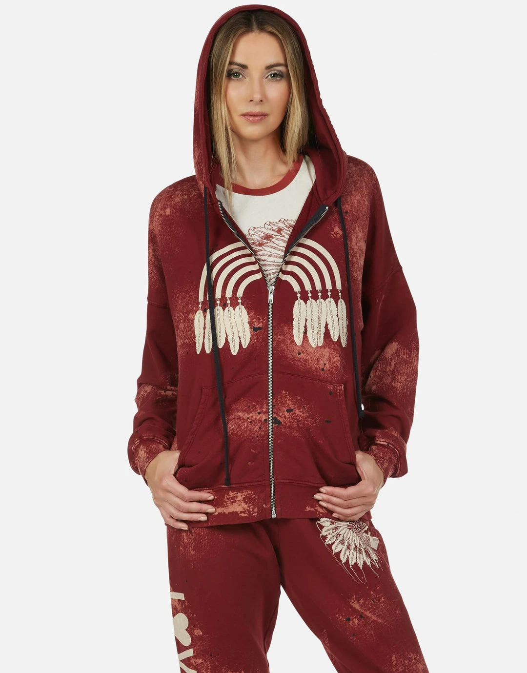 Love Tribe Skull Printed on Ultra Soft Lightweight Hoodie in Vintage Spice by Lauren Moshi.
